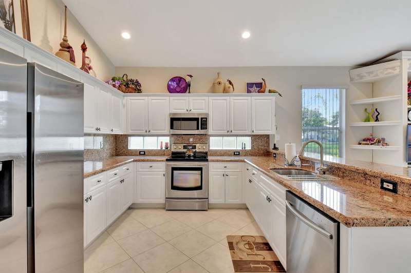 PROBATE HAS BEEN DELAYED AND BUYERS DO NOT WANT TO WAIT. THEIR LOSS IS YOUR GAIN! This stunning property with a NEW ROOF (2023) and New AC (2023) boasts 3,077 square feet of living space, featuring vaulted ceilings and picturesque views of a serene lake and garden. Perfect for entertaining, this residence offers an open concept kitchen, family room, formal dining room, formal living room, and a spacious screened patio. The open concept kitchen flows seamlessly into the family room and is equipped with granite countertops and backsplash, ample cabinets, stainless-steel appliances, a snack bar, and a large pantry. The family room provides a welcoming space for relaxation and gatherings, with easy access to the kitchen.
