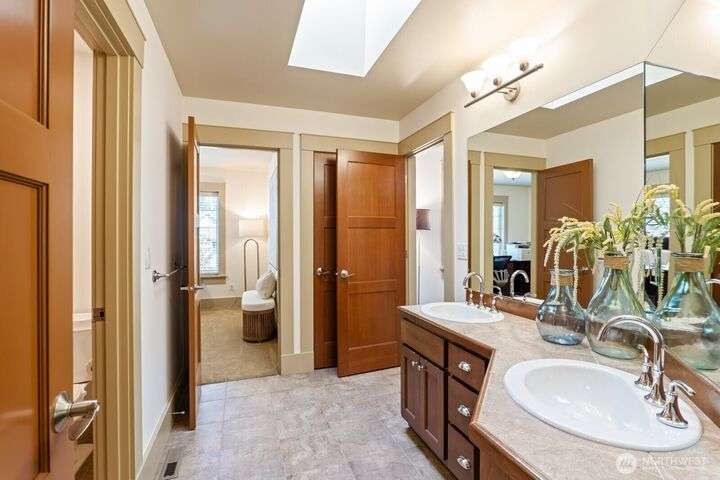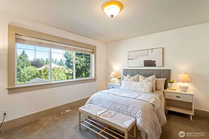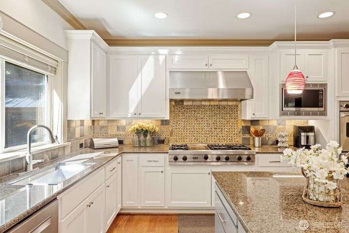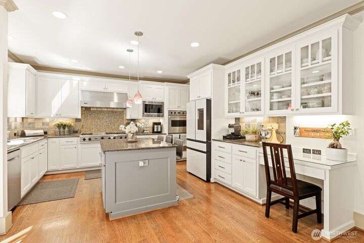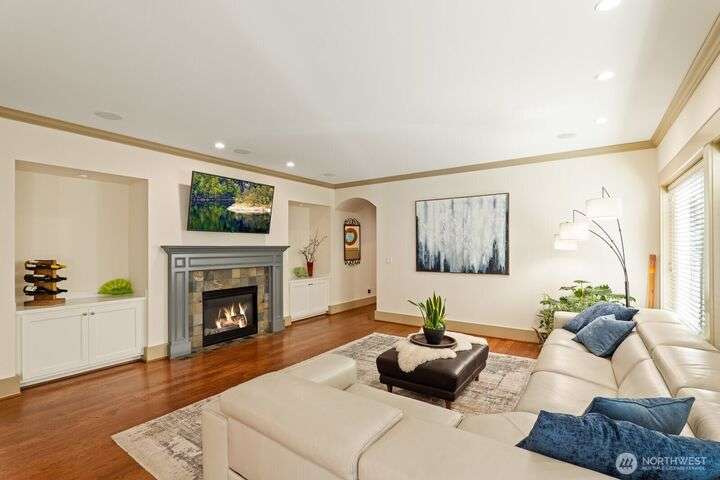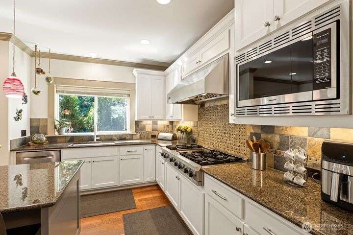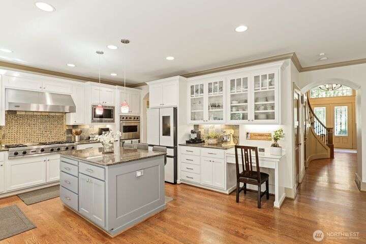 Where PNW sophistication meets everyday ease—just one block from Microsoft. This 5-bed + bonus, 2.75-bath home pairs timeless craftsmanship w/ modern convenience. Vaulted entry & oversized windows bathe rich hardwoods in light, leading to an airy open floor plan. The gourmet kitchen w/ high-end appliances connects seamlessly to spacious living areas, ideal for quiet nights or lively gatherings. Retreat to the luxe primary suite w/ spa-inspired 5-piece bath & custom walk-in closet. Main-floor bedroom w/ ¾ bath offers versatility for guests or private office. Fantastic low-maintenance yard w/ pergola, 3-car garage w/ ample storage & EV ready. Surrounded by top schools, parks, & endless dining/shopping—Redmond living at its most refined level.