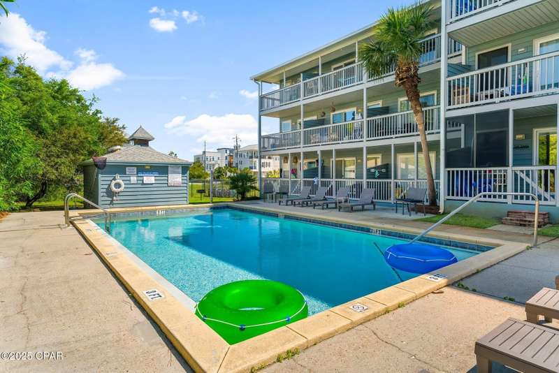 Bring your swimsuit! LOCATION! LOCATION! LOCATION! This FANTASTIC studio condo is just steps from your beach access and a ten-minute walk to the shops and restaurants of Rosemary Beach. It is RARE to find a condo at this low price point in Inlet Beach SO close to the BEACH. As a great second home or an EPIC rental - it sleeps four - you have an awesome pool right in your back yard and the beautiful beaches await with a side view off your balcony of the gulf! Never rented, it is in pristine condition with a new kitchen remodel with new full-size appliances, soft-close cabinets, countertop and copper plumbing, new water heater, very sturdy custom-made bunk bed frames and main bed frame. The Amana heat/cool unit is two-years old. Your composite decking balcony overlooks the large pool and laundry is in the pool house. This unit comes fully furnished and rental ready. The building passed its Milestone Inspection. Pets allowed.