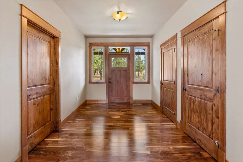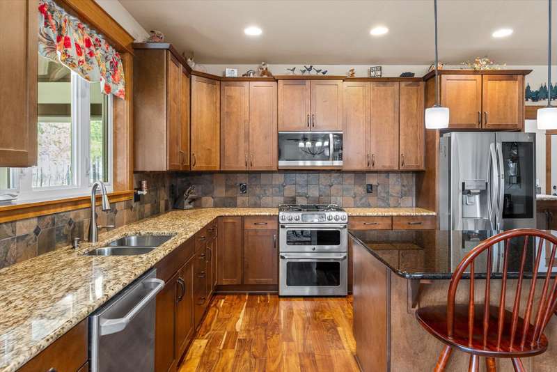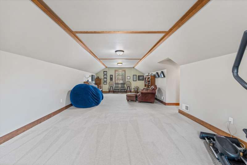 Discover a thoughtfully designed rancher by Tim Lewis, where rustic warmth seamlessly blends with modern, efficient floor planning-every square foot is purposeful. Centered around a river-rock fireplace, the living area offers both style and ambiance, with sweeping views of the front 19.55-acre parcel. Primary Suite opens into two walk-in closets and an inviting garden tub, creating a perfect blend of comfort and luxury. Three-Season Porch: Step into the serene outdoors from your porch-ideal for morning coffee and peaceful wildlife watching; deer and moose are delightful frequent visitors. An upper-level bonus room offers flexible potential-perfect for future bedrooms, a workspace, or a media lounge. A generously sized, oversized garage includes a handy workshop area-great for hobbyists, storage, or project space. Beautifully custom crafted, thoughtfully balancing rustic character with modern utility, all within a design that respects your time and space. Enjoy beautiful walking trails around the property.