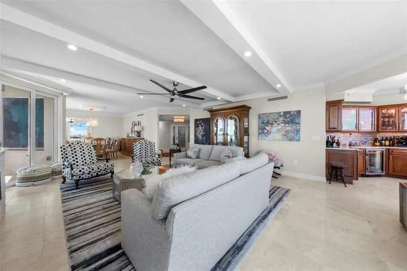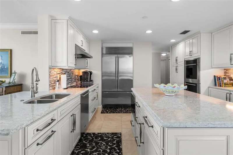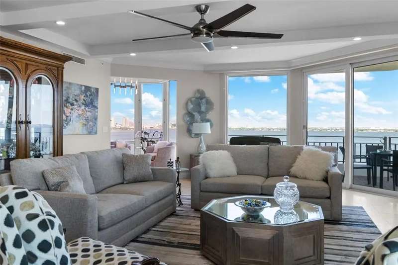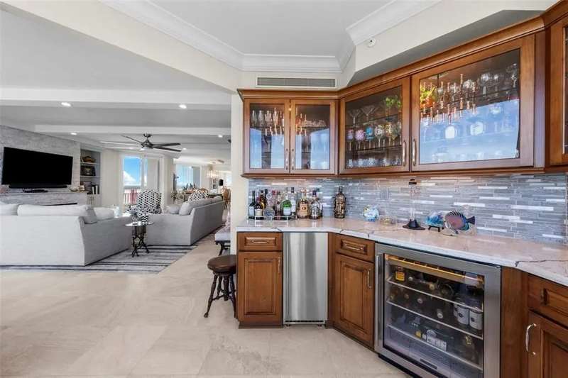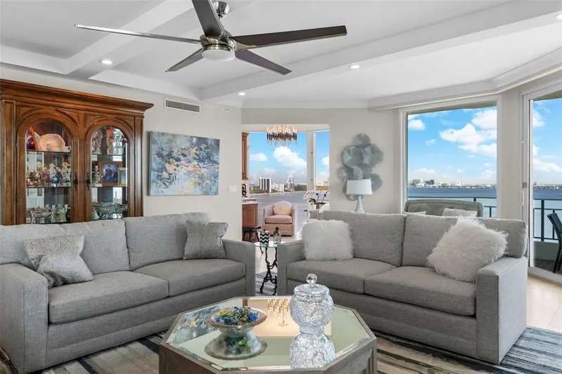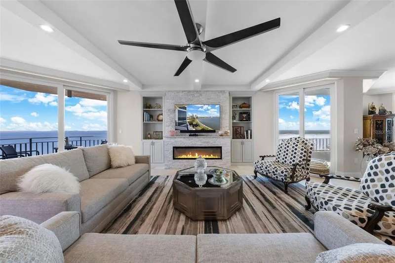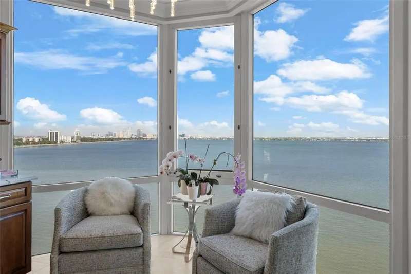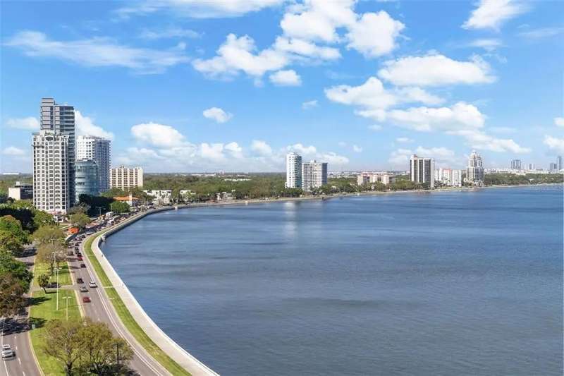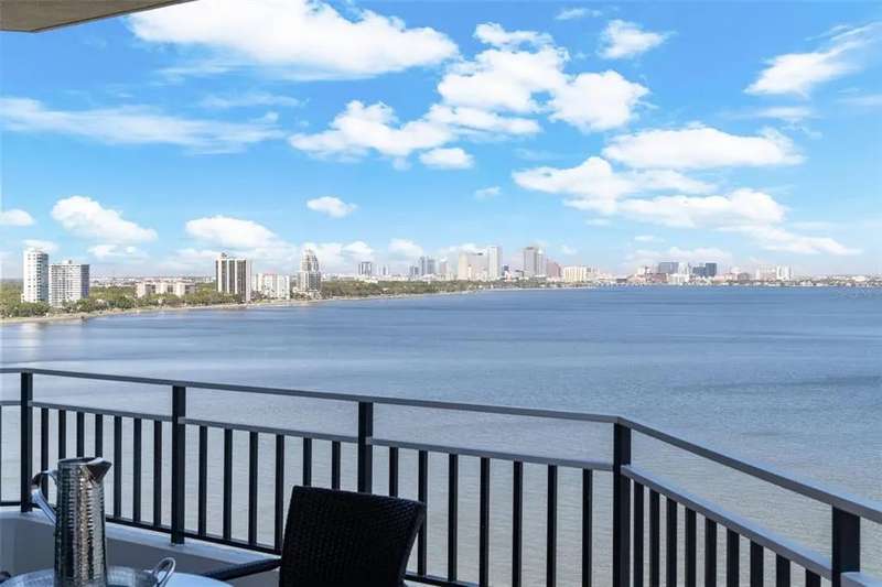 Welcome to the Bayshore Regency, one of Tampaâ??s most prestigious residences. Completely renovated in 2020, Unit 1401 boasts modern luxury and stunning views. Every detail was carefully considered, from the reconfigured kitchen with custom Kraft Maid cabinetry to the travertine floors throughout. The kitchen features top-of-the-line appliances, including a double-door Sub-Zero refrigerator, Wolf double ovens, and a sleek black glass Wolf electric cooktop. The large island offers ample storage, while a spacious walk-in pantry adds even more convenience. The open concept kitchen flows into the dining and living areas, perfect for entertaining. The bar area, with floor-to-ceiling windows, offers expansive views of Hillsborough Bay and downtown Tampa, with a glass-front Sub-Zero beverage center and ice maker. The living room includes multiple sliding doors, recessed lighting, and a built-in electric fireplace with color-changing flames. The private elevator entrance opens to a stunning foyer with a custom etched glass door and coffered ceiling. The primary bedroom features its own balcony, two walk-in closets with custom storage, and a luxurious marble shower. The second bedroom offers privacy and scenic views, with automatic Hunter Douglas window treatments. With only two condos per floor, enjoy ultimate privacy and breathtaking sunrise views and sunset views.