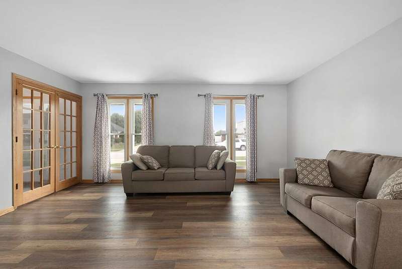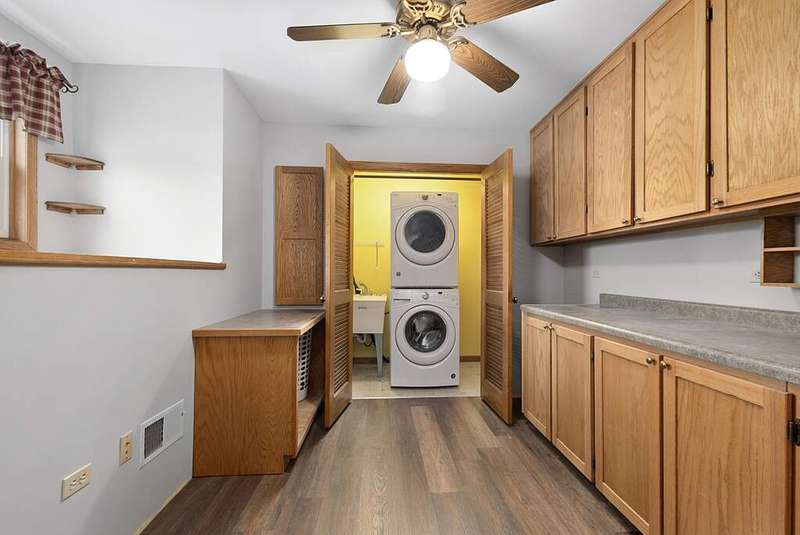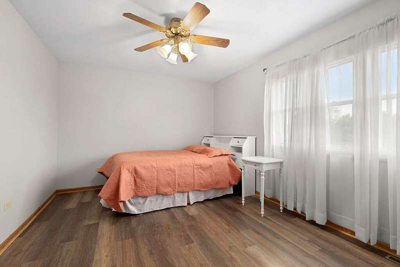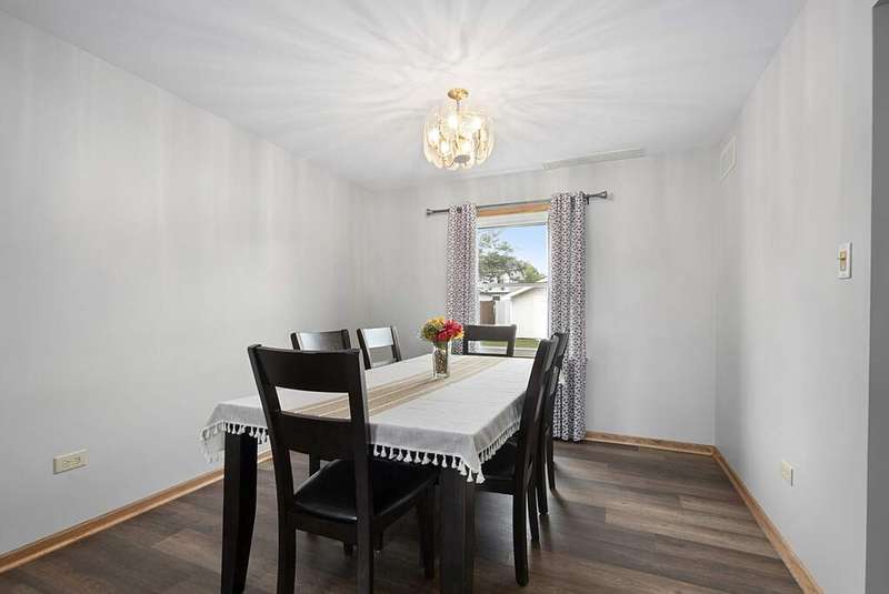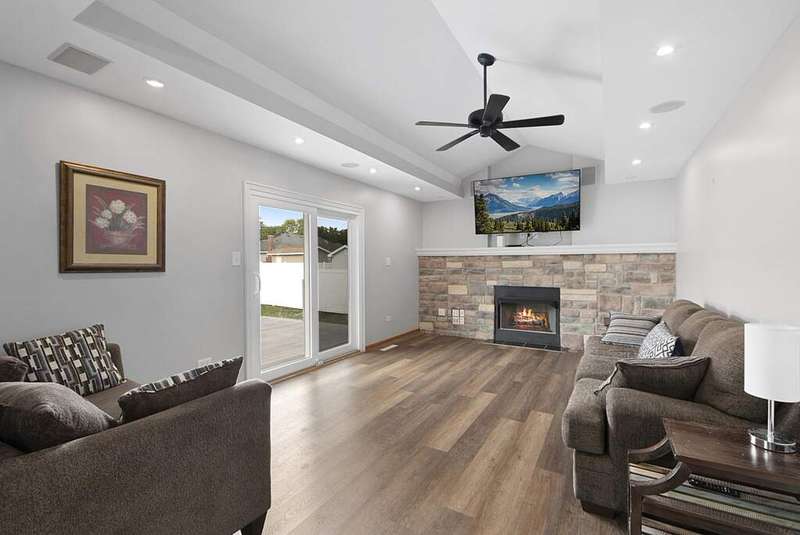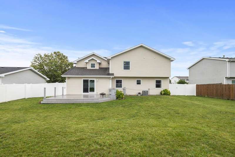 Welcome to this beautifully cared for 2-story home, perfectly blending comfort with thoughtful upgrades, all in a sought after location just steps from the neighborhood park and minutes to the interstate. Set on a well-kept lot with a private fenced backyard, this home offers inviting living spaces both inside and out. Step inside and immediately notice the freshly painted interior in 2024, brand-new luxury vinyl plank flooring installed in 2024, and abundant of natural light from new windows and a sliding glass door also installed in 2024. The spacious living room provides a welcoming area to gather, while the formal dining room is ideal for hosting family meals or entertaining. The bright eat-in kitchen features stainless steel appliances, a convenient pantry closet, and a casual dining area overlooking the backyard. Just off the kitchen, the family room showcases a cozy gas fireplace framed by a stunning stone accent wall, creating a perfect setting for both relaxing evenings and weekend get-togethers. A main-floor powder room and heated 2-car attached garage add comfort and convenience to everyday living. Upstairs, the large primary suite feels like a retreat with vaulted ceilings, a generous walk-in closet, and a private bathroom enhanced by a skylight that fills the space with natural light. Three additional bedrooms are well-sized with flexibility for guest rooms, offices, or hobbies. The 2nd-floor laundry room is a fantastic use of space, complete with built-in cabinets, ample counter space, and its own hot water heater in 2021. A full hall bath with skylight serves the upper level. The finished basement expands your living space with a recreation room, perfect for a home theater, workout area, or playroom. A spacious utility room provides excellent storage along with newer mechanicals, including a hot water heater in 2019, furnace 2019, air conditioner 2020, and battery backup sump pump for peace of mind. The backyard is designed for both relaxation and functionality. A newer privacy vinyl fence installed in 2019 surrounds the yard, creating a secure space for entertaining. The maintenance-free deck is perfect for outdoor dining, while the shed with a concrete floor and electricity adds valuable storage or workspace options. With its long list of updates, thoughtful design, and a location that combines neighborhood charm with commuter convenience, this move-in ready home truly has it all.