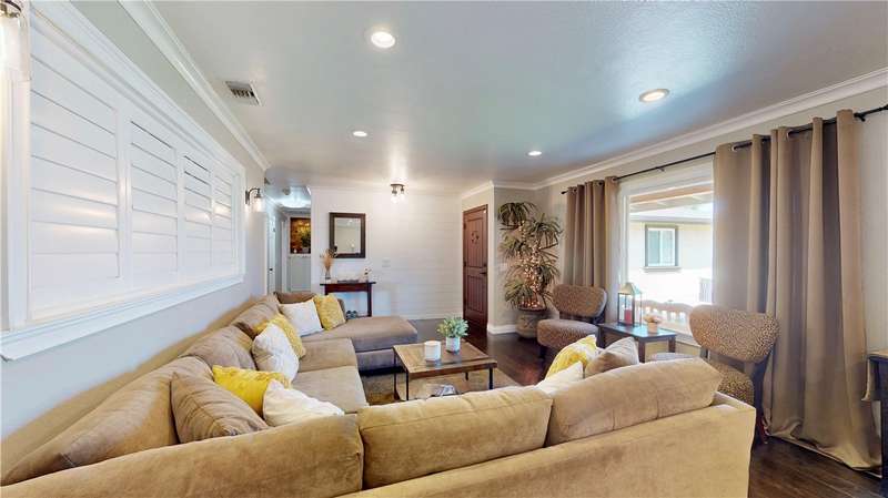 Outside, the possibilities are endless. The expansive lot is fully fenced with durable vinyl fencing, and the property includes new rain gutters, a brand-new front yard drip irrigation system, new valves, and low-voltage landscape lighting for added beauty and function. The grounds are enhanced by fruit-bearing trees, including sweet oranges, tangy lemons, and a rare pomelo tree, perfect for those who appreciate homegrown goodness.