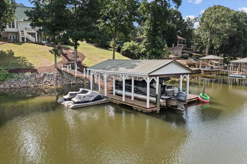 You can have it all! Come see what lake life is all about in this beautiful, FULLY FURNISHED & TURNKEY 4100 Sq. ft. waterfront custom home. Perfect for your lake life adventures using as a permanent home or investment with VRBO potential! Home features 3 bedrooms, 3.5 baths, primary on main w/a spa-like bathroom, spacious gourmet kitchen w/large island & eating bar, gas cooktop & pot filler. 2 living rooms, exercise (flex) room, & a 2-car garage w/a finished bonus room above - the perfect "bunk room" for the kiddos! Enjoy the outdoors w/the renovated screened porch & paver patio below w/under deck ceiling & brick wood-burning fireplace. Easy access to the covered boat dock w/a Hydro Hoist lift (2021). Additional improvements include 2 newer HVACs, a water filtration system, GE Profile refrigerator & tinted windows. Conveniently located 35 minutes to Charlotte & minutes to Mountain Creek Park, Publix & Sherrills Ford Village. The large cove & expansive views will WOW! No Restrictions.