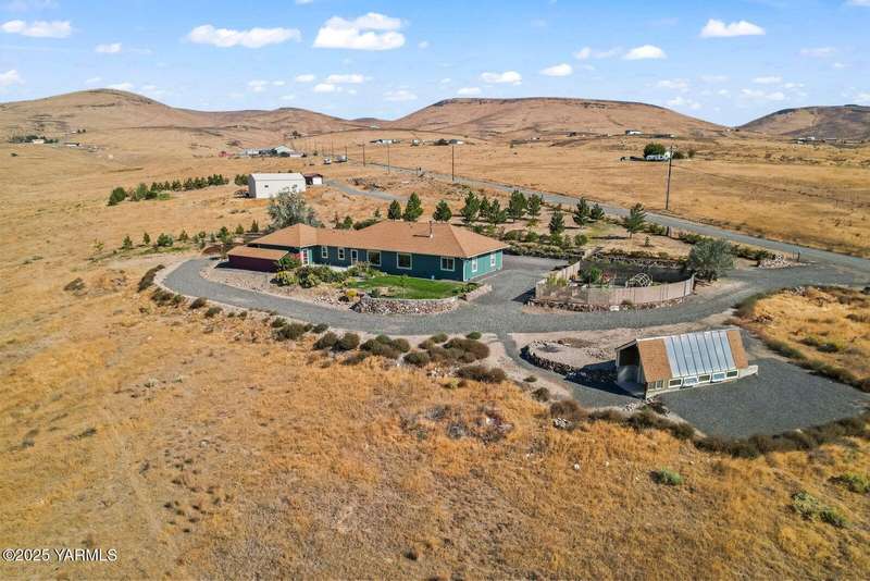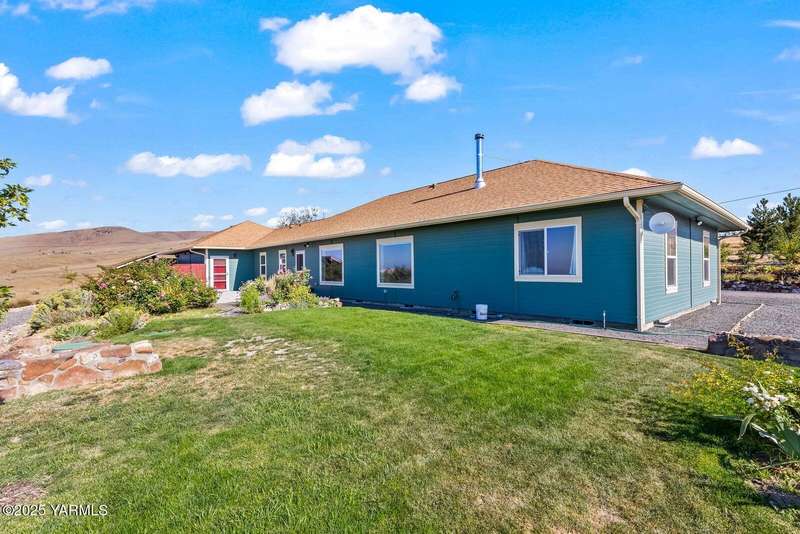Discover peace and privacy in this custom-built, single-level home on 5 acres with unmatched views of the Gap and Mt. Adams. Thoughtfully designed as a ''California build'' passive solar home, it has unique features that increase energy efficiency and comfort. With 3 bedrooms, 2 baths, and fresh interior paint, this well-maintained property is move-in ready. The open-concept kitchen, dining, and living room creates a welcoming space for gatherings, while a wood stove adds warmth and large windows frame the sweeping views. The primary suite offers a clever layout with the dressing area/bathroom separate from the sleeping area, plus a private office nook ideal for remote work or a quiet retreat. Other features include solid-core interior doors and new exterior paint in 2024. Outside, enjoy the heated greenhouse and garden area that extend the growing season. There's also a wrap-around shed and plenty of space for RV parking, equipment, or toys. Come experience the peace and tranquility this home has to offer!