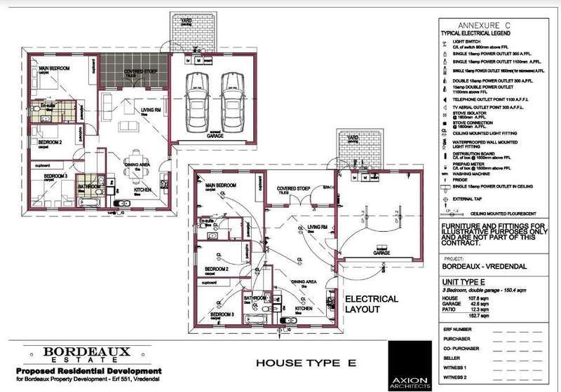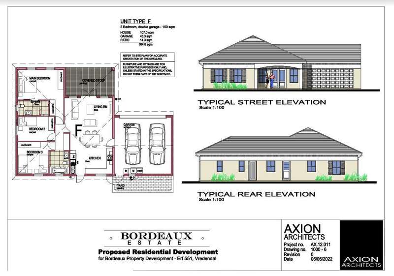 Welcome to Bordeaux Estate in Vredendal, where modern living meets peace of mind. This secure estate offers the perfect location to build your dream home in a community designed with safety and comfort in mind. Plot 5919 is now available for R699,000, providing you with an opportunity to choose from six thoughtfully designed building plans, each tailored to deliver both spaciousness and style. Bordeaux Estate takes pride in top-notch security protocols, allowing you to live comfortably with complete peace of mind. Located close to the primary school, the estate combines convenience with tranquility, making it ideal for families and professionals alike. House Types to Choose From: 1. **Type A** ?Çô A 2-bedroom home with a single garage (118.4 sqm in total). This plan includes a main ensuite bedroom, family bathroom, cozy living room, and a covered patio, creating an inviting home for relaxed living. 2. **Type B** ?Çô Another 2-bedroom option, featuring a single garage and a covered patio (118.5 sqm in total). The layout includes a main bedroom with an ensuite, a family bathroom, a welcoming living room, and a covered stoep for added outdoor enjoyment. 3. **Type C** ?Çô A spacious 3-bedroom home (149.6 sqm in total) with a double garage. With a main ensuite bedroom, family bathroom, kitchen, and open-plan living area, this layout is perfect for growing families. The covered stoep provides the perfect space for outdoor gatherings. 4. **Type D** ?Çô This 3-bedroom home (149.6 sqm in total) also includes a double garage and covered patio, with an open-plan kitchen, living room, and a main bedroom with an ensuite. Perfect for those who appreciate extra room and functionality. 5. **Type E** ?Çô A 3-bedroom home (164.6 sqm) with an open-plan kitchen, living room, and double garage. With a main ensuite bedroom and family bathroom, this plan is ideal for those seeking both space and style. 6. **Type F** ?Çô This family-friendly 3-bedroom home (164.6 sqm in total) includes a double garage, family bathroom, and an open-plan kitchen with a living area that extends to a covered stoep?Çöan excellent choice for family gatherings. Each of these options allows you to select a design that suits your lifestyle, whether you?ÇÖre looking for a cozy two-bedroom or a spacious three-bedroom layout with room for family and guests. Several homes in Bordeaux Estate are already built and available for viewing, giving you a firsthand look at the quality and style that define this development. Take the first step toward a secure, comfortable future in Bordeaux Estate, Vredendal?Çöwhere every home is designed for ease of living and enhanced security.