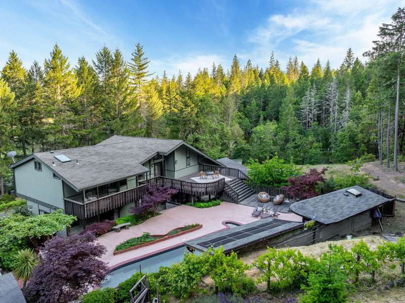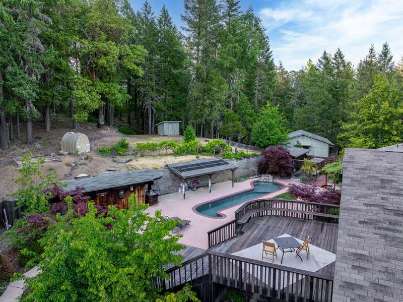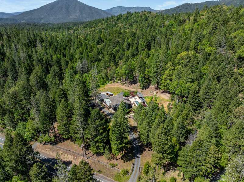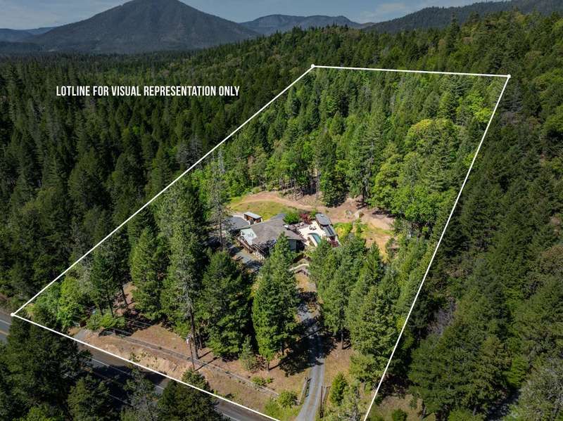 Motivated Seller with Buyer incentives available; such as possible closing costs, and/or rate buy down credit as well as a 1 year home warranty. Come experience this private 5-acre retreat minutes from Grants Pass in scenic Illinois Valley. Custom 3,528 sq ft home offers 4 BD, 4 BA, 2 living rooms, updated open kitchen, and an expansive primary suite with two decks, one with mountain views, the other overlooking a resort-style pool with waterfall. Detached office/studio, pool house, 6-person sauna, poolside bar, and potential guest cottage add flexibility. Oversized 2-car garage doubles as a shop. Treehouse, greenhouse, raised gardens, and multiple outdoor living areas complete the package. Ideal for full-time, multigenerational, or vacation living; short drive to the CA coast. This property emphasizes resort living at home with privacy and nature. Seller is in the position for a quick closing!