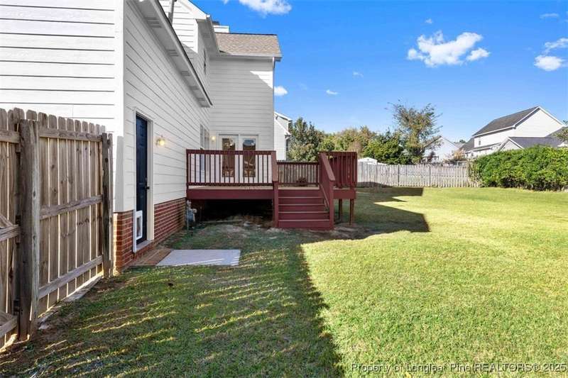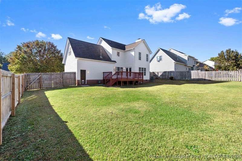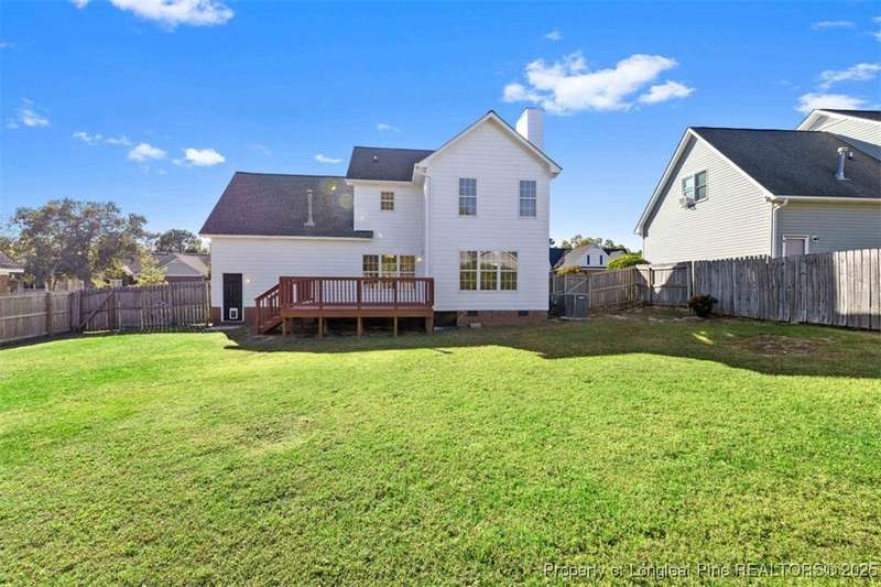 This inviting residence is perfectly situated within the highly sought-after Jack Britt High School District. This home features 3 bedrooms plus a bonus room, 2 1/2 baths and a flexible layout for both everyday living and entertaining. The adjoining living room and dining nook are perfect for relaxed gatherings. Three comfortable bedrooms are located upstairs while the bonus room (upstairs) offers an ideal space for a home office, media room, playroom or guest retreat. Home has new carpet upstairs and downstairs. Freshly painted inside and out. Backyard is just the right size for outdoor fun, gardening or simply unwinding on the spacious deck. The location elevates the appeal: nestled in a desirable subdivision close to shopping, dining and easy access to major roads, while maintaining the quiet and community-feel of this residential neighborhood.