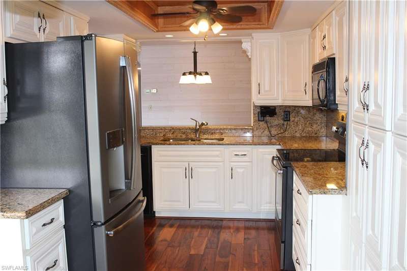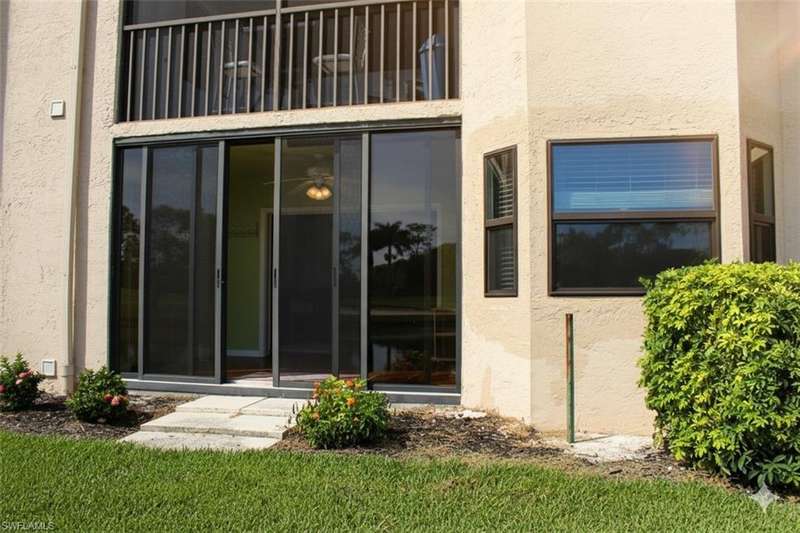 NO FLOOD ZONE! IMPACT RESISTANT WINDOWS! NEW 2025 AC and condenser. This beautifully upgraded first-floor, 2 bedrooms, 2 bath condo is perfectly positioned with sweeping views of the sparkling lake and manicured golf course, creating a serene backdrop for your everyday life. Step inside and discover a space designed for both comfort and style. The living room is warm and inviting, featuring a charming electric fireplace that adds ambiance year-round. Throughout the condo, rich real wood flooring adds elegance, while both bathrooms have been thoughtfully modernized with upgraded finishes. The spacious lanai has been fully enclosed with hurricane-rated patio doors, and every window has been replaced with hurricane-resistant glass, giving you peace of mind and year-round comfort. Laundry in unit with brand-new stainless-steel washer and dryer. Ownership includes a Social Membership at Countryside Golf & Country Club, providing access to a wide array of amenities designed for both relax