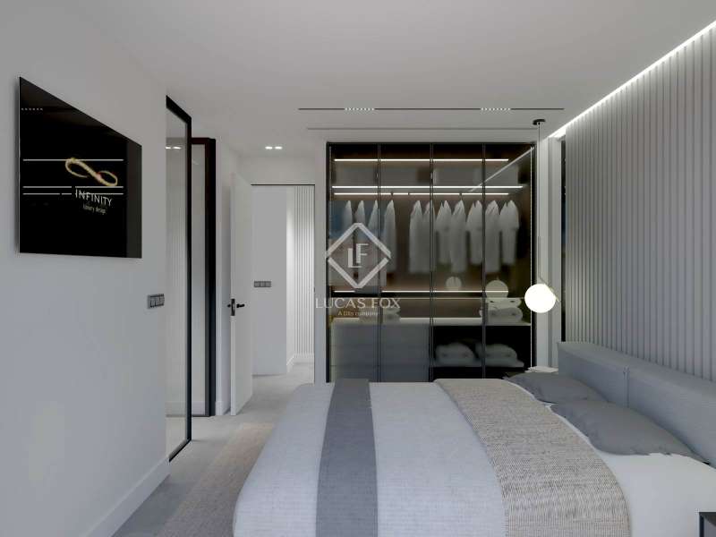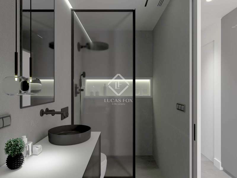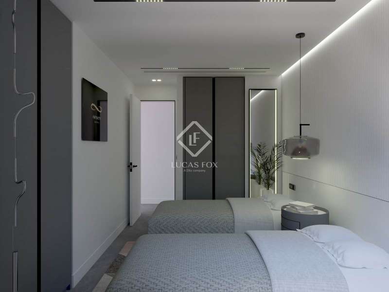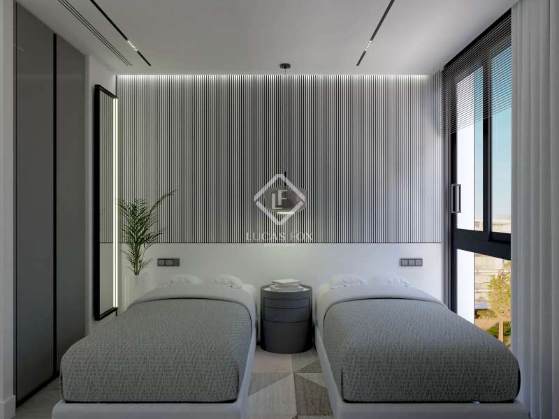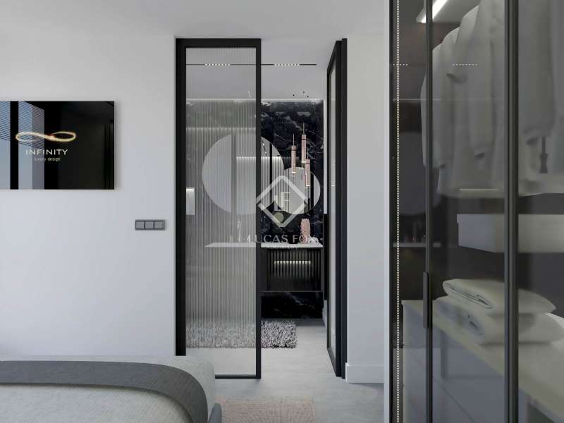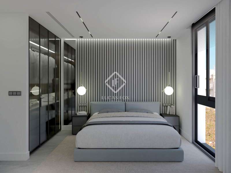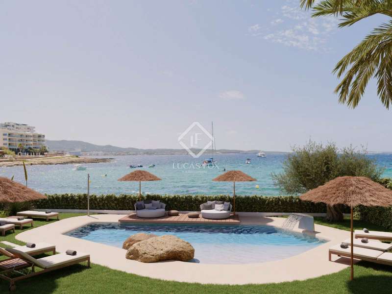 Ses Roques Baixes is an exclusive new development in a typical, Ibiza-style building on the west coast of the island, just 15 minutes from Ibiza City and 25 minutes from the airport. The development enjoys an ideal position, with the seafront promenade and turquoise waters right in front of the building. Located just a few steps from the beach, next to Cala Gració and Caló des Moro, with a large swimming pool in a communal garden, this is an idyllic place to enjoy the island of Ibiza and its pleasant year-round climate. This penthouse apartment is spacious, bright and open to the outside, allowing you to enjoy sea views with total privacy. It has an interior surface area of 76 m² and private outdoor space covering a further 65 m². Inside, we find a living room, dining room and kitchen with access to the terrace and 2 bedrooms with 2 bathrooms on the other side of the home. As far as interior design is concerned, we find large tiled floors with a white stone finish that unites the interior and the terrace, natural wood, refined lines and large windows that make every space in the home feel natural and bright. The finishes and furnishings have been selected for their simplicity, elegance, and warmth and the buyer has the opportunity to personalise their new home if they so wish. Low consumption lighting, home automation and an aerothermal energy system are just some of the modern features of these new homes. Optional equipment for outdoor areas is also available, such as: jacuzzi/pool on the terrace or rooftop solarium, outdoor kitchen on the rooftop solarium and/or a private pool. Furthermore, parking spaces and storage rooms are available from 27.000€. Please contact us for further information.