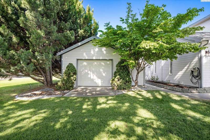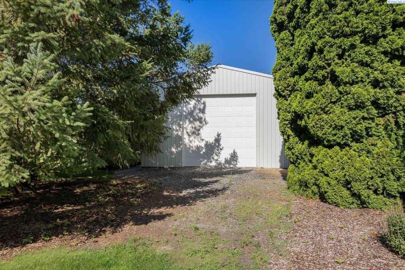 MLS# 286137 A rare find, tucked in a quiet neighborhood with mature landscape, a charming home with a magical backyard filled with colorful flowers, majestic trees, garden plot , a shop plus another detached garage (15X19) or is it a She-Shed? Entering this home you'll notice vaulted ceiling, round walls and other architectural features that separate this home from others. Formal living, family, kitchen, and primary bedroom are all on this main floor. Secondary bedrooms up stairs with a full bath. The inviting covered porch is the crowning glory of this home. With the large sitting area, it simply whispers slow down... and should be heeded. The shop is tucked away in the back yard, 30x60, with a 14X14 ft door, to handle RV's! There is additional visitor's RV parking on the gravel area with 50 amp service and access to water. Columbia Irrigation district supplies all irrigation water to home. Really, this home was filled with love and still resonates it, come inside and say hello.
