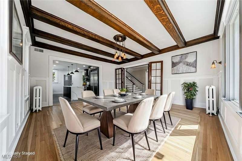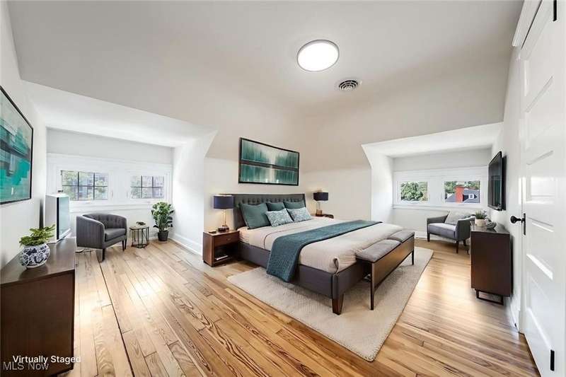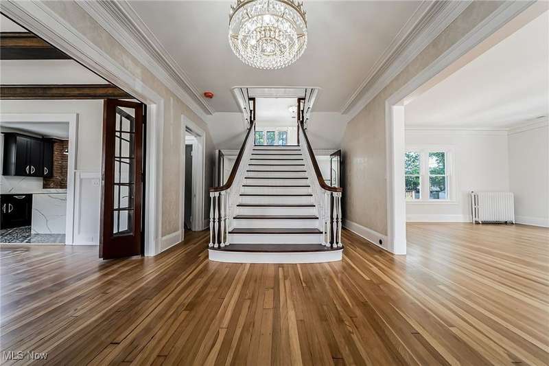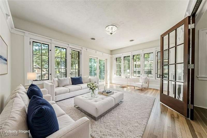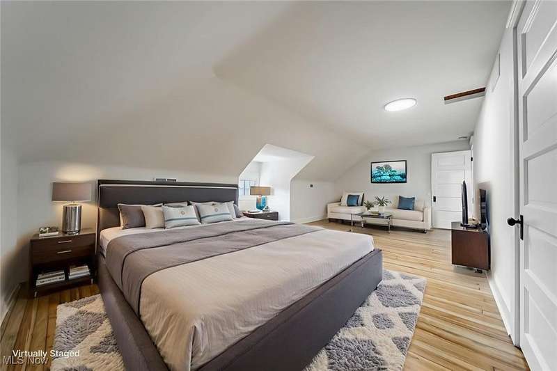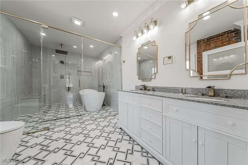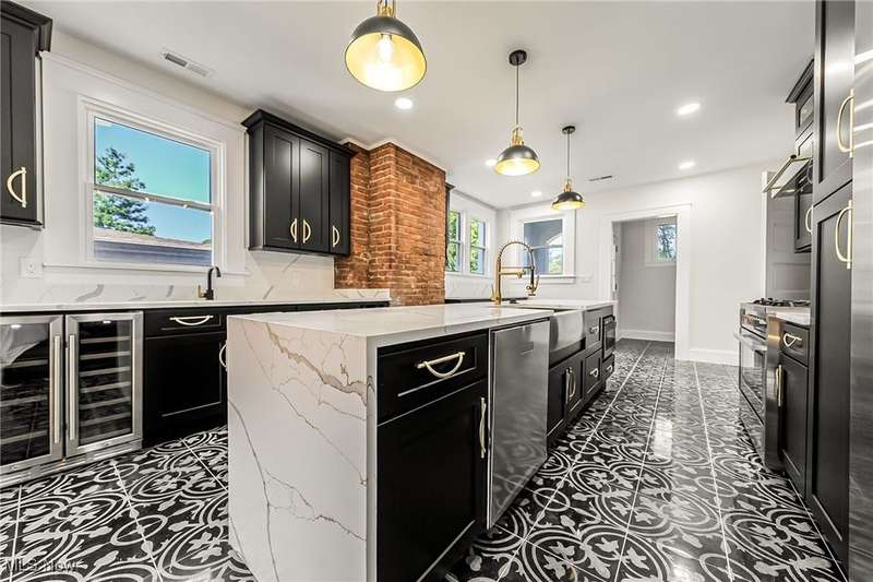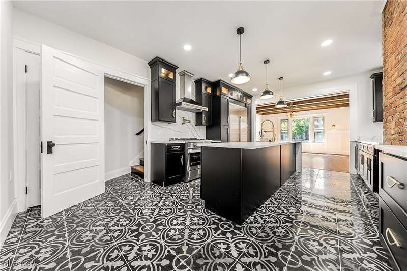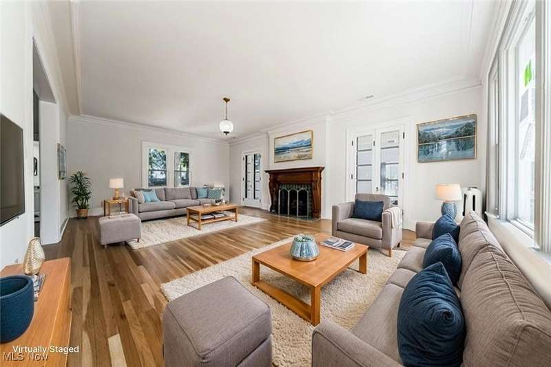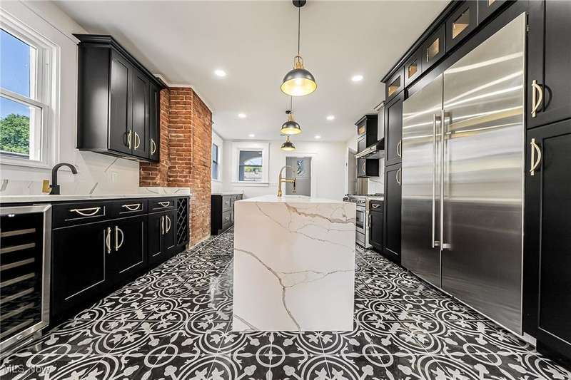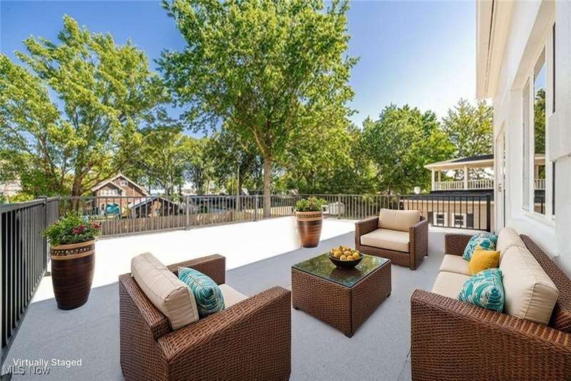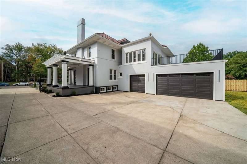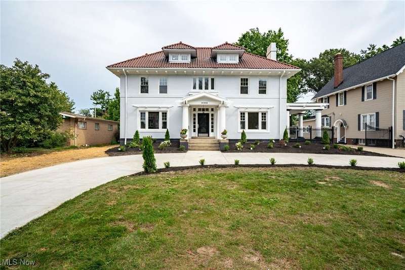 Welcome to this updated spectacular 4,300 sq ft Spanish-style home on Lake Avenue offering 5 bedrooms and 5 bathrooms, just steps from Lake Erie and Edgewater Park and minutes from downtown Cleveland. This stunning home offers the perfect blend of historic charm and modern luxury in one of Cleveland's most desirable locations. As you step through the front porch into the grand foyer, you're immediately greeted by a sweeping double staircase and the warmth of beautifully refinished original hardwood floors that flow throughout the home. The spacious living room opens into a formal dining room with a wet bar that leads seamlessly into a chef's dream kitchen, featuring sleek black cabinetry with brass hardware, a massive quartz waterfall island, exposed brick accents, high-end appliances including a 48" refrigerator, and designer light fixtures that bring the space to life. Upstairs, the second floor offers three spacious bedrooms including a luxurious master suite with a glamour bath and laundry room, plus a charming morning room with sliding doors that open to the private balcony. The third floor provides two additional bedrooms and a full bath, while the finished lower level offers yet another full bath, perfect for guests or extended living. Outside, enjoy multiple outdoor spaces including a welcoming front porch, a side porch, a second-floor balcony, and a newly built circular driveway leading to a three-car attached garage. Huge park like yard perfect for entertaining. Recent updates include a brand-new kitchen, updated all five bathrooms, refurbished hardwood floors, fresh paint throughout, new HVAC system, hot water tank, modern lighting, and new garage with a balcony access. This home is move in ready. Call for your private tour.