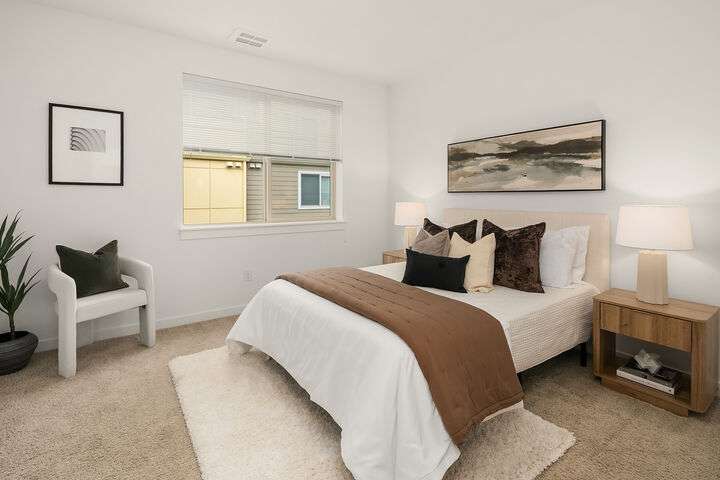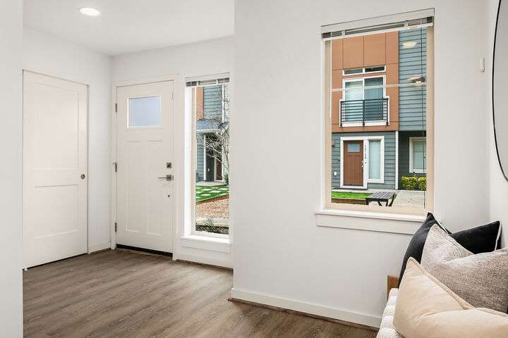 Welcome to Upton at Crossroads Village, this immaculate townhome is conveniently located adjacent to Crossroads Mall and just minutes to Microsoft, downtown Bellevue, Redmond and Lake Sammamish. Easy walk to shopping, dining, entertainment, grocery stores and more. The light-filled great room boasts tall ceilings, hardwood floors, eating area and stylish kitchen with upgraded cabinets, stainless steel appliances, gas stove, quartz counters and walk-in pantry. Upstairs you’ll discover two bedrooms, including the primary suite with dual vanity, large shower and walk-in closet. Additional features include a two-car tandem garage, mini-split heating + cooling, community courtyards/play areas and no rental cap. Desirable Bellevue School District