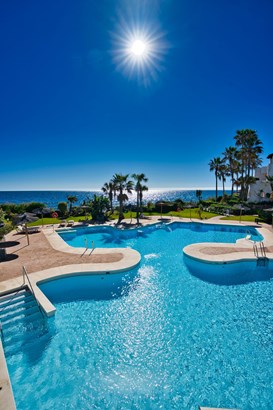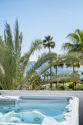Welcome to a truly exceptional beachfront duplex penthouse in the prestigious community of Ventura del Mar, one of Marbella’s most exclusive and beautifully designed developments. Perfectly situated between the glamour of Puerto Banús and the charm of San Pedro de Alcántara, this home offers an unparalleled lifestyle of serenity and sophistication—set directly on the shores of the Mediterranean, yet just minutes from world-class dining, shopping, and yachting.As you enter the residence, the sound of waves and the scent of the sea create an instant sense of calm. The interiors are bathed in natural light, with a spacious open-plan living and dining area that flows seamlessly to a large south-facing terrace overlooking the tropical gardens and the sea beyond. The kitchen is a statement of luxury, fully fitted with top-of-the-line appliances and centered around an elegant island—designed for both effortless everyday living and stylish entertaining.On the main floor, you’ll find two be