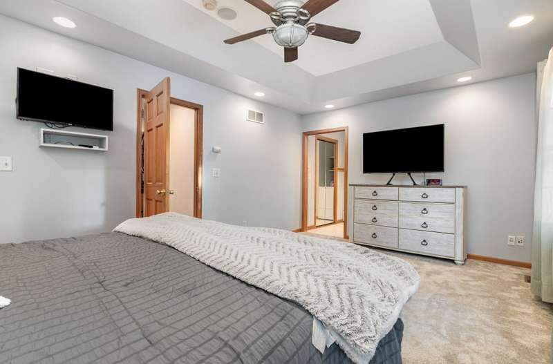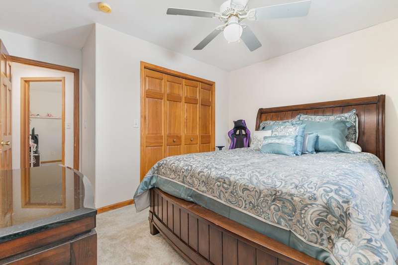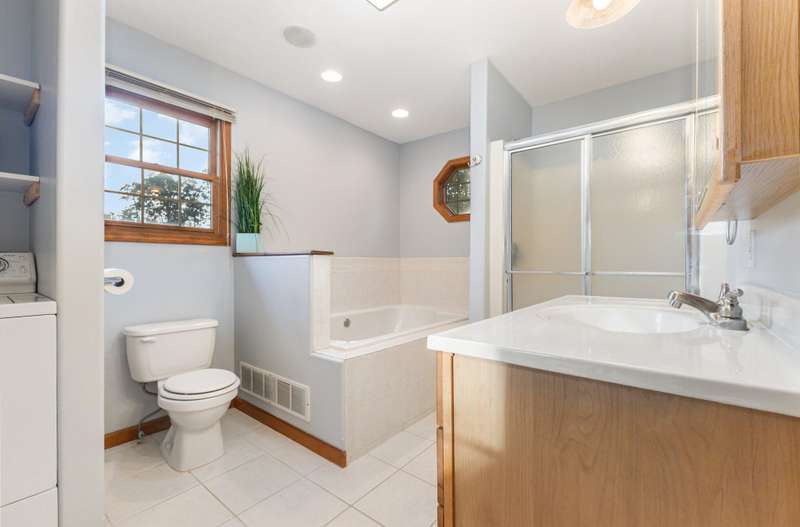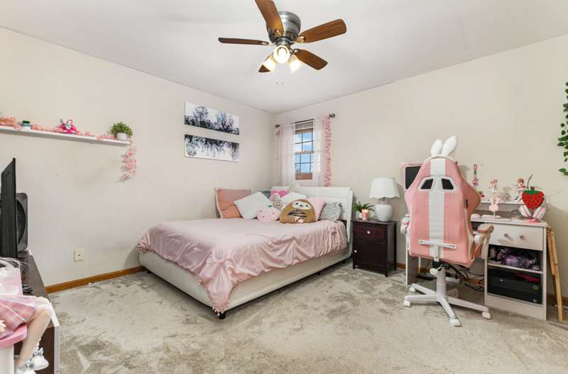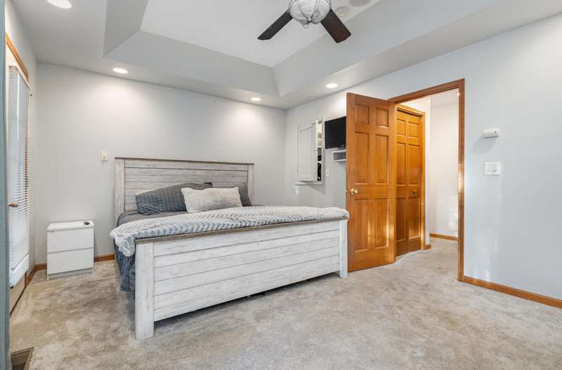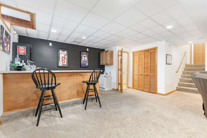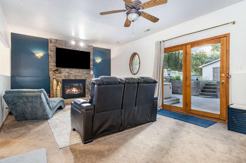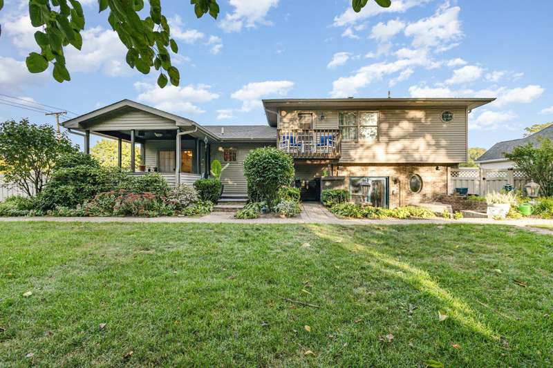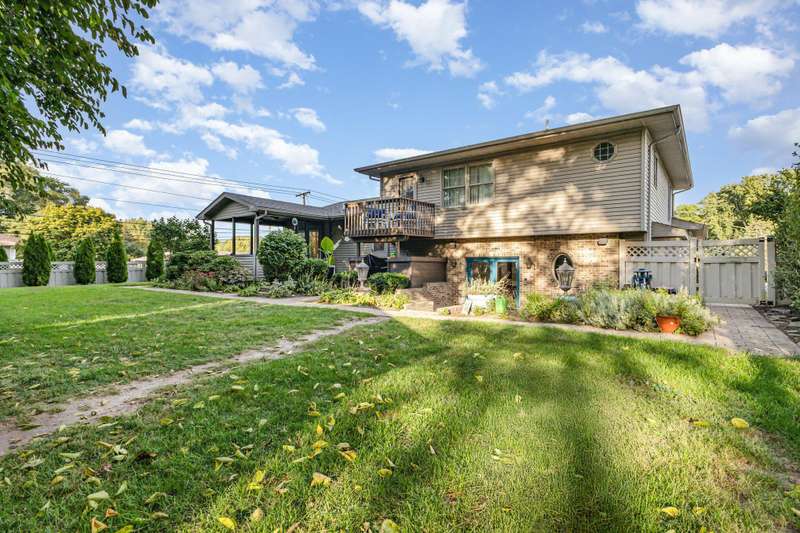 Prepare to be wowed by this impressive, solid home! Featuring four bedrooms, 3.5 baths, and three spacious living areas, it also boasts a three-car garage, a hot tub, and a brand new paver patio on 0.41 acres. The fenced yard includes a large shed with electricity, so clean it could serve as your little retreat. Step inside to find a main level with vaulted ceilings, a sunlit filled living room, and an eat-in kitchen equipped with appliances, Corian countertops, pull-out pantry shelves, a coffee bar, and beautiful wood floors. Slide open the door to unwind on your covered porch. If you're in the mood for some sun, the deck off of covered porch offers plenty of room to soak up the rays. Upstairs, the master suite offers a luxurious 6-foot whirlpool tub, a 4-foot shower, a walk-in closet, a second washer, and a private balcony. You'll also find two additional bedrooms and a full bath. The lower level features a recreational room with a gas fireplace, a playroom with closet, and French doors leading to the patio. It also includes a fourth bedroom, a bath, laundry facilities, and two oversized closets. The DRY basement offers even more living space with wet bar, half bath, and a spacious area for game room or play area. Outside, the backyard is designed for leisure and fun, complete with a large grassy area, irrigation system, a patio with a hot tub, deck, paver sidewalk, and arborvitaes that offer a natural privacy screen. Recently, stone stairs and a paver patio were added to the back of the lot, along with electric service for a hot tub. This truly is a perfect spot for private evening gatherings. The roof is only four years old, and the home features 9-foot ceilings along with numerous updates. Whether you enjoy quiet evenings at home or lively gatherings, this property covers it all!