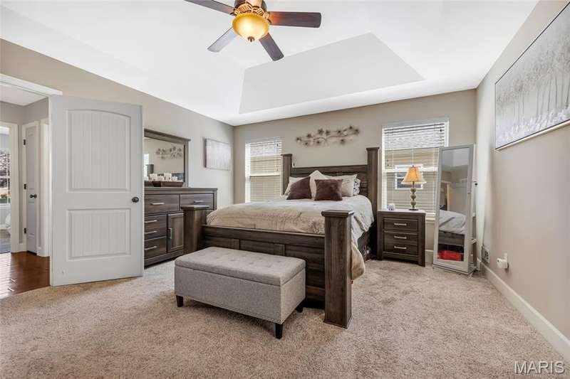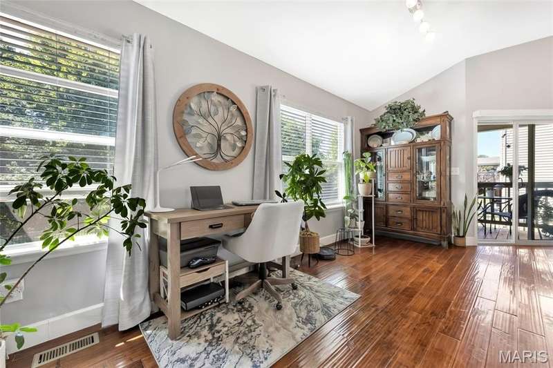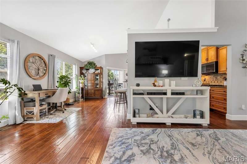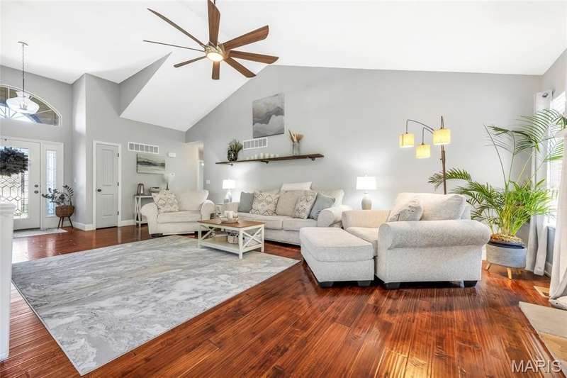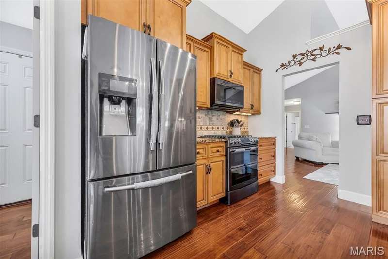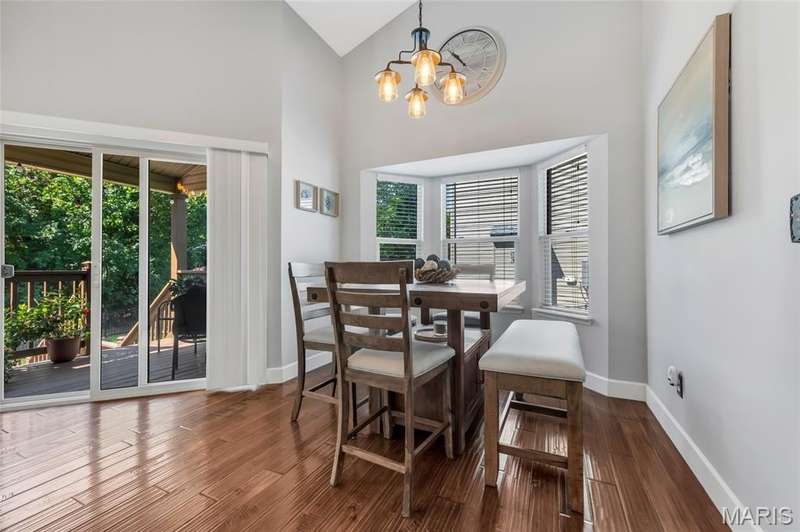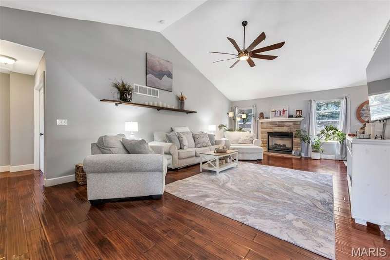 Welcome to this Craftsman-style 3 bedroom, 2 bath home featuring numerous updates, abundant natural light, and desirable details throughout. Bedrooms are carpeted, while the entry, kitchen, breakfast room, laundry, and hallways showcase wood flooring. The spacious family room boasts a gas fireplace and vaulted ceilings. The kitchen offers granite countertops, abundant cabinetry, stainless steel appliances, and a functional layout. Main floor laundry is conveniently located off the entry from the 3-car garage. The primary suite includes a double-door entry, generous natural light, dual vanity, and a walk-in closet. Outdoor living is a highlight with a deck leading to a large patio, beautifully landscaped yard, and tree-lined backdrop enhanced by an inground sprinkler system. Recent updates include a new roof, siding, gutters, downspouts, some windows, and a new walkout lower-level door. Well maintained and truly move-in ready.