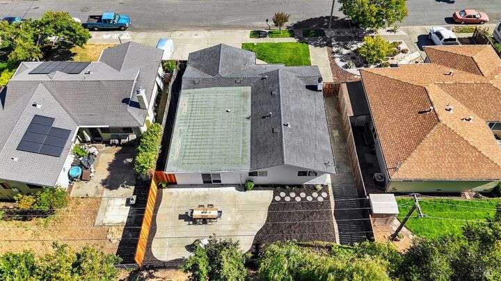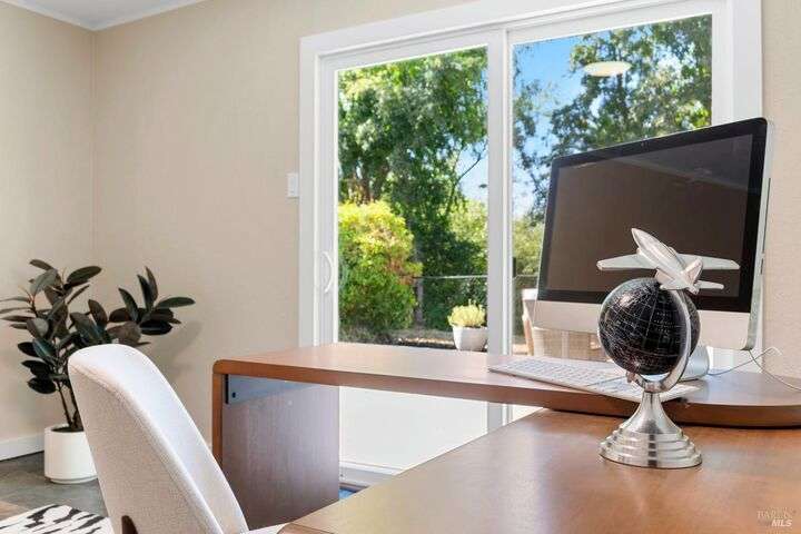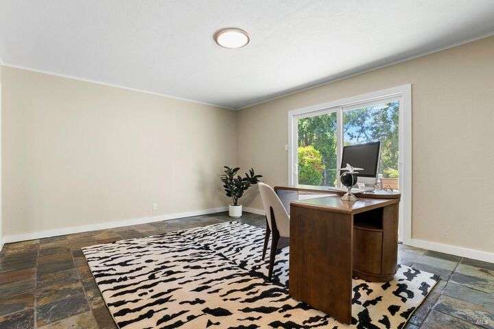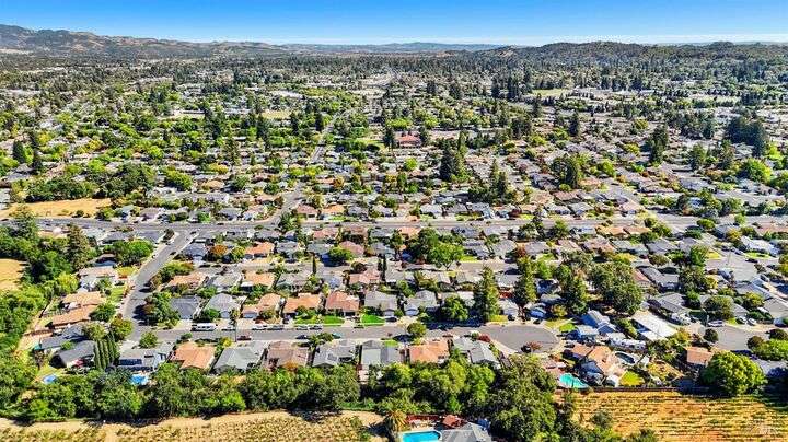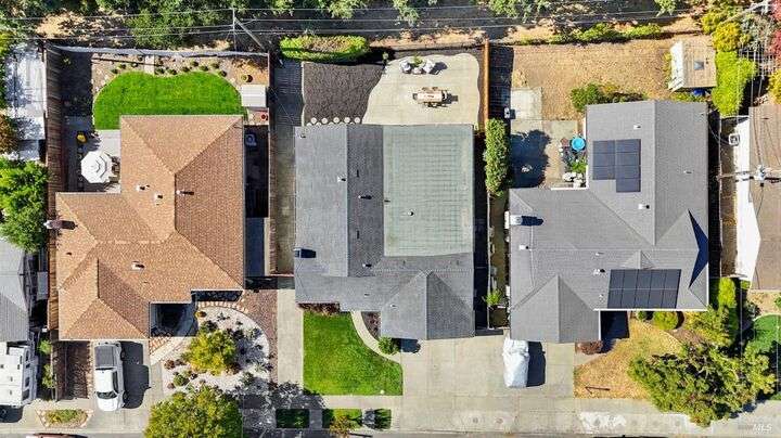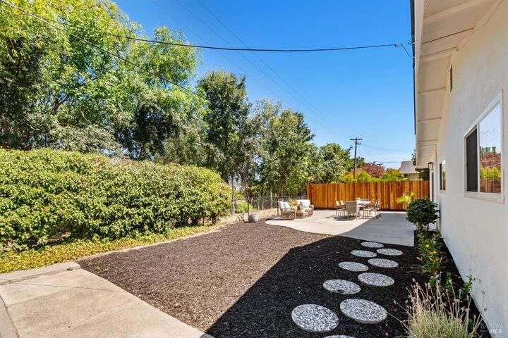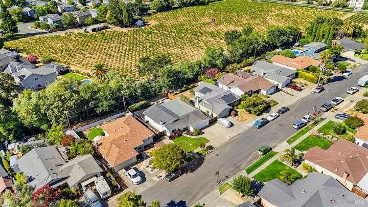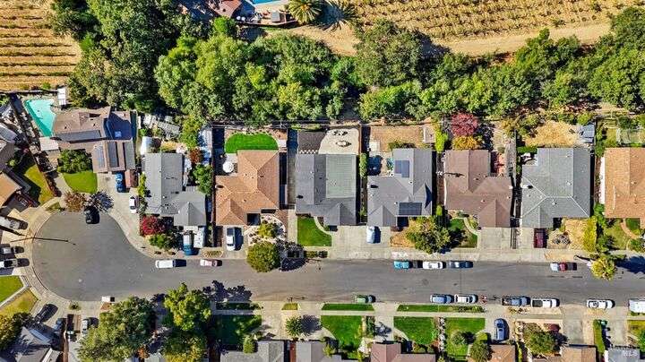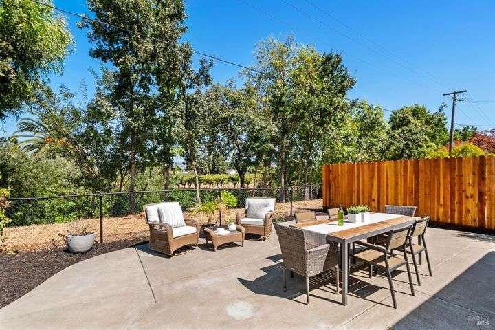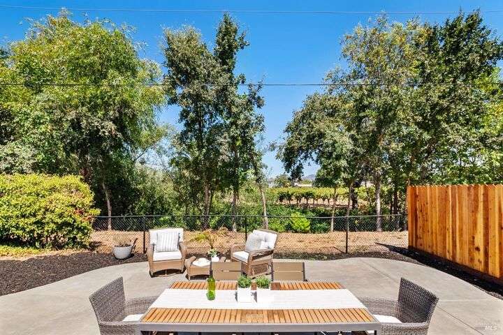 Vineyard views! Single-level home, with updating, located on a tranquil court. The oversized 4th bedroom may also be utilized as office, studio, formal dining, play space, etc....and has back yard access via sliding glass doors. North Napa location central to all services. New roof, newly painted, and recent upgrades. Come and relax in the spacious back yard while enjoying the serene vineyard views.