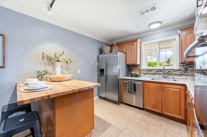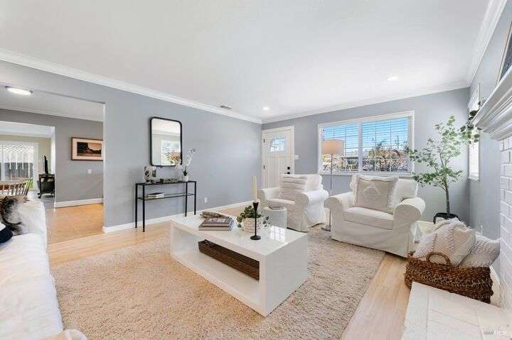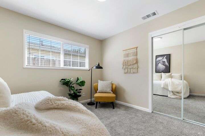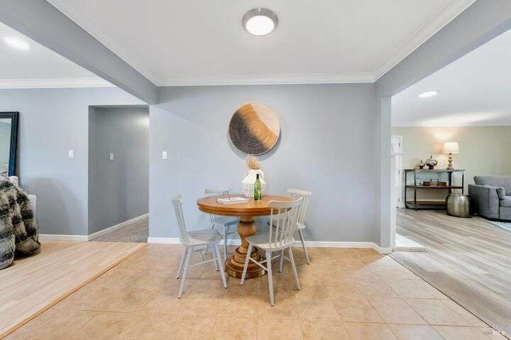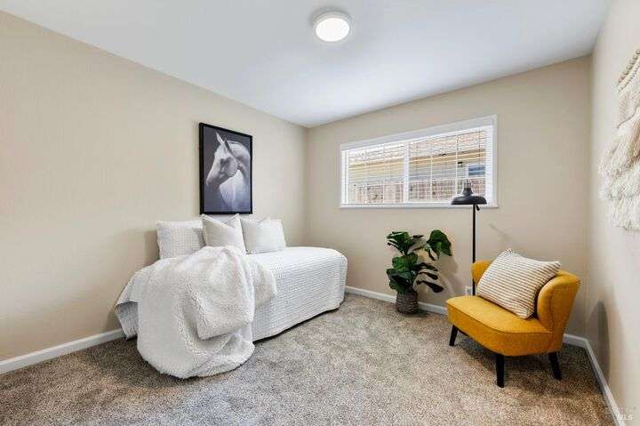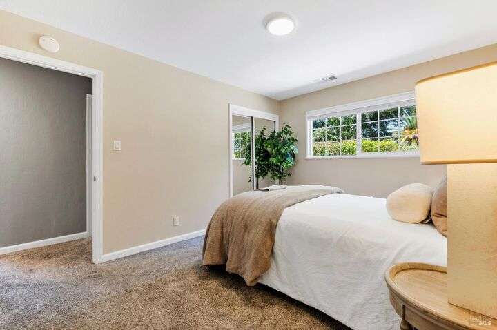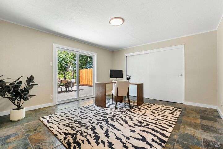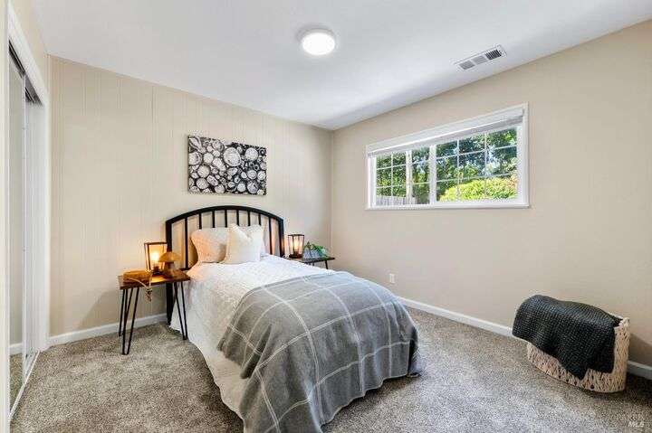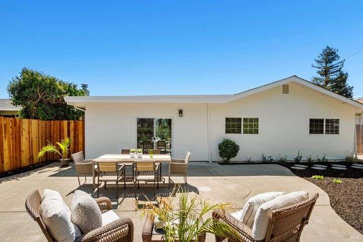 Vineyard views! Single-level home, with updating, located on a tranquil court. The oversized 4th bedroom may also be utilized as office, studio, formal dining, play space, etc....and has back yard access via sliding glass doors. North Napa location central to all services. New roof, newly painted, and recent upgrades. Come and relax in the spacious back yard while enjoying the serene vineyard views.