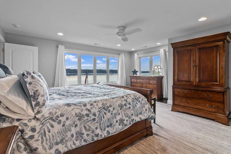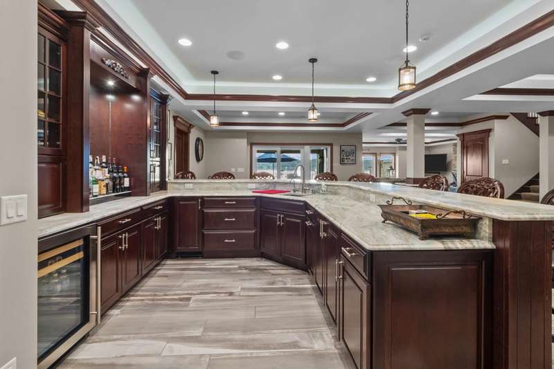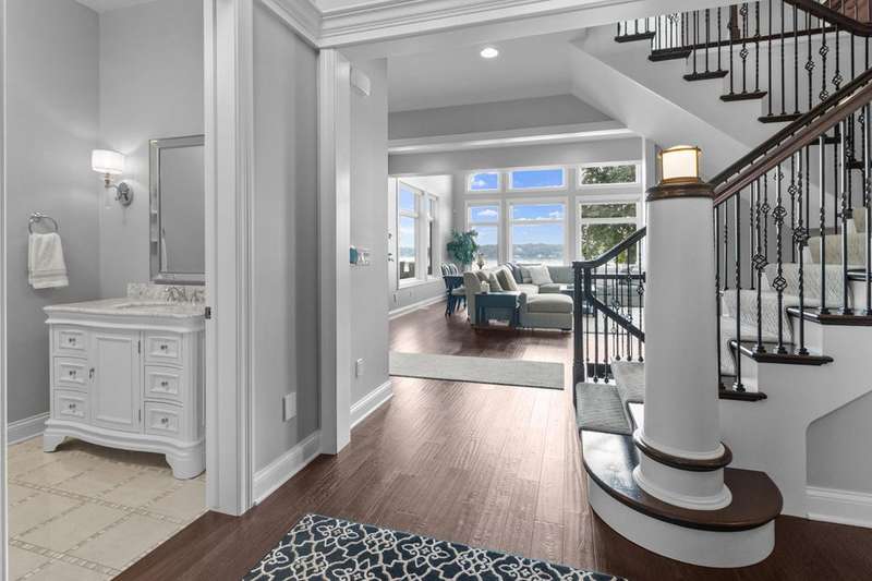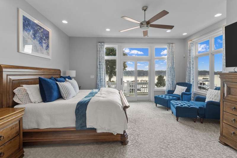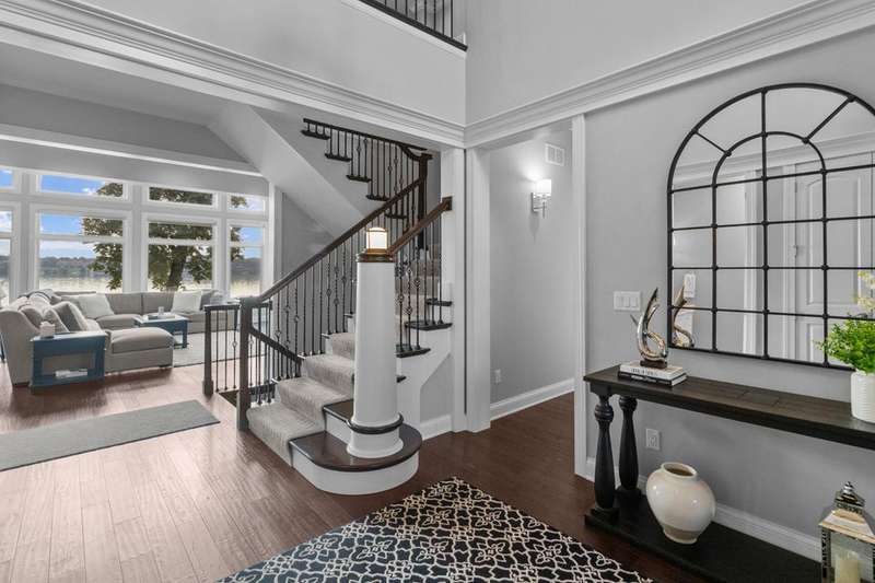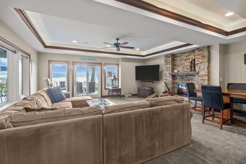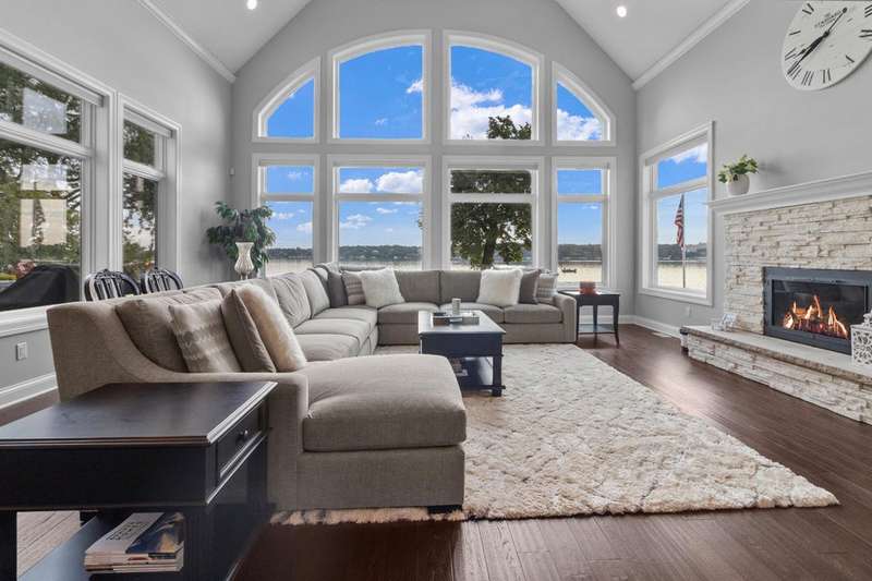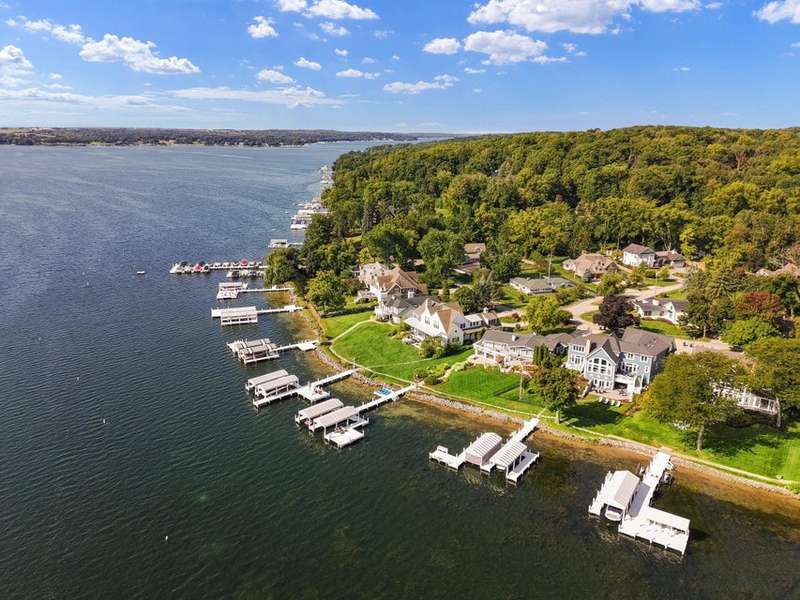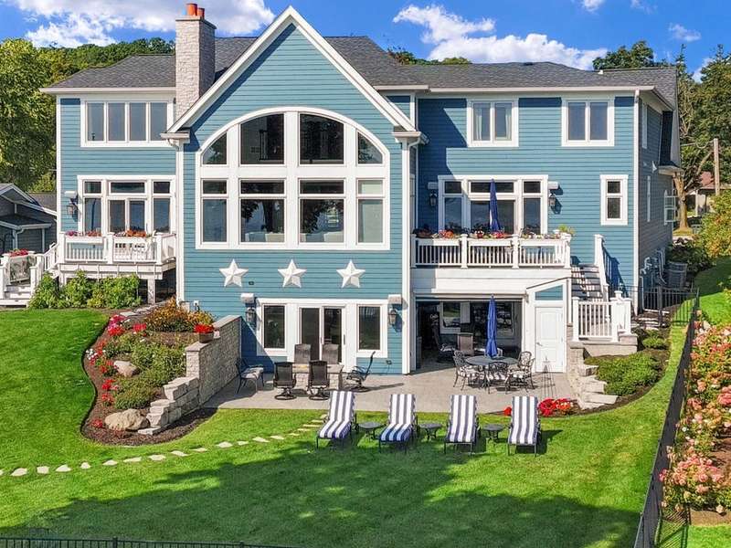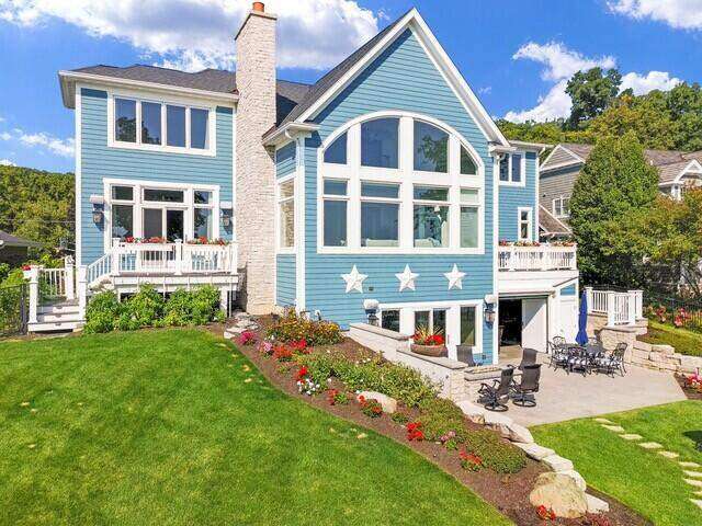 Stunning panoramic views come with this level lake frontage luxury home built in 2018. Sweeping lake views on all 3 levels from almost every room. Close to 7000 sq. ft of living space. Beautiful kitchen with 6ft Subzero frig and Viking 60'' double oven and hidden walk-in pantry. Main floor laundry and main floor in-suite master with steam shower and huge closet with island, 2 other in-suite bedrooms and one jack & jill. Exquisite landscaping with fenced yard and irrigation system. Lower-level family room with entertaining bar and walkouts to lower-level patio with screened porch. Lots of storage area too. 2 canopied piers. 102 ft. of frontage, 3- car garage and huge paved driveway. Turnkey, just bring your clothes. Jump on the lake path and you are one mile to downtown Lake Geneva!