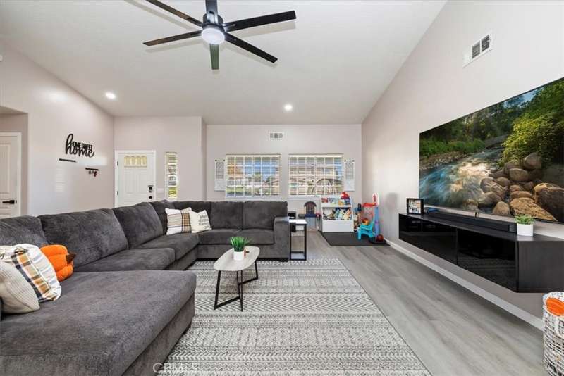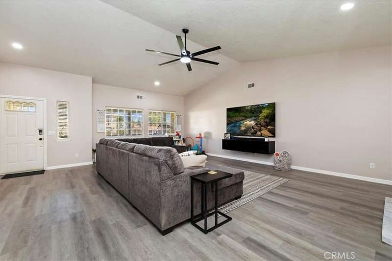 Welcome to this beautifully updated 3-bedroom, 2-bath ranch-style home that perfectly blends comfort, style, and modern convenience. Step inside to discover remodeled flooring throughout and upgraded windows that fill the home with natural light while improving energy efficiency. The spacious living area flows seamlessly into the kitchen and dining space, highlighted by a beautiful double-sided fireplace that connects the living and dining rooms--creating warmth and ambiance for gatherings or quiet evenings at home. New ceiling fans throughout the home provide added comfort and energy efficiency, while the primary suite features a large walk-in closet, offering plenty of storage and a private retreat within the home. Outside, enjoy low-maintenance turf landscaping in both the front and backyard, creating a lush, green look year-round. The back patio has been completely redone, providing the perfect spot for outdoor entertaining. The refreshed front yard adds the finishing touch to this move-in-ready gem. Conveniently located near schools, parks, and shopping, this home offers the ideal balance of modern updates and timeless charm. Don't miss your chance to make this stunning property yours!