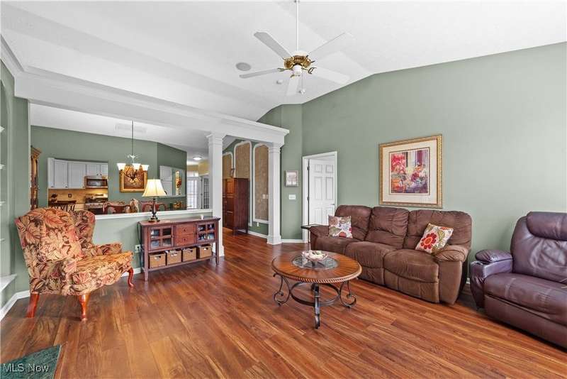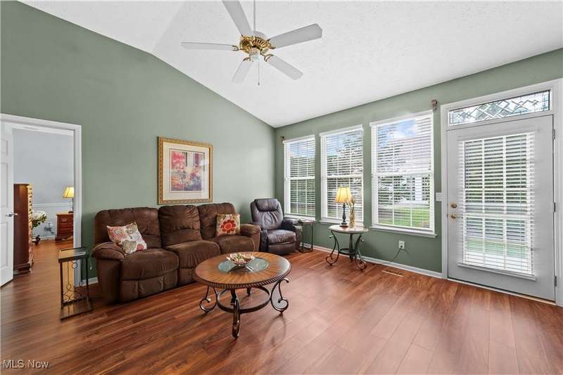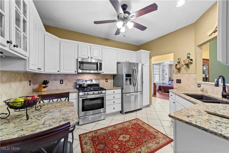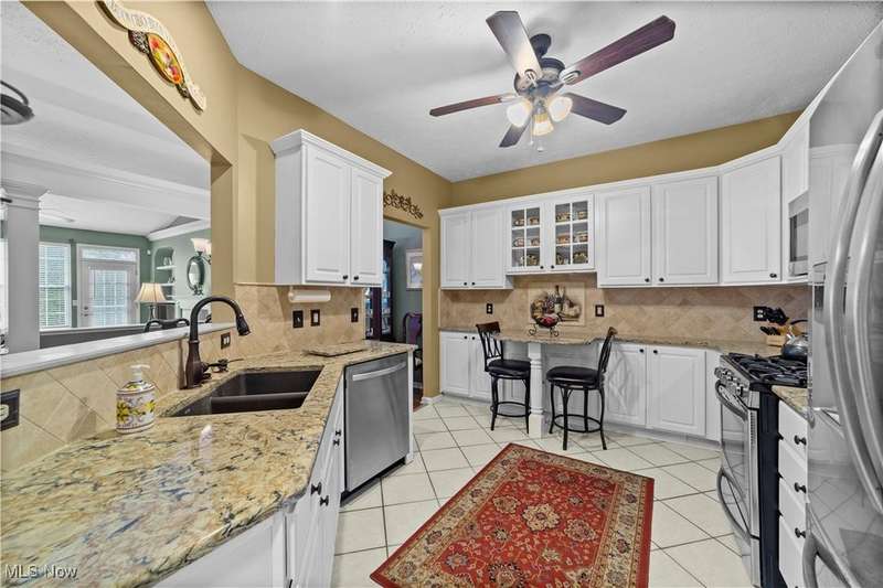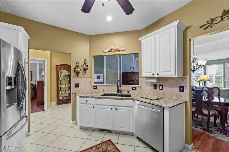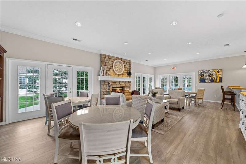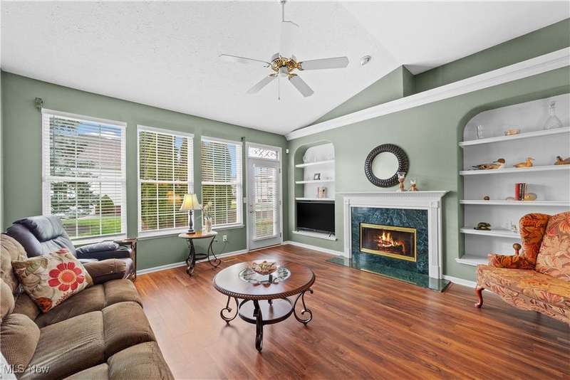 Welcome to the highly sought-after 55+ community of Orchard Park in Westlake ? where maintenance-free living meets timeless comfort. Step into a spacious foyer finished in elegant ceramic tile, and you'll immediately feel the distinction. The heart of the home is the upgraded kitchen ? crisp white cabinetry, generous counter space topped with quartz, a stylish tile backsplash, stainless steel appliances (all staying), and ceramic tile flooring that flows effortlessly into the adjacent spaces. The great room impresses with vaulted ceilings, built-in shelving, a gas fireplace with eye-catching tile surround, and durable luxury-vinyl-plank (LVP) flooring. From here, a convenient door leads to your private patio ? perfect for morning coffee or relaxing outdoors. For formal gatherings, the dining room features a sophisticated tray ceiling and consistent LVP flooring, setting an elegant tone. The master suite offers a welcoming tray ceiling, LVP flooring, two closets including a large walk-in, and a glamour bath with a large vanity, jetted tub, and beautifully updated walk-in shower and ceramic tile flooring. A second bedroom and full bath (ceramic flooring and tub/shower combo) complete this comfortable and functional layout. Plus, recent updates include a newer HVAC system and water heater for added peace of mind. Your roomy garage features abundant cabinet storage and a pull-down attic for extra space. Enjoy the active-adult lifestyle with the community's center offering a workout room, full kitchen, shuffleboard courts and a gas grill for summer outdoor fun ? all part of the Orchard Park experience.