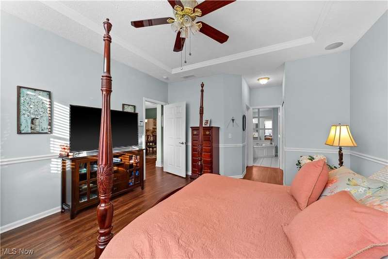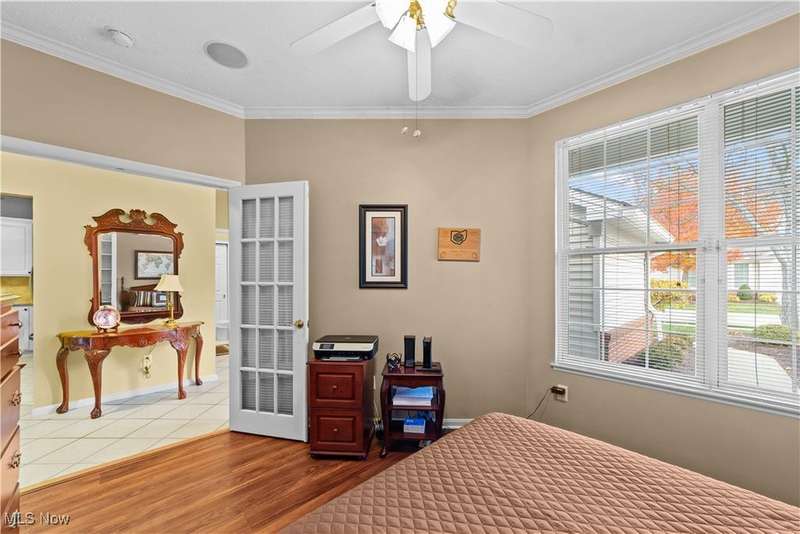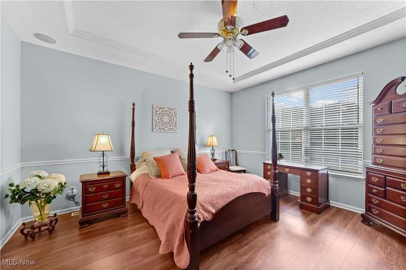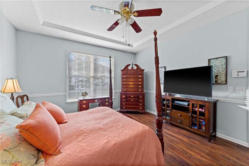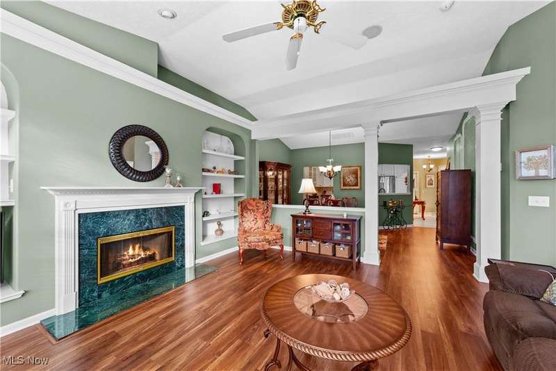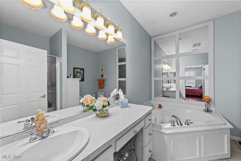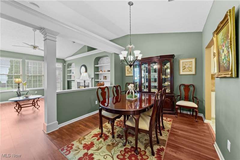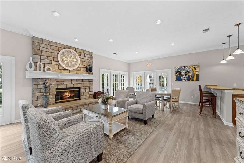 Welcome to the highly sought-after 55+ community of Orchard Park in Westlake ? where maintenance-free living meets timeless comfort. Step into a spacious foyer finished in elegant ceramic tile, and you'll immediately feel the distinction. The heart of the home is the upgraded kitchen ? crisp white cabinetry, generous counter space topped with quartz, a stylish tile backsplash, stainless steel appliances (all staying), and ceramic tile flooring that flows effortlessly into the adjacent spaces. The great room impresses with vaulted ceilings, built-in shelving, a gas fireplace with eye-catching tile surround, and durable luxury-vinyl-plank (LVP) flooring. From here, a convenient door leads to your private patio ? perfect for morning coffee or relaxing outdoors. For formal gatherings, the dining room features a sophisticated tray ceiling and consistent LVP flooring, setting an elegant tone. The master suite offers a welcoming tray ceiling, LVP flooring, two closets including a large walk-in, and a glamour bath with a large vanity, jetted tub, and beautifully updated walk-in shower and ceramic tile flooring. A second bedroom and full bath (ceramic flooring and tub/shower combo) complete this comfortable and functional layout. Plus, recent updates include a newer HVAC system and water heater for added peace of mind. Your roomy garage features abundant cabinet storage and a pull-down attic for extra space. Enjoy the active-adult lifestyle with the community's center offering a workout room, full kitchen, shuffleboard courts and a gas grill for summer outdoor fun ? all part of the Orchard Park experience.