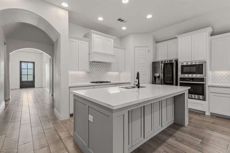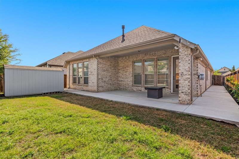 Welcome to this pristine 1-story home located in the highly sought-after community of Trinity Falls. Offering an open, natural light-filled floor plan, this home features 4 spacious bedrooms plus a dedicated office space. The kitchen is a chefs dream with an abundance of white cabinetry, an oversized island, and a gas cooktop, perfect for cooking and entertaining. Enjoy the beauty of tile and luxury vinyl flooring throughout, with no carpet to worry about. The primary suite offers a large ensuite bathroom, creating a private retreat, while one of the extra bedrooms also boasts its own ensuite bath, ideal for guests or family. Step outside onto the extended patio, and discover a storage building in the backyard for all your tools and toys. Located within walking distance of the newest McKinney Elementary School, Frazier, this home is perfectly positioned in a vibrant community. Trinity Falls is more than just a neighborhood; its a lifestyle. With 2 swimming pools, 2 clubhouses, a fitness center, 6 serene lakes, disc golf, a trike bike area, a dog park, fishing, and acres of hiking trails, theres always something to do. The homes beautiful brick and stone exterior adds to its curb appeal, and the seller is leaving the TV, refrigerator, washer, and dryer for your convenience. Plus, if youre a qualified VA buyer, you can take advantage of an assumable VA loan at 5.375%. Don't miss the opportunity to make this incredible home yours. Schedule a tour today and experience the lifestyle of Trinity Falls!