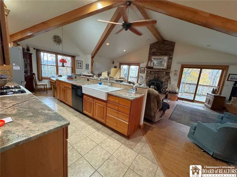 Want to live in the trees in your own 'Treehouse'? This Barndominium was designed and built in 2010 in the middle of the woods yet only a 5 minute drive to town! Such a one of a kind unique home! As you enter the long winding driveway you will notice the woods, foliage and a winding creek before the driveway opens up to your house in the trees! The ground floor consists of storage and parking (2-3 car parking garage with finished walls as well as a utility room, half bath and office on ground level.) Up the stairs to the living space above and you will find an open concept design and lofted ceilings. This home was designed with windows placed facing views of the outdoors in most rooms. The kitchen, dining area, breakfast area and great room have vaulted ceilings that give such a nice open, airy and roomy feel! Great room features a floor to ceiling stacked stone fireplace as your focal point and a wet bar offers nice entertainment options. A set of sliding glass doors on either side of the fireplace open onto a deck that spans the whole width of the home. View the woods and creek below while relaxing or grilling! Quality wood cabinetry and granite countertops are one of the many features of the kitchen, as well as appliances, a walk-in pantry and countertop small appliance nook. The food prep island has views of the trees and grounds in 3 directions. An ample sized laundry room, also with quality wood cabinetry is off the bedroom hallway, as is the guest bathroom. Experience the spacious master bedroom with it's own bathroom having double vanities and walk-in shower. Sliding doors off this bedroom open out onto your own private master balcony. To complete the master ensuite is a walk-in closet. Added details include recessed lighting, new high-speed fiber optic internet in 2025, superb insulation, oversized circuit breaker electrical system(owner was an electrician!), outside staircase from deck down to woods below, shed, and a 'Generac' brand backup generator system. All on 11 acres for the nature lover!