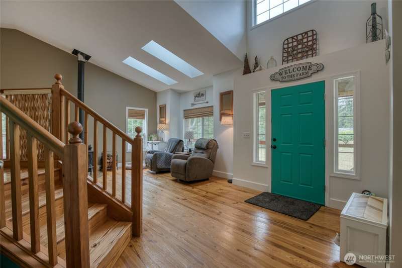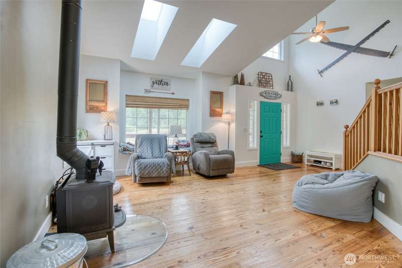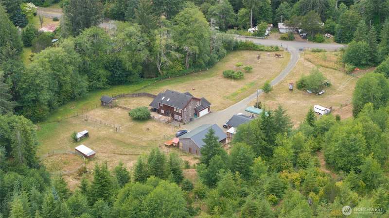 Rural Living at its best! A Mini Farm on 8 acres. Built in 1994. Chicken house, fruit trees, pastures, partially fenced. A year-round stream (w/water rights). 30 x 30 Shop, 2 Story Barn. This home has beautiful wood floors & A Grand Staircase. Also features tiled baths, vaulted ceiling, window seat, skylights, free standing wood stove & stainless counters. Updated electrical & pump, AC & cedar siding. The list continues: garden areas with a screened in front porch, composite back deck & a patio. This property is out of flood zone, doesn't require flood insurance. A Very Unique Home and Setting. You can hike, ride horses, and quads right from your own home on your own property!