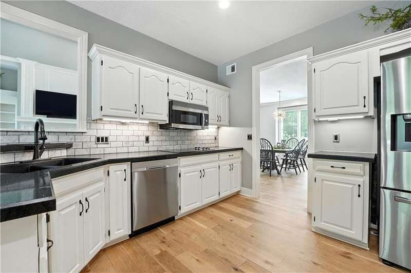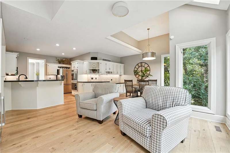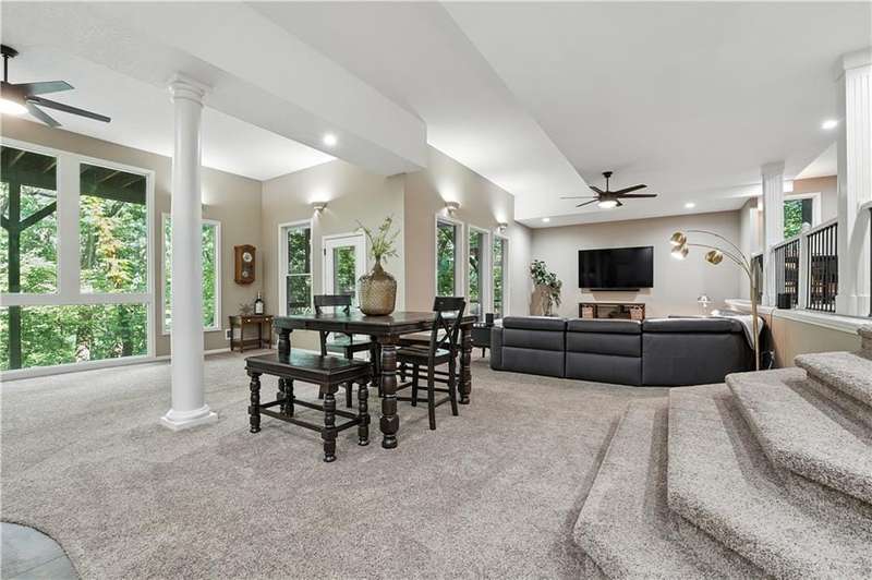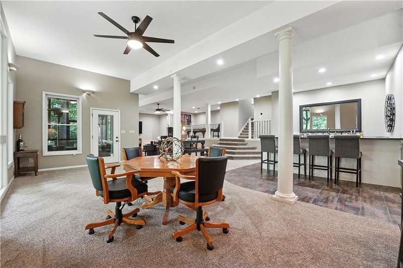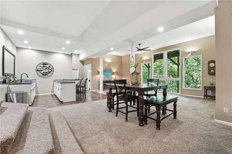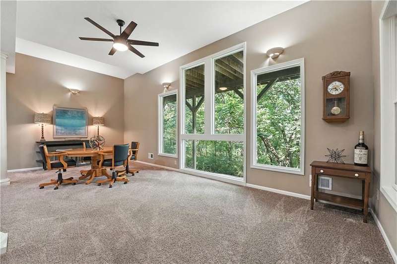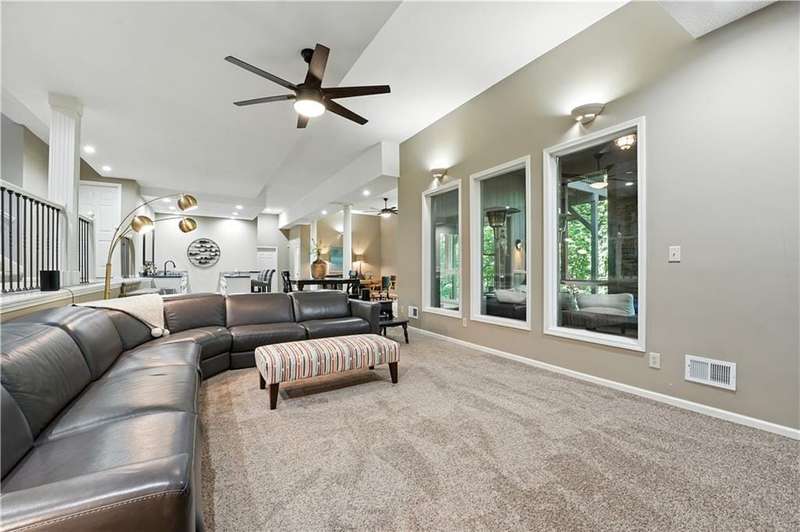 Nestled in the highly sought-after neighborhood of Winterset Park in Lees Summit, this impressive 1.5 story home offers over 5,000 square feet of living space, backing to serene trees and woods for unmatched privacy. The massive back deck and screened-in porch will quickly become your personal retreatperfect for unwinding and soaking in the sights and sounds of nature.Step inside to soaring ceilings and an abundance of natural light pouring through large windows. The formal living room provides an elegant space to gather, while the sunken family room invites cozy evenings by the fireplace, framed by floor-to-ceiling windows with wooded views. The thoughtfully designed, updated kitchen is as stylish as it is functional, featuring beautiful finishes and a great layout for both everyday living and entertaining. Brand new hardwood floors elevate the main level, where youll also find the spacious primary suite and convenient laundry room. Both the roof and HVAC are just 3 years young, offering peace of mind.Upstairs, youll find three generous bedrooms, two full baths, and a fun loft area perfect for a reading nook, play space, or home office.The lower level is a showstopperover 1,500 square feet designed for entertaining. It includes another full bathroom and a flexible room that works perfectly as a home office or 5th non-conforming bedroom for guests. From here, step out to the screened-in porch, complete with its own fireplace, where you can enjoy every season in comfort and style.This home blends comfort, elegance, and a connection to nature in a way thats hard to find.You are just a short distance from Hartman Park and the Rock Island Trail. The Winterset community is one of Lees Summits award-winning neighborhoods, with over 200 acres of protected natural areas and exceptional amenities. Take time to enjoy the neighborhood pool, walking trails, and butterfly garden.