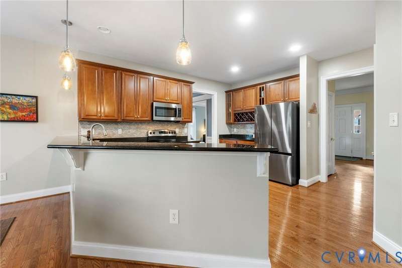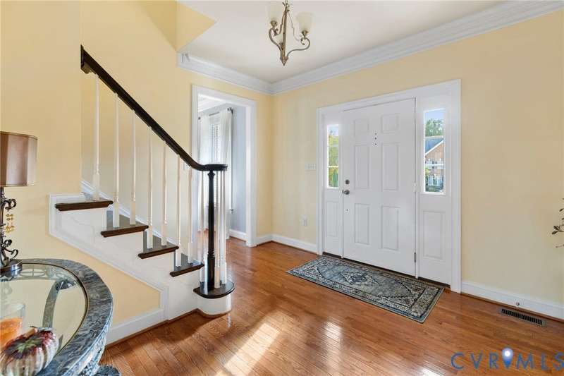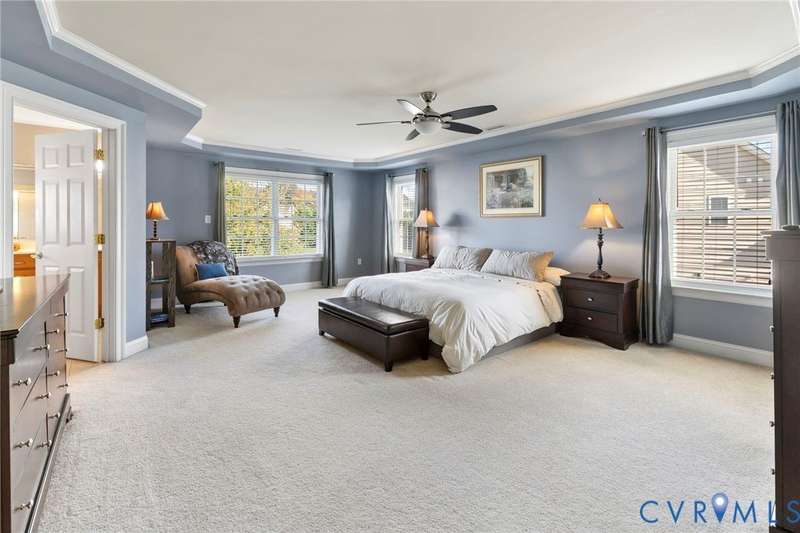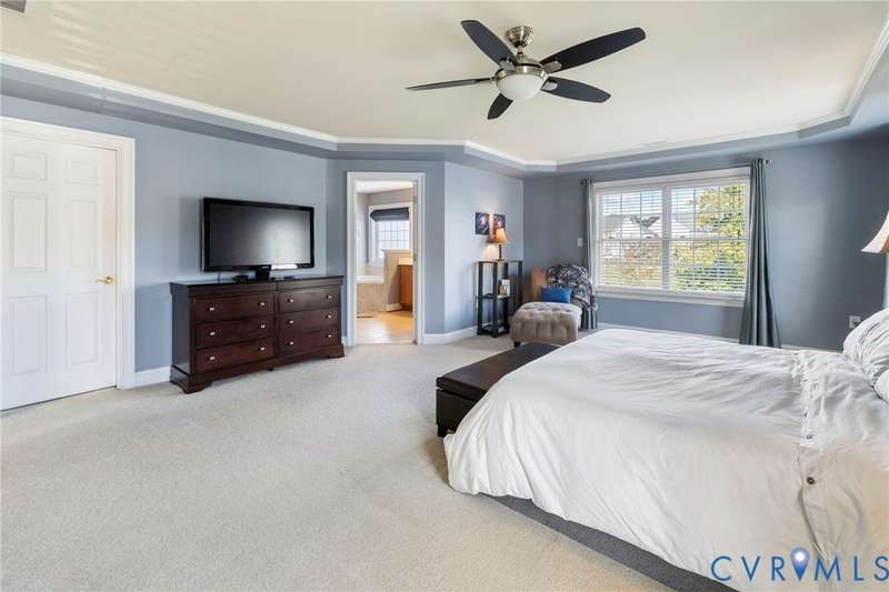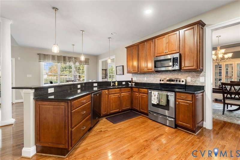 Welcome to The Oaks at Crossridge! This beautiful transitional home offers 5 bedrooms with a possible 6th on the third floor, complete with its own bath, and a total of 3.1 baths. The open floor plan features a family room with a vaulted ceiling and a gas fireplace, open to the eat-in kitchen with granite countertops, stainless steel appliances, and a breakfast bar. Crown molding enhances the welcoming foyer, living room, and dining room, which also features a tray ceiling. The first floor includes a dedicated office and a bright sunroom providing additional flex space. Upstairs are five spacious bedrooms, including a large primary suite with an expansive en-suite bath. The oversized garage offers a pedestrian door and built-in cabinets for extra storage. Outdoor living is easy with a fenced yard, deck, patio with a firepit, and attractive landscaping. Major updates include a new roof (2025) and hot water heater (2020).
