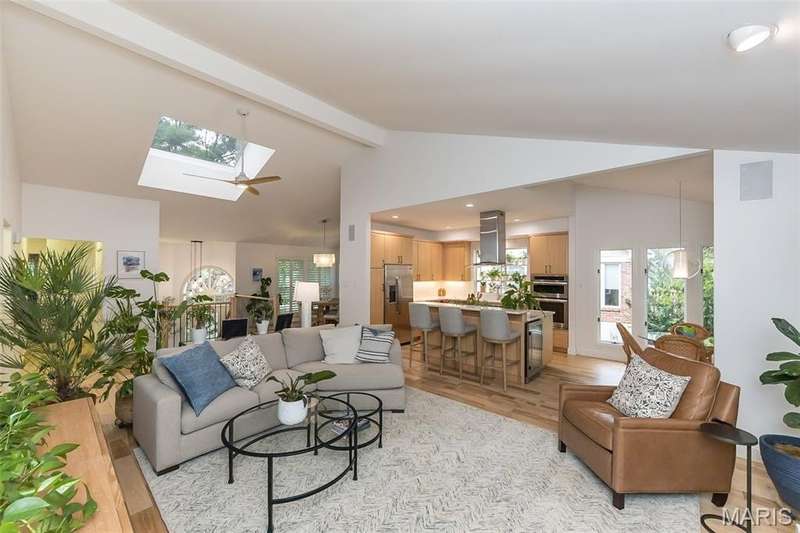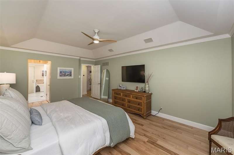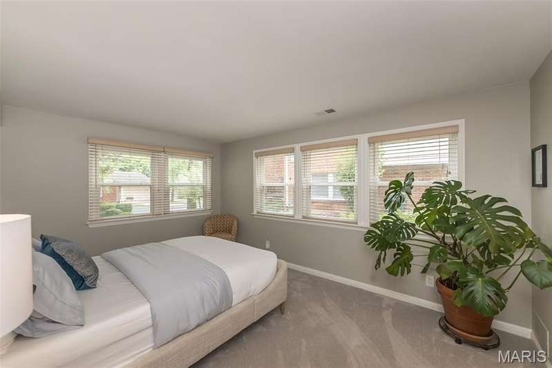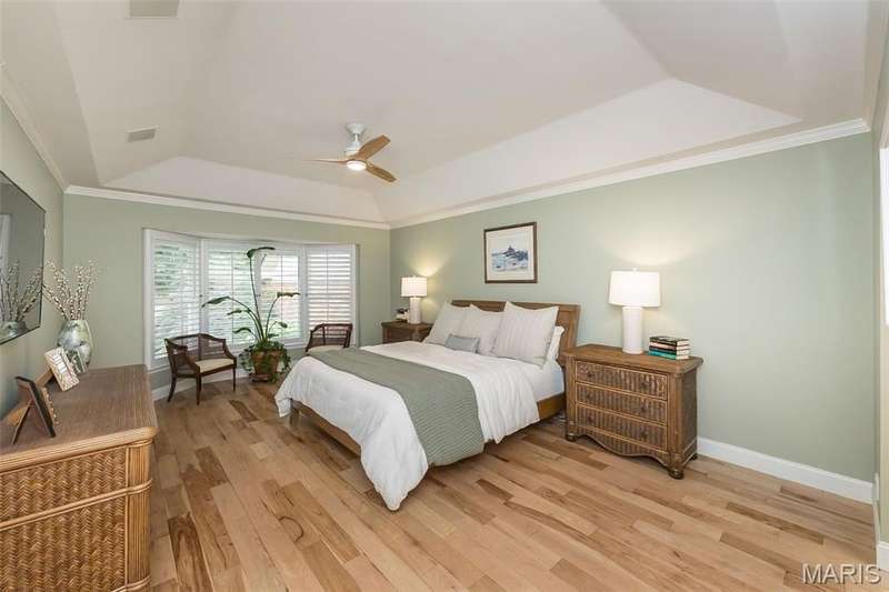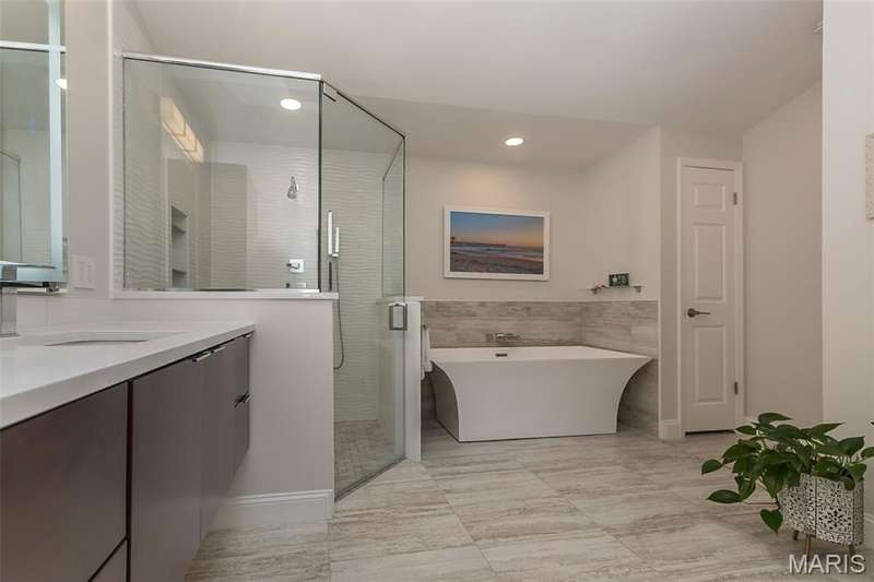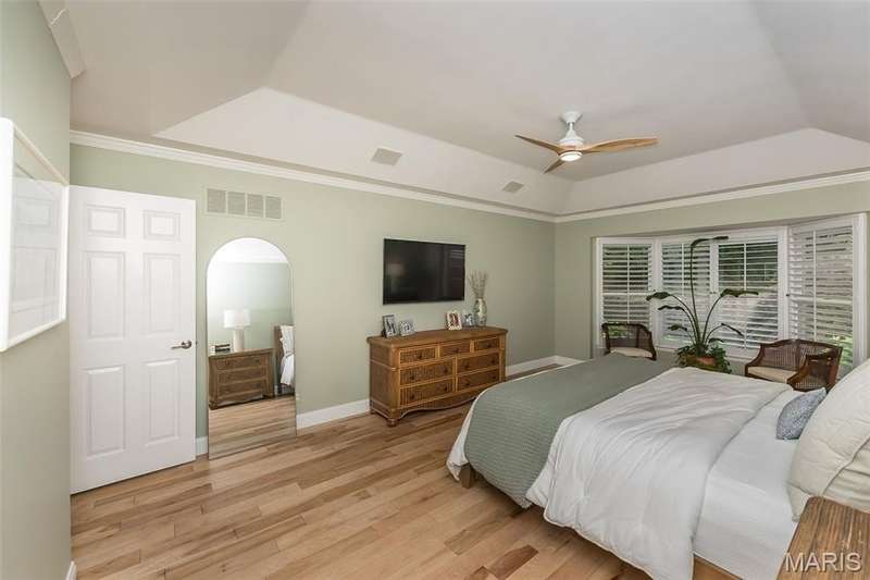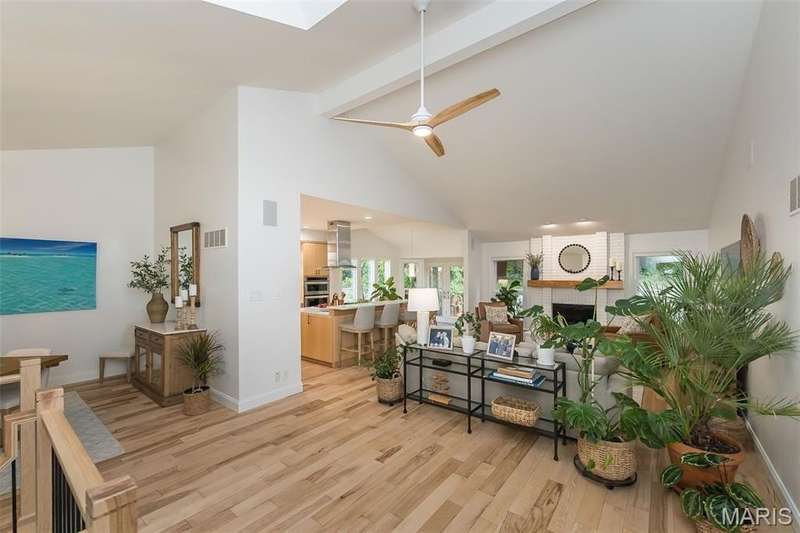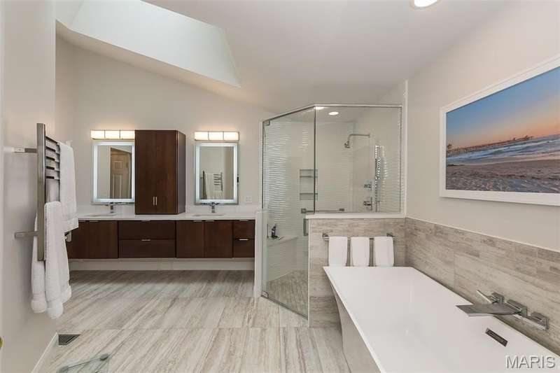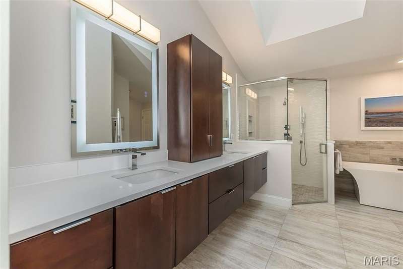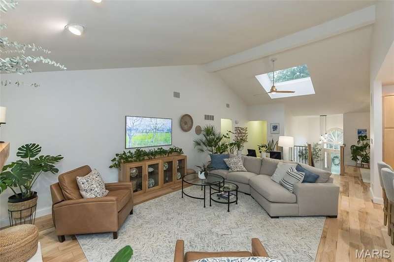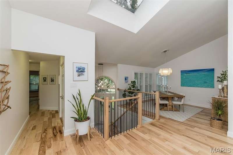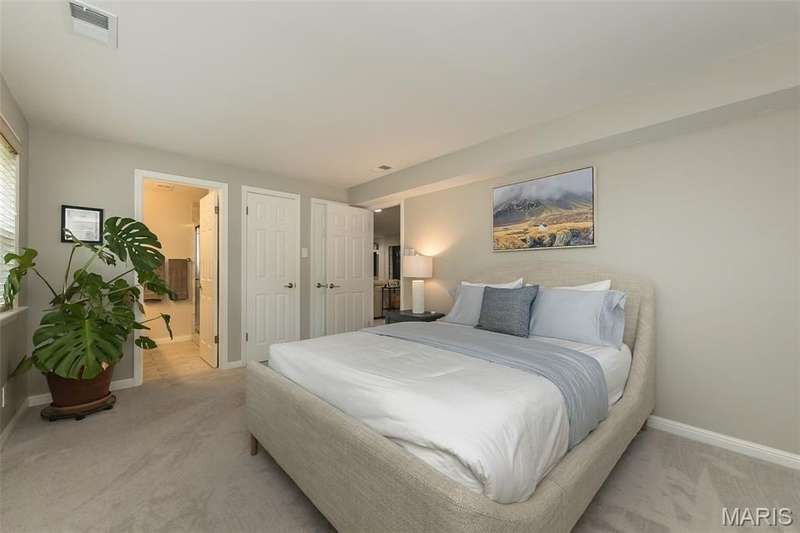 Sophisticated and serene are the watchwords for this beautifully updated 3 bedroom, 3 bath townhome in Chesterfield's sought after Baywood Villages community. The moment you enter the bright foyer, with its soaring ceiling & wrought iron details, you'll know that this condominium is something special. Hardwood floors throughout the main level & lovely skylights give a coastal feel to the spacious, open floorplan. The great room features a gas fireplace & adjoins an open space dining room, perfect for friends & family. The eat-in kitchen boasts custom cabinetry, stainless appliances & sparkling quartz countertops. Surrounded by windows, the breakfast room feels like a jewel box & walks out to the spacious deck, with views of the private backyard & common ground beyond. The main level primary suite features a large bay window & walk-in closet, and the jaw dropping bath rivals any spa, with uplit double vanities, soaking tub, gorgeous glass enclosed shower, towel warmer & soaring ceilings. A second bedroom, updated hall bath and laundry room nearby complete the main level. The above grade LL has large rec room with gas fireplace & lovely built-ins and a cozy alcove. The ensuite third bedroom has multiple windows and a beautifully appointed bath room. A generous bonus room is perfect for home office or workout space, with loads of unfinished space available for storage. Oversized 2 car garage, subdivision pool, tennis, clubhouse & lake make this opportunity irresistible!