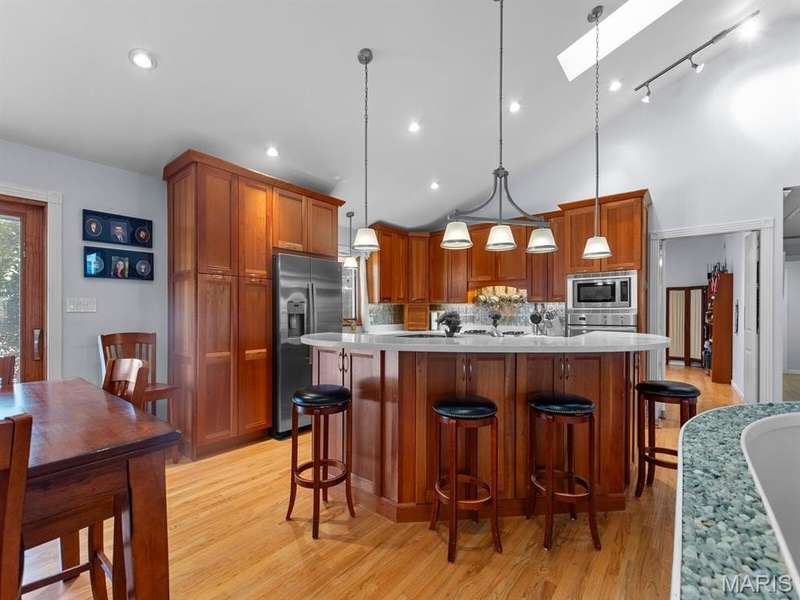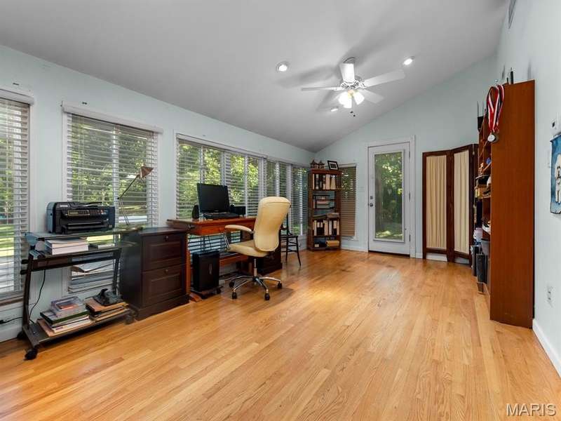 Welcome to 723 Oak Valley in the heart of Des Peres! Located in the Kirkwood School District on a level lot, this ranch was thoughtfully designed to support single level living! Pulling up you'll be greeted by an expansive circle driveway, mature trees, and an inviting front porch. Stepping inside you'll be captivated by the vaulted ceilings, warm hardwood floors, and open living space. The living room flows effortlessly into the custom kitchen with stainless appliances, beautiful cabinetry and a large breakfast bar. It flows into the dining area which is complete with a fireplace. Just off the living room you'll find a large primary suite deemed to be the perfect retreat! The bright bedroom has access to the deck as well as 3 closets, the laundry area, and a primary bath with double vanities, soaking tub, and shower. A bedroom or home office is just off the primary. Down the hall you'll find a large family room flooded with natural light and views of the backyard. A Bedroom Suite across the hall is perfect for guests with a walk in closet and full bathroom as well as a separate half bath. An oversized, attached 2-car garage rounds out the main floor. Downstairs you'll enjoy unlimited potential with a walk out basement and roughed in bathroom. Outside there is a spacious deck overlooking the level lot as well as extra parking with electrical hookup for an RV. Make your appointment today!