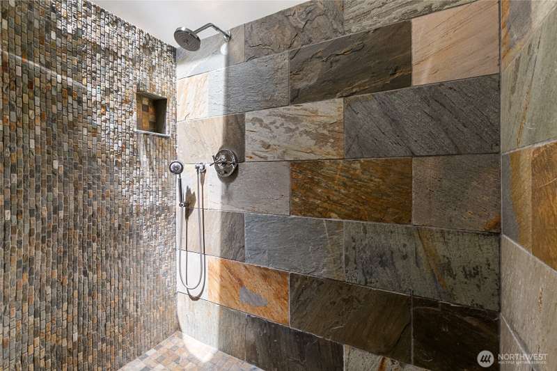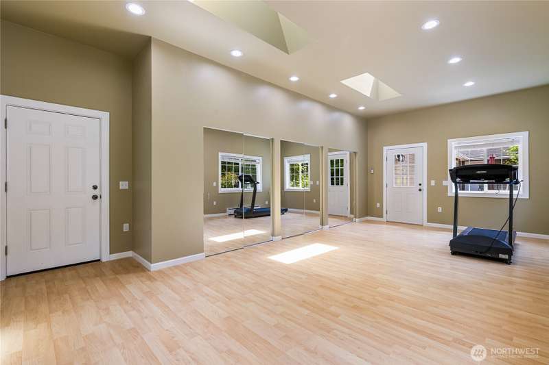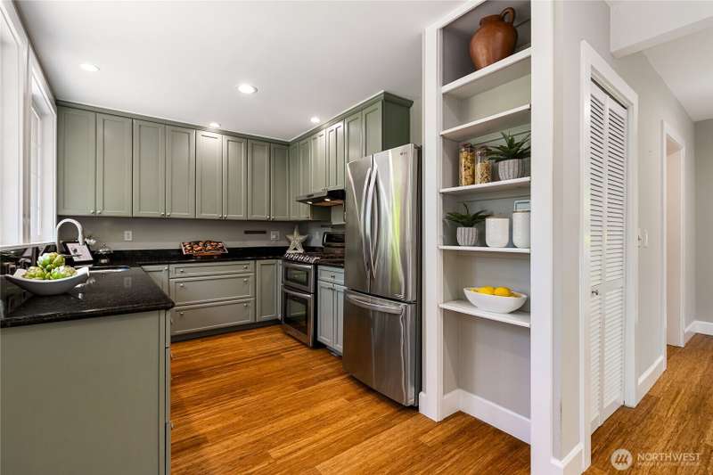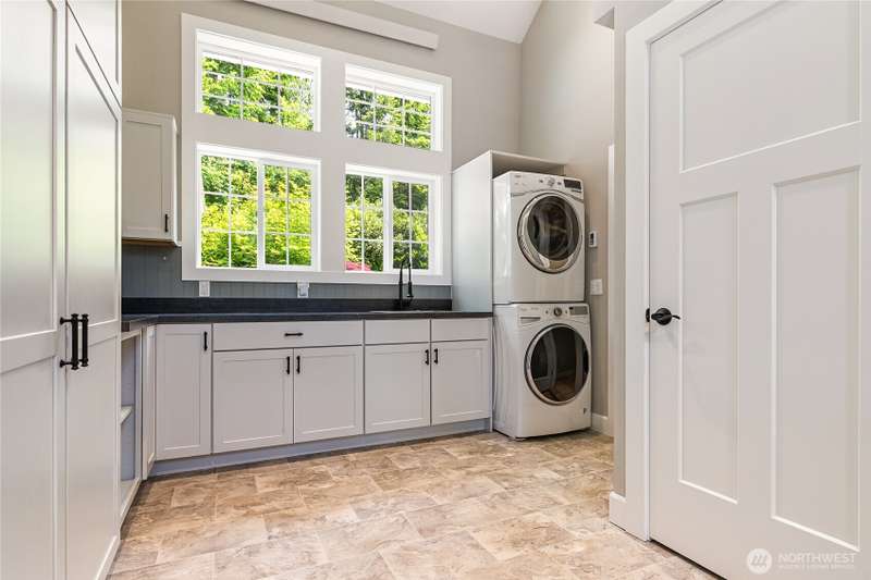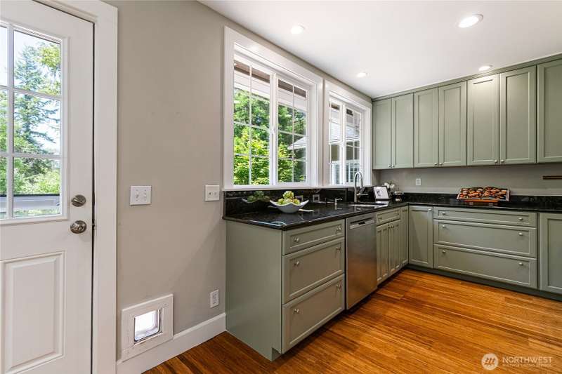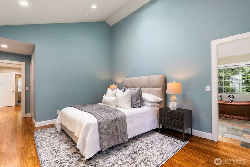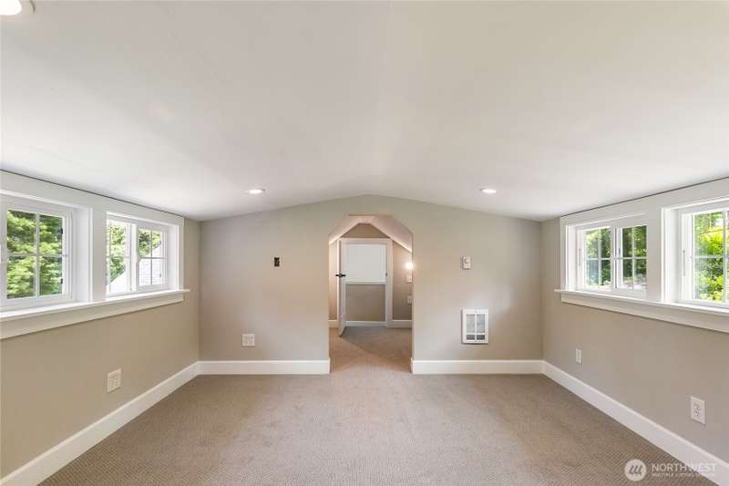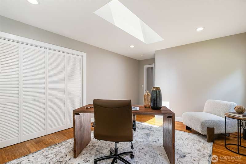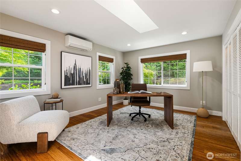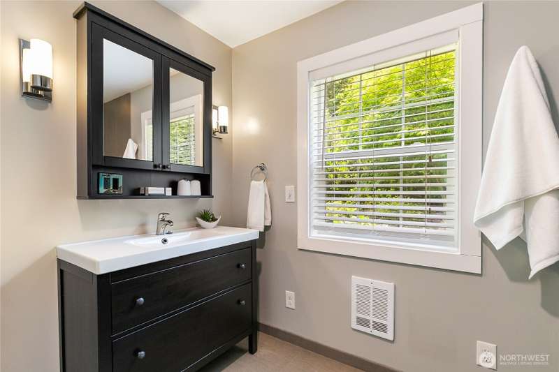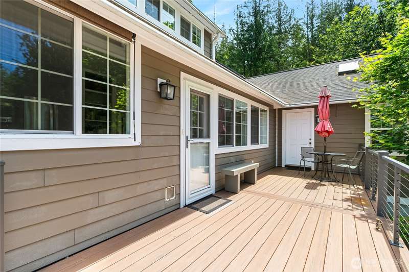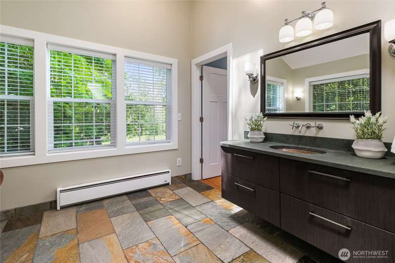 CHUCKANUT! Where cottage charm meets luxury living on a full acre with seasonal saltwater views. Beautifully crafted 3BR/3BA rambler offers a sunny, private setting w/lush landscaping. Major remodels in 2011 & 2018. Great natural lighting with 12 skylights. Features, hardwood flrs, new gas FP in living room & SPA-inspired primary on-suite with copper tub & sink plus a dedicated tankless water heater. Composite deck, NEW patio & greenhouse, pet fence & sprinkler system for rear garden. Oversized 2-car garage with 375 SF bonus room—ideal for ADU conversion with private entrance. Finished upper level (not in SF) makes a great office, guest room. Eligible for Chuckanut Beach Association—5 private beaches! Steps to Interurban Trail.