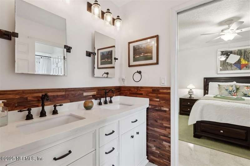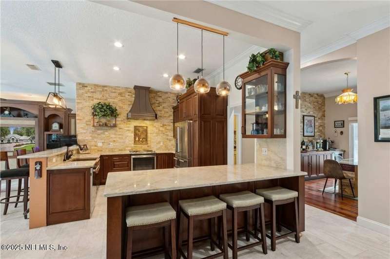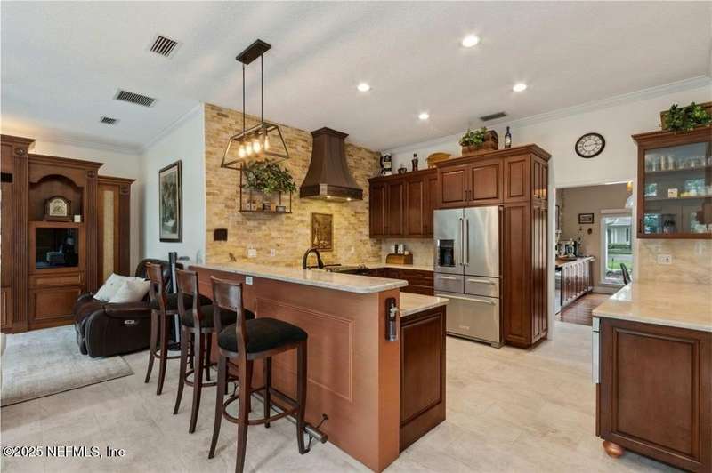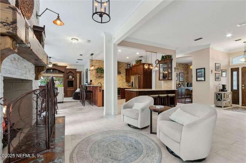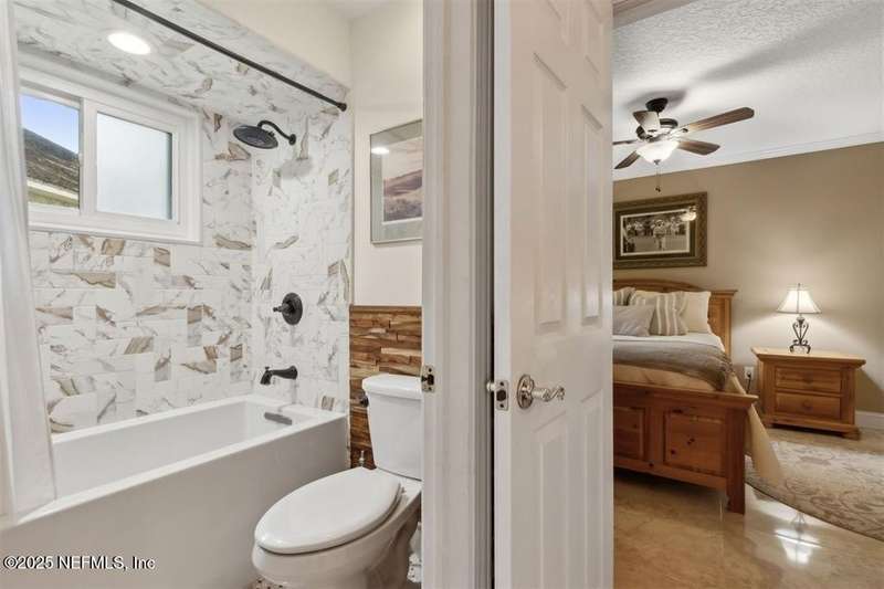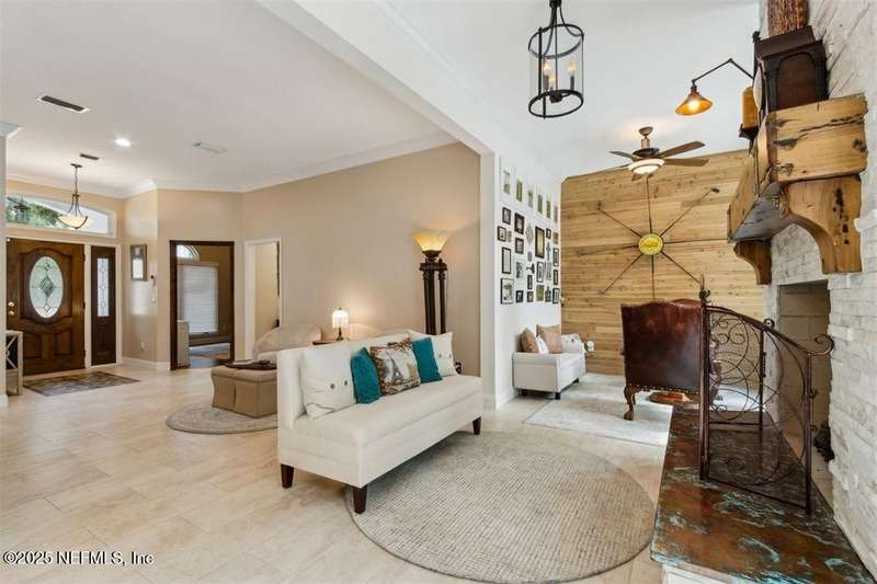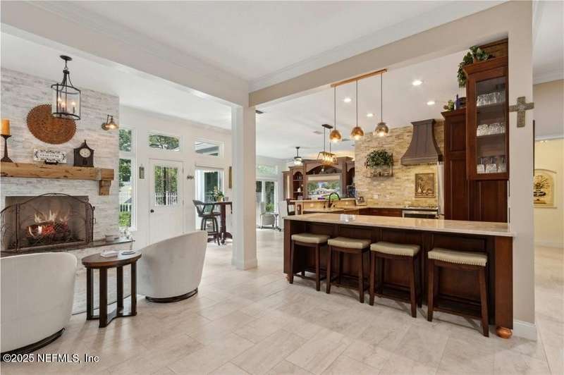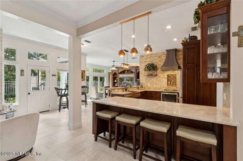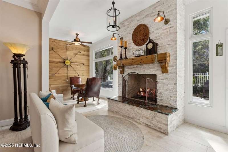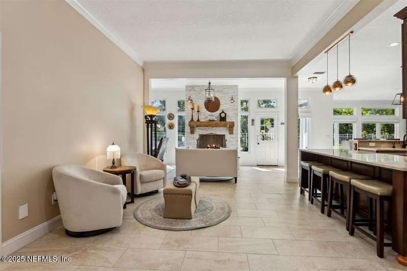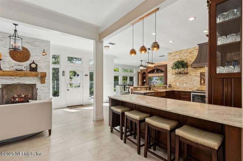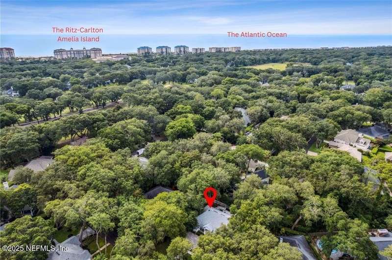 Where coastal elegance meets effortless island living. This beautifully reimagined 4BR/3BA home in Golfside South boasts over $500K in owner improvements, blending modern upgrades with timeless design. Enjoy 2,599 sq ft of comfort overlooking the #4 fairway, just steps from the beach and Ritz-Carlton. Renovated 2019-2025, upgrades include a new roof, impact windows, HVAC, appliances, water heater, travertine patio, and a 300+ sq ft addition. The designer kitchen features Taj Mahal quartzite counters, Bosch drawer microwave, hidden pantry, and smart oven. The primary suite offers dual walk-ins, copper sinks, jetted tub, and marble shower. Highlights include a pub room with built-in bar, limestone fireplace, and crown molding. Set in a gated community with a resort-style pool, this move-in ready home combines coastal comfort, luxury upgrades, and island convenience.