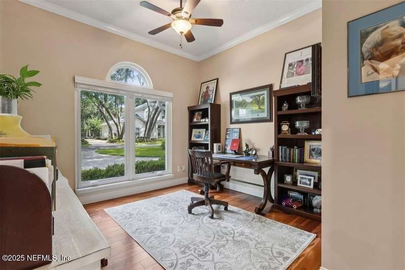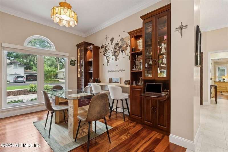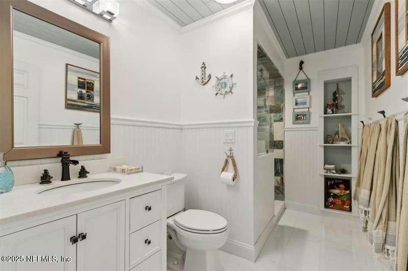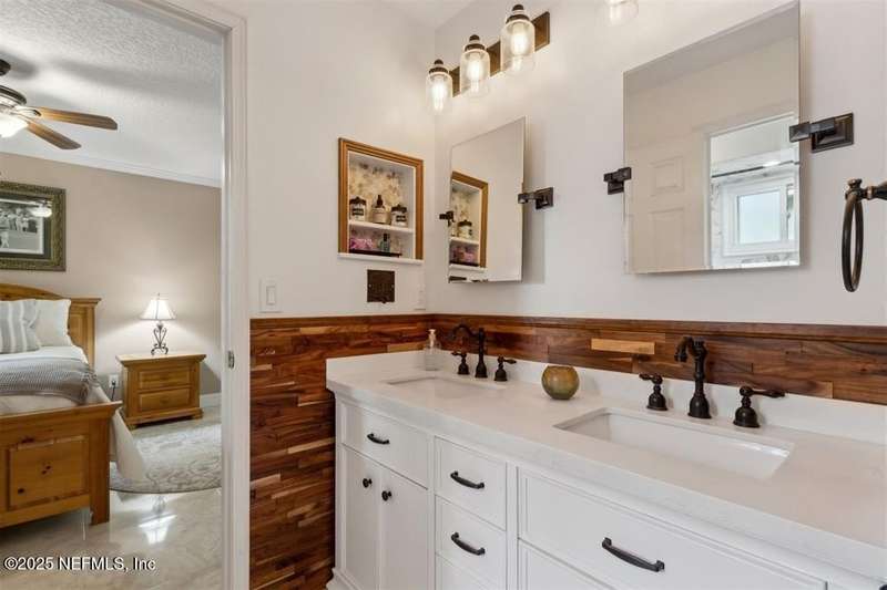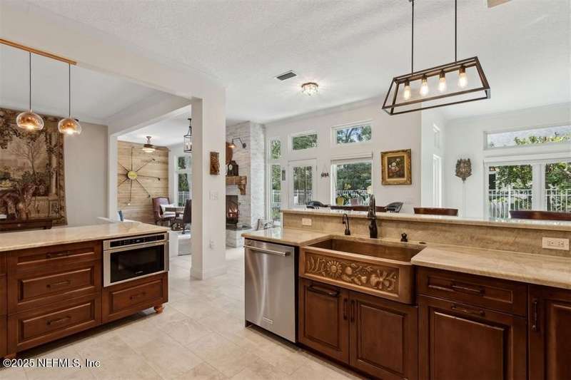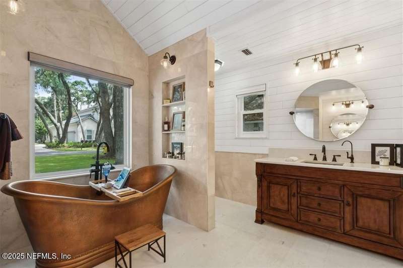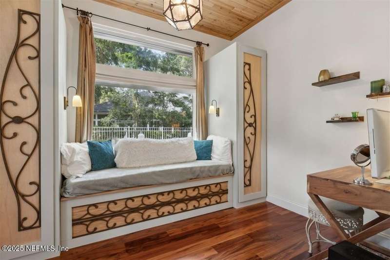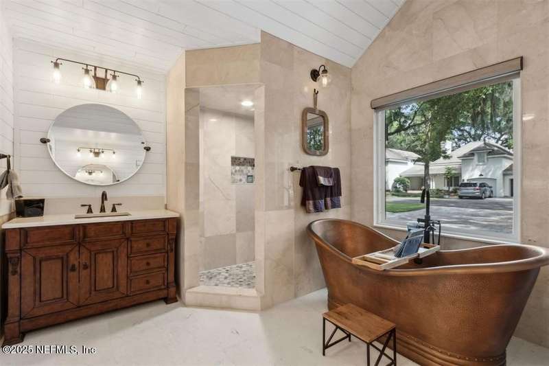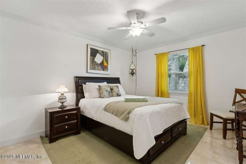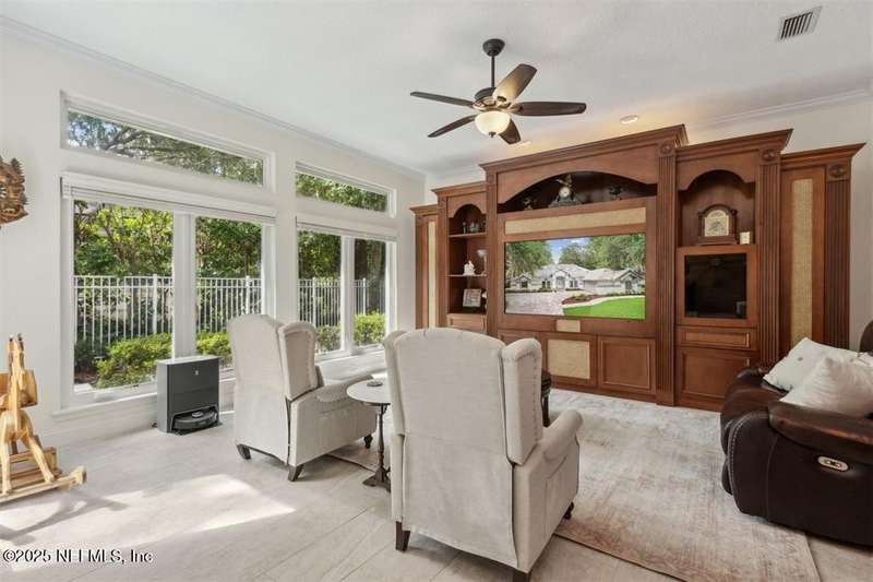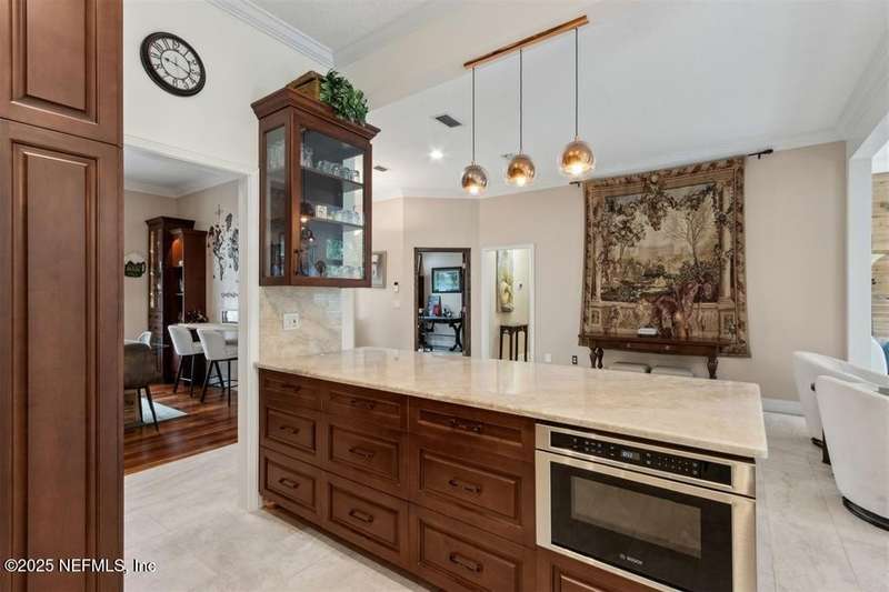 Where coastal elegance meets effortless island living. This beautifully reimagined 4BR/3BA home in Golfside South boasts over $500K in owner improvements, blending modern upgrades with timeless design. Enjoy 2,599 sq ft of comfort overlooking the #4 fairway, just steps from the beach and Ritz-Carlton. Renovated 2019-2025, upgrades include a new roof, impact windows, HVAC, appliances, water heater, travertine patio, and a 300+ sq ft addition. The designer kitchen features Taj Mahal quartzite counters, Bosch drawer microwave, hidden pantry, and smart oven. The primary suite offers dual walk-ins, copper sinks, jetted tub, and marble shower. Highlights include a pub room with built-in bar, limestone fireplace, and crown molding. Set in a gated community with a resort-style pool, this move-in ready home combines coastal comfort, luxury upgrades, and island convenience.