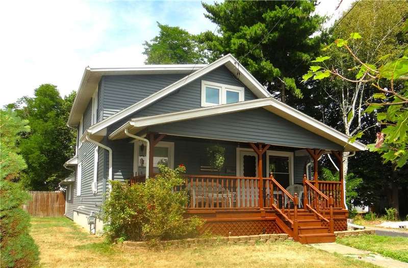 Adorable bungalow with modern updates! Charming and move-in ready, this great home offers the perfect blend of classic character and modern comfort. Featuring newer vinyl siding, a new roof, and some updated vinyl windows, the exterior is low-maintenance and shines with great curb appeal. Inside you will find a new hot water heater, hardwood floors, first-floor bedroom, and the convenience of first-floor laundry. The second floor has been completely remodeled and has all new paint & carpeting, providing fresh, stylish living space. Relax on the wonderful freshly painted covered front porch with new steps or enjoy the back deck and nice yard perfect for gardening, play, or entertaining. An attached 1-car garage completes this sweet package. This home is ready for its next chapter. Look, LOVE, Live!