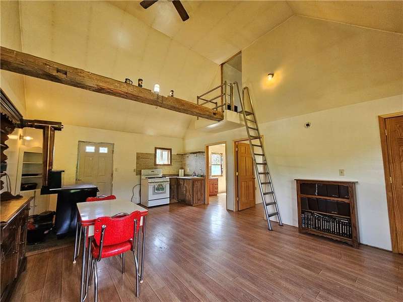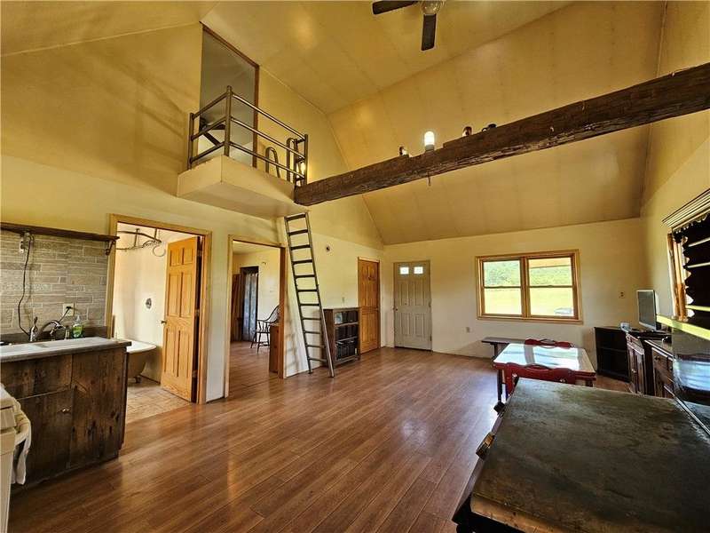 Situated in the scenic hills of Troupsburg, this property offers plenty of views and endless seclusion! Head into the charming cabin that offers a cozy yet functional living space. The open-concept design integrates the living room, dining area, and kitchen, maximizing the use of space. A wood-burning stove serves as a focal point and heat source. The main floor bedroom is a great place to retire after a long day. The full bathroom includes laundry and plenty of storage. Plenty of windows throughout provide ample natural light and views of the surrounding area. The loft room can double as an additional bedroom or a flex room granting more livable space. The full unfinished basement is also a blank slate to finish as you see fit! The cabin boasts plenty of updates to the utilities, leaving you with the opportunity come and put your personal touches on it! Outside, take in everything that the 84.27 +- acres has to offer! Access the entire property with a well-maintained road. The property has a blend of tillable fields and wooded area, making it perfect for anything you see fit! Located in an area known for having a healthy population of large and small game. A small barn with pasture area provides a perfect startup for a hobby farm. All fencing, gates, and implements convey with property. An open sided, pole barn gives additional covered storage and could be finished into a garage or workshop. Don't miss your opportunity to own this secluded property and find your peace and quiet!