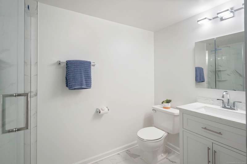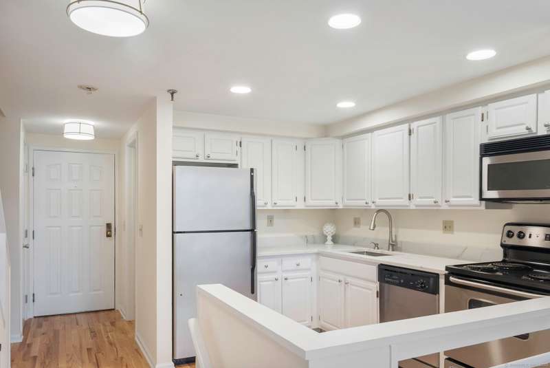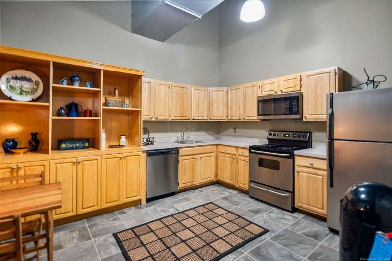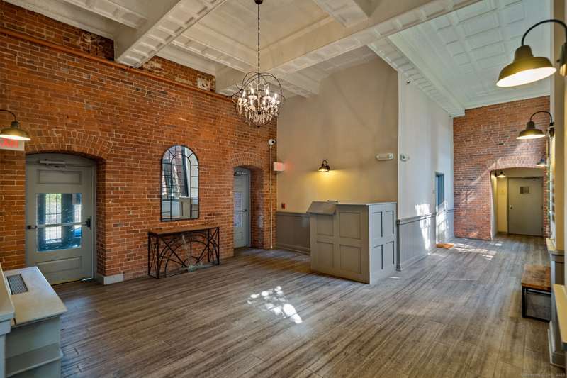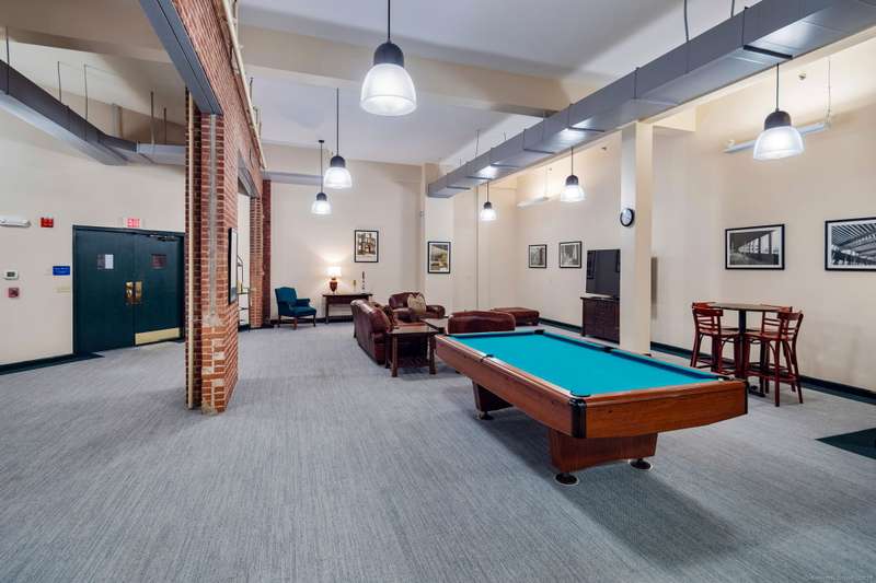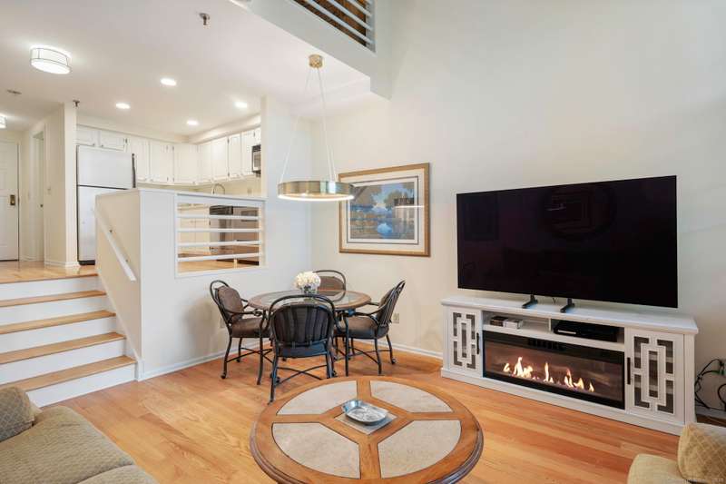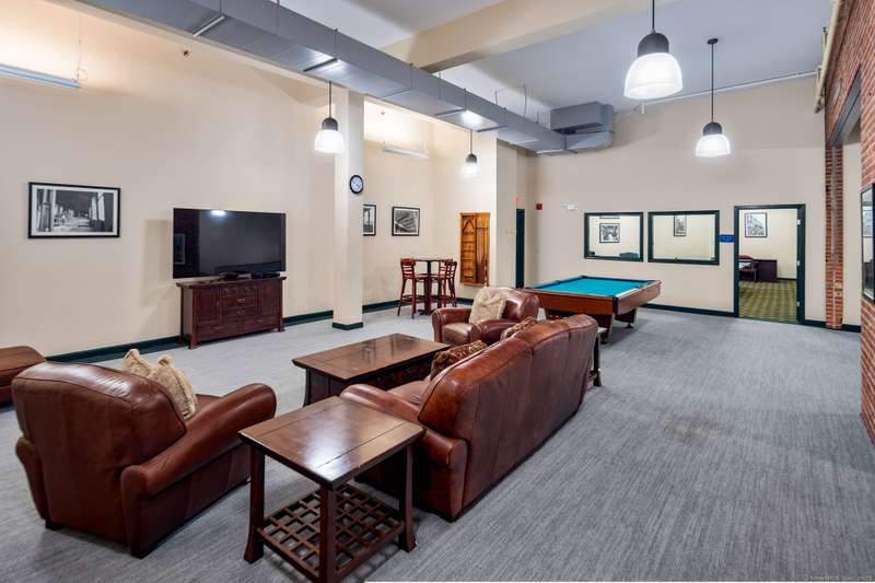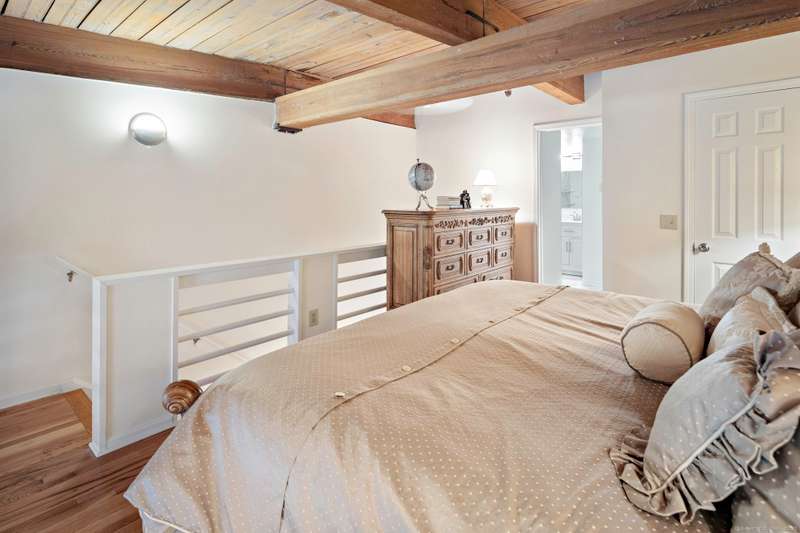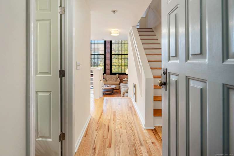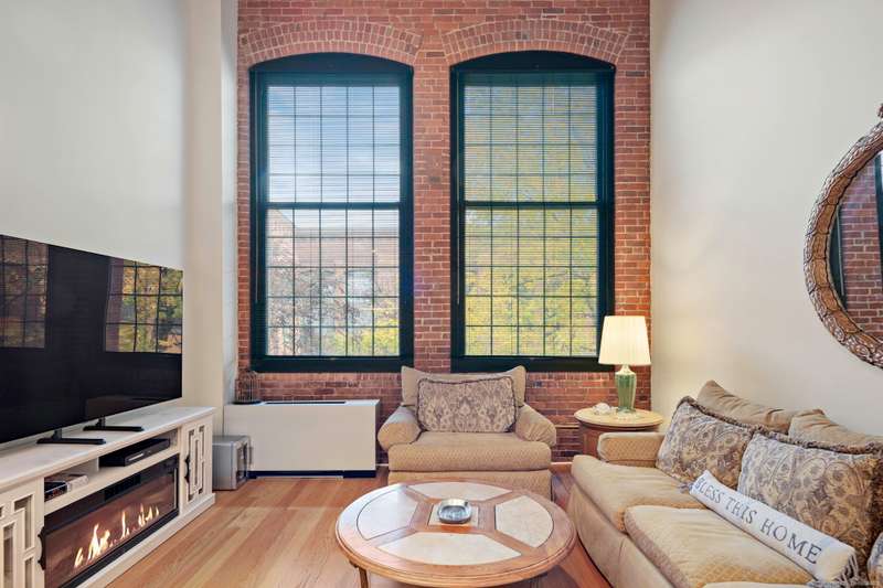 Clocktower Close: where modern sophistication meets industrial heritage. This stunning Manhattan-style loft offers 1 bedroom, 1.5 baths, and 825 sq ft of open-concept living with soaring 20-ft ceilings, exposed brick, wood beams, hardwood floors, and dramatic two-story windows that fill the home with natural light. Enjoy a spacious newly renovated kitchen with ample counter space, a sunken living room with top floor views overlooking the landscaped courtyard, and an open loft bedroom with walk-in closet and updated ensuite bathroom. Every detail has been curated to balance modern comfort with the building's 1903 historic charm and personality (once a hat factory). Community amenities include off-street and garage parking, fitness center with sauna, laundry, dog walk, outdoor picnic areas, spacious game room w TV, business lounge, kitchen, and storage. Prime Norwalk location close to I-95, Merritt Pkwy, Rt. 7, Metro-North, beaches, shopping, dining, and SoNo nightlife. Come experience t
