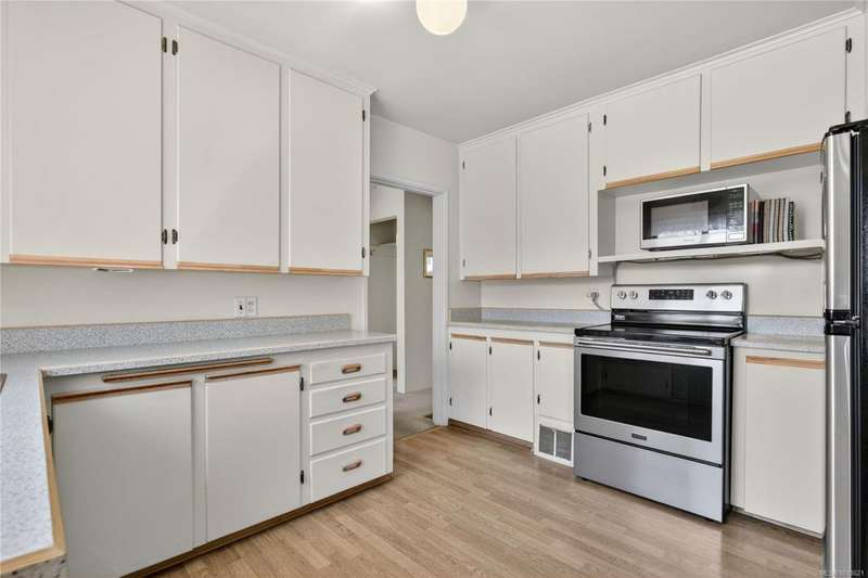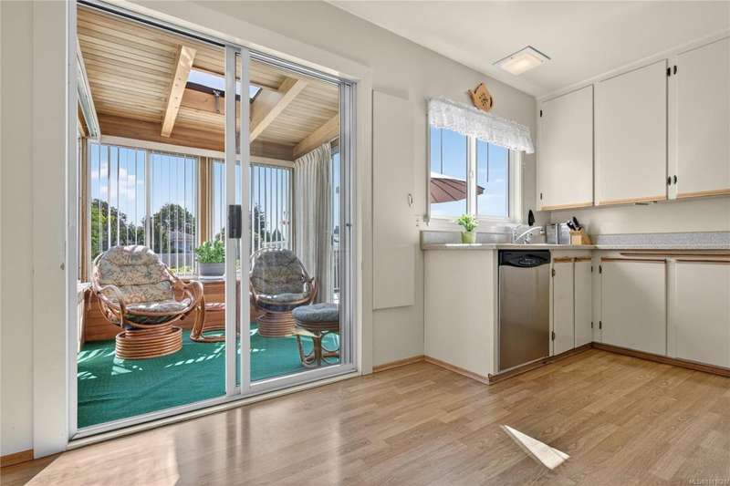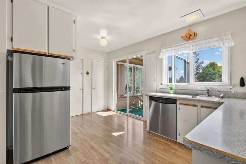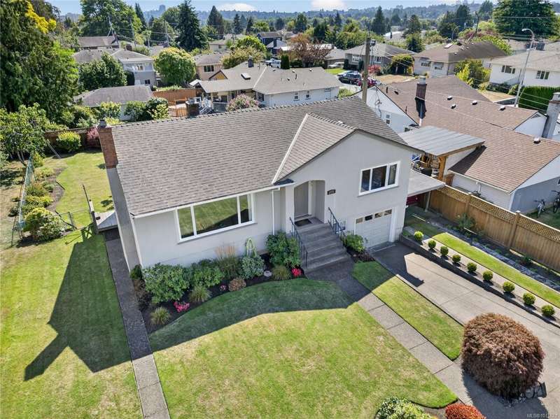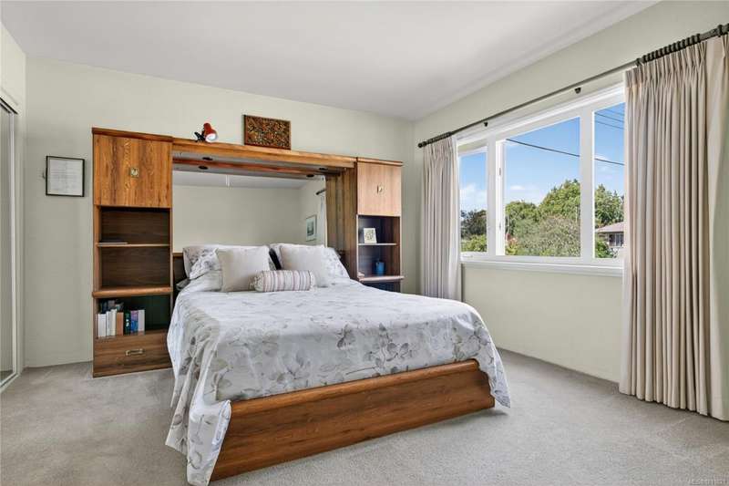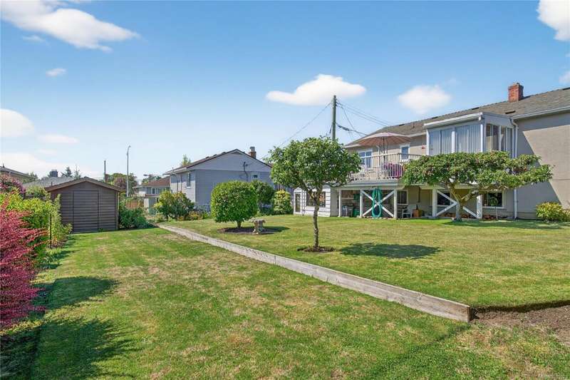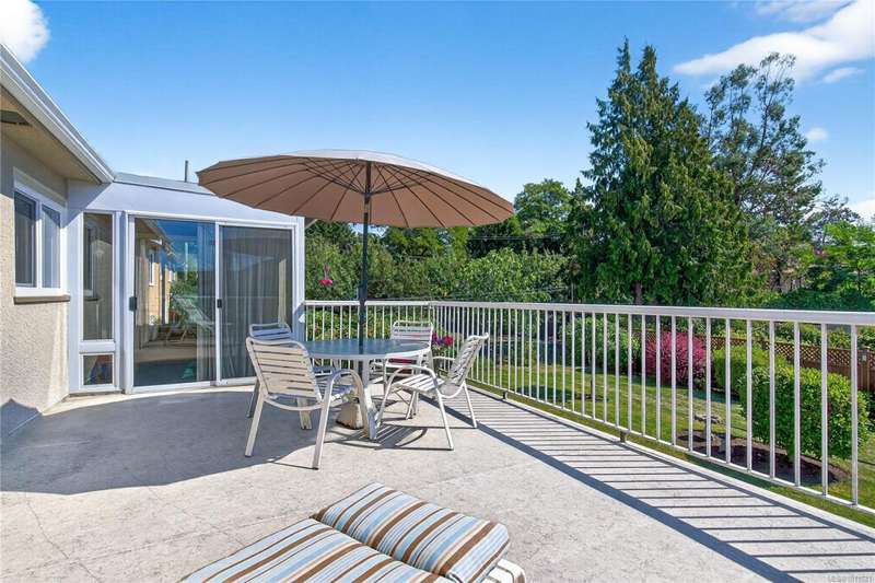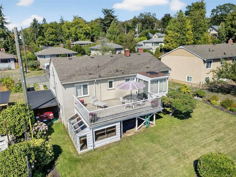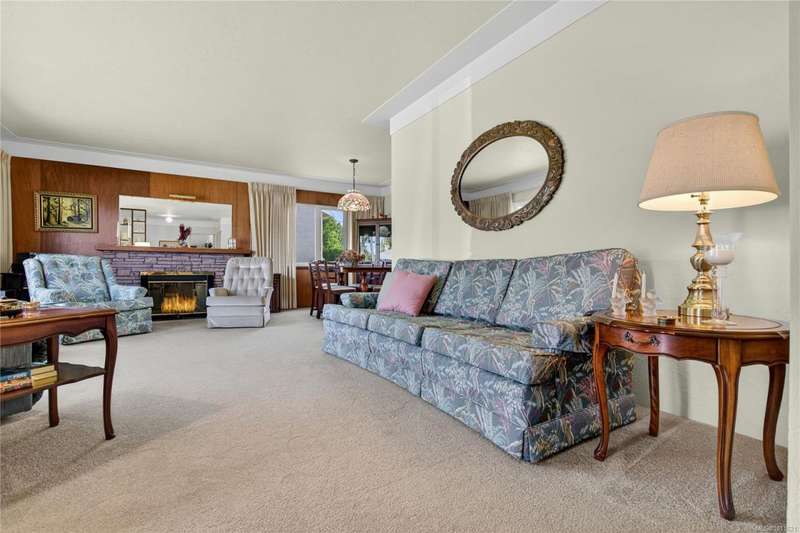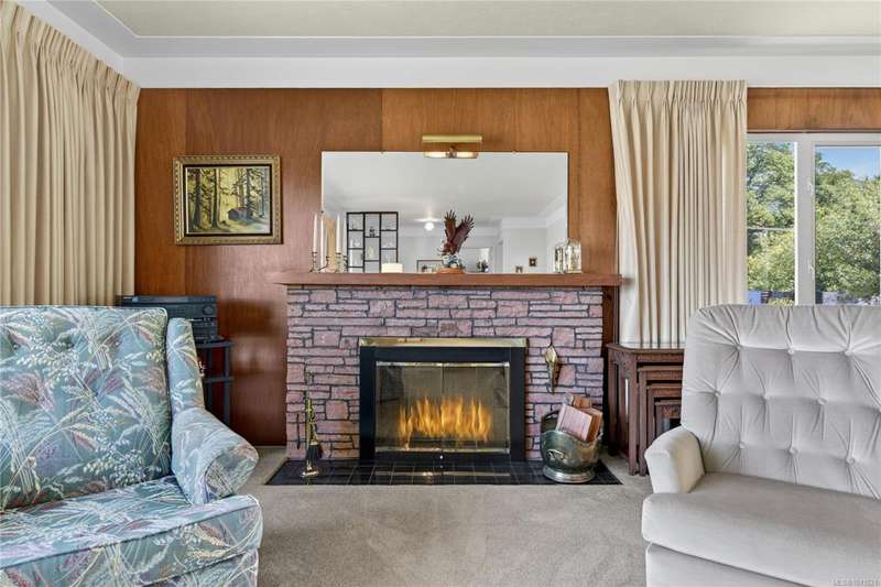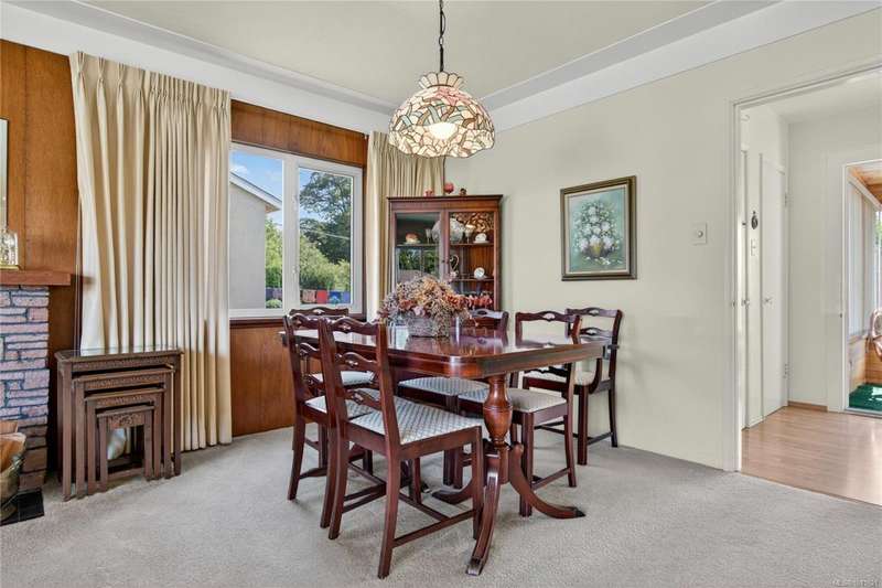 Nestled just steps from St. Michael's University School in the sought-after Camosun neighbourhood of Saanich East, is this lovingly maintained mid-century home that has been cherished by the same family since its construction in 1954. Set on a beautifully manicured, level lot, the home exudes timeless character and comfort. Inside you will find a spacious formal living room featuring the original wood burning fireplace, an adjoining dining room that flows seamlessly into a bright kitchen, leading out through a cozy sunroom to a generous sized south-facing deck, ideal for entertaining. The main floor offers two generous bedrooms and a full bathroom. A third bedroom, recreation room, second bathroom, and laundry area complete the lower level. The exterior of the property includes a garden shed, automated sprinkler system, and an attached greenhouse, perfect for that someone with a green thumb. This amazing home is ready to welcome a new family to create their own lasting memories.