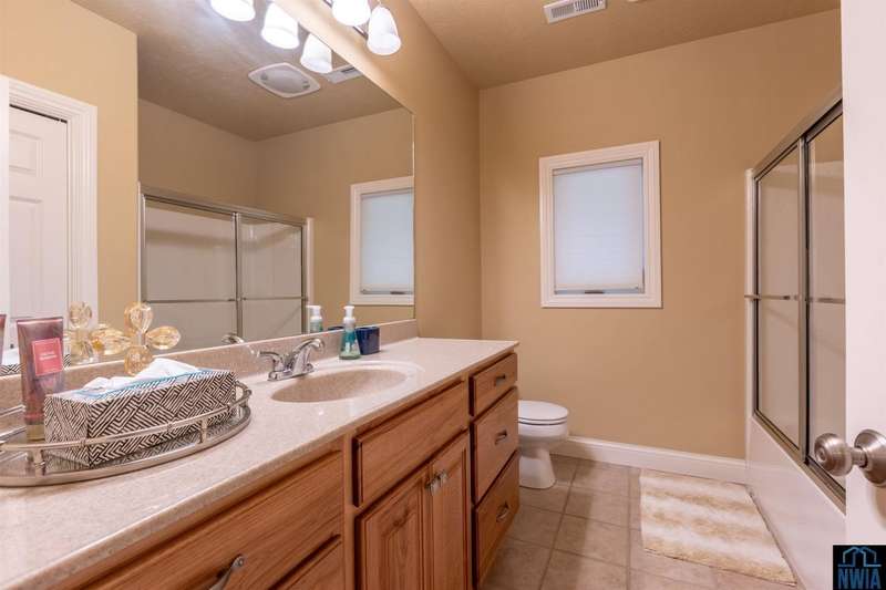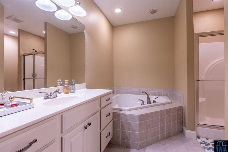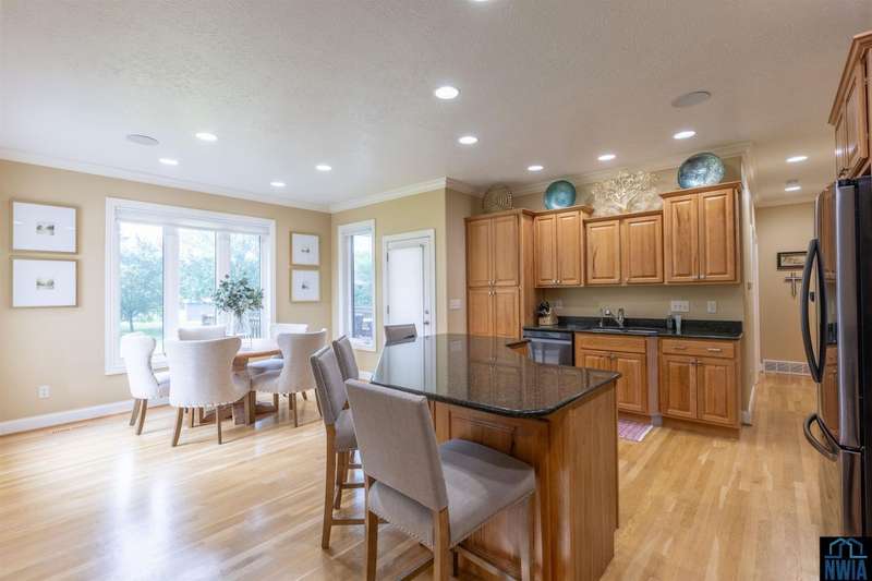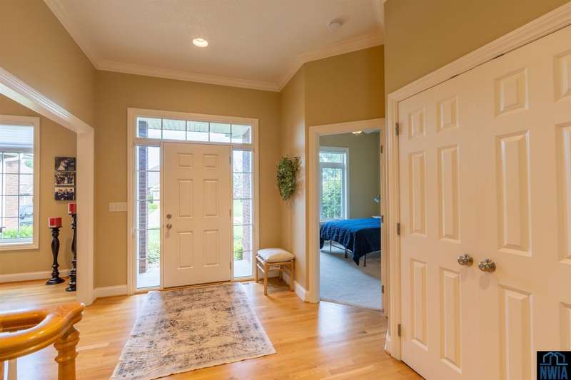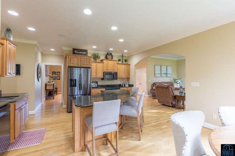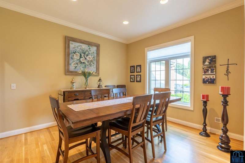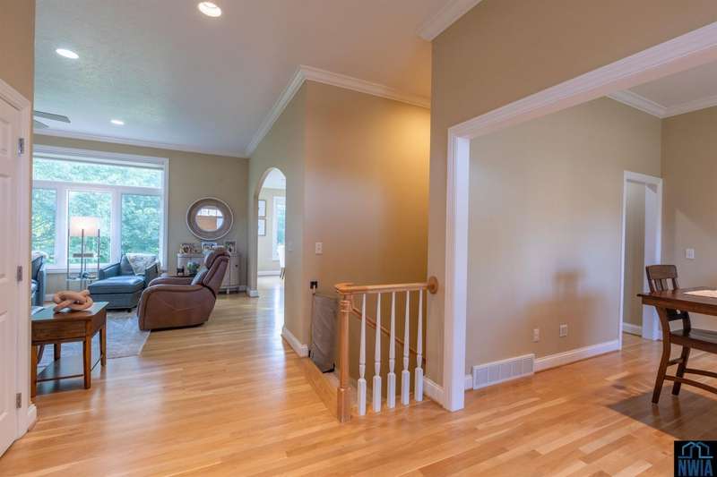 Fantastic custom built ranch home situated on a spectacular lot in the meadows. This 4 bedroom 4 bath home features a rare walkout lower level that leads directly to the meadows park! The spacious main level has high volume ceilings, hardwood floors, and tons of natural light. The eat in kitchen features custom hickory cabinets, Cambria quartz countertops, newer dishwasher and fridge, walk in pantry and access to the deck. The large master suite boasts a full bath, dual vanities, walk in closet, and a door to the deck. Formal living room is open to the kitchen with cozy gas fireplace and large windows with great views. Main level also features an additional bedroom with an attached full bath, formal dining area, conveniently located half bath for guests, and a main floor laundry. The fully finished lower level has two huge bedrooms, full bath, ample storage space, and a large family room that walks out to the patio and backyard setting. Outside entertaining space is great with a large recently replaced, no maintenance composite deck with steps, a lower level patio, and a park in your own backyard! Additional amenities include an oversized 3 stall garage, nicely landscaped yard, and a new AC unit. This home is move in ready so Dont Delay!