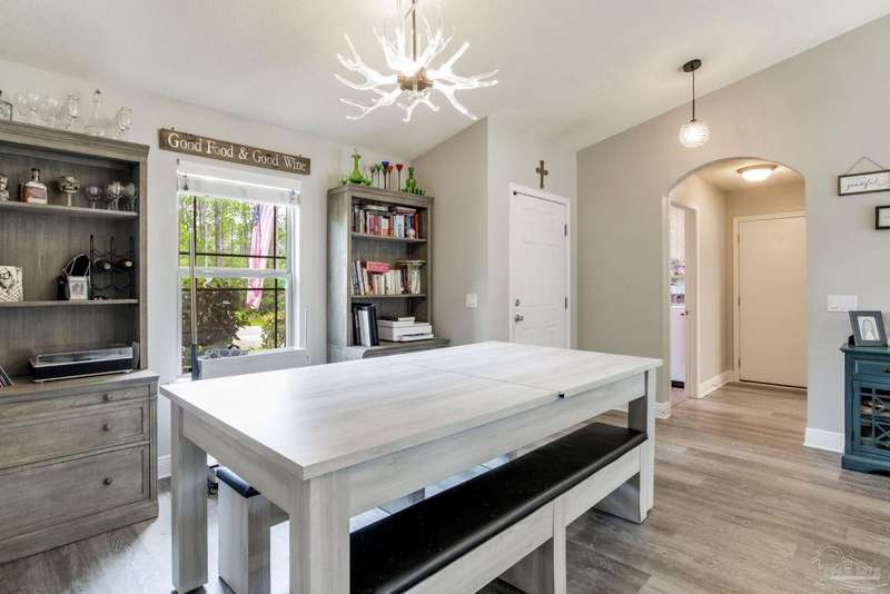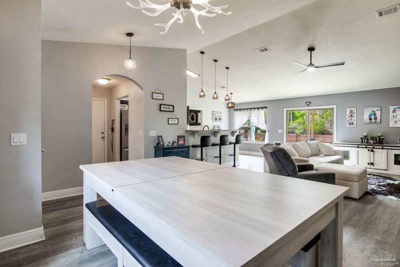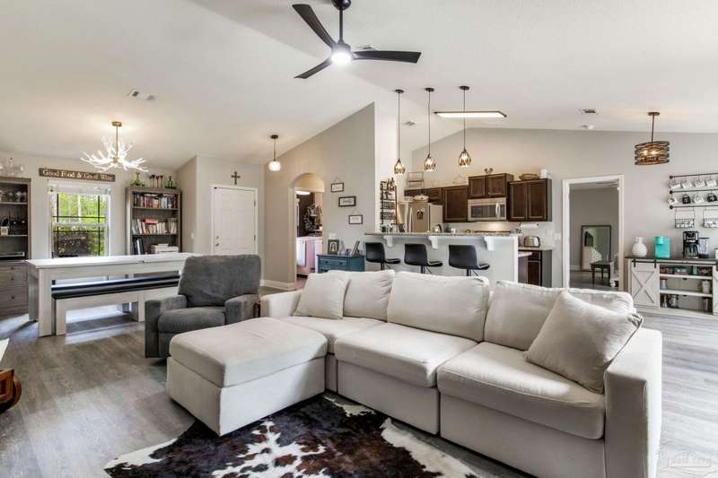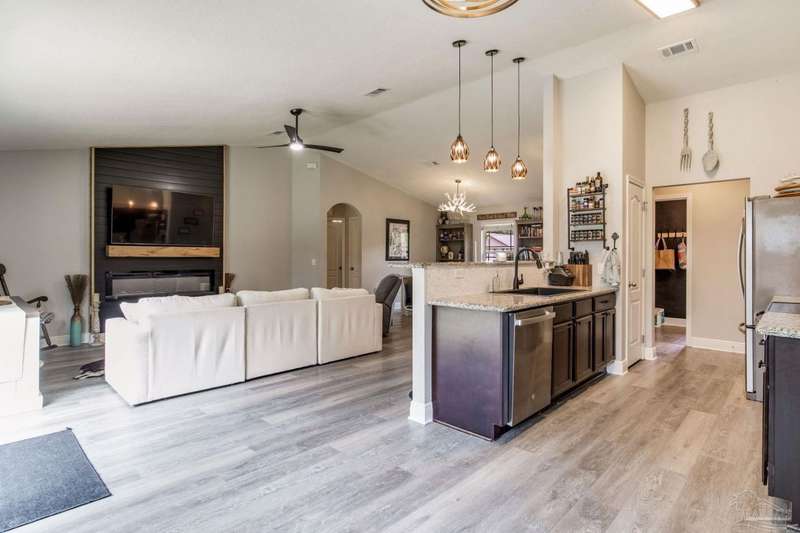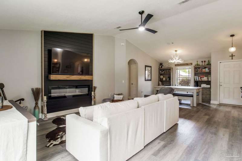 Welcome to 6629 Bluefish Rd! This well-maintained home offers a functional 3-bedroom, 2-bath split floor plan with an open-concept layout, perfect for both everyday living and entertaining. Recent upgrades include a new roof, water heater, Rain Bird irrigation system, custom fireplace, and shed. The fully fenced backyard provides the ideal space for pets, kids, or outdoor relaxation. Located in the sought-after Holley by the Sea community, you'll enjoy access to top-notch amenities including pools, tennis courts, fitness center, clubhouse, playgrounds, and private waterfront access on Santa Rosa Sound. Close to schools, shopping, beaches, and Hurlburt Field-this home is move-in ready and offers a great combination of comfort, location, and lifestyle. Schedule your private showing today!