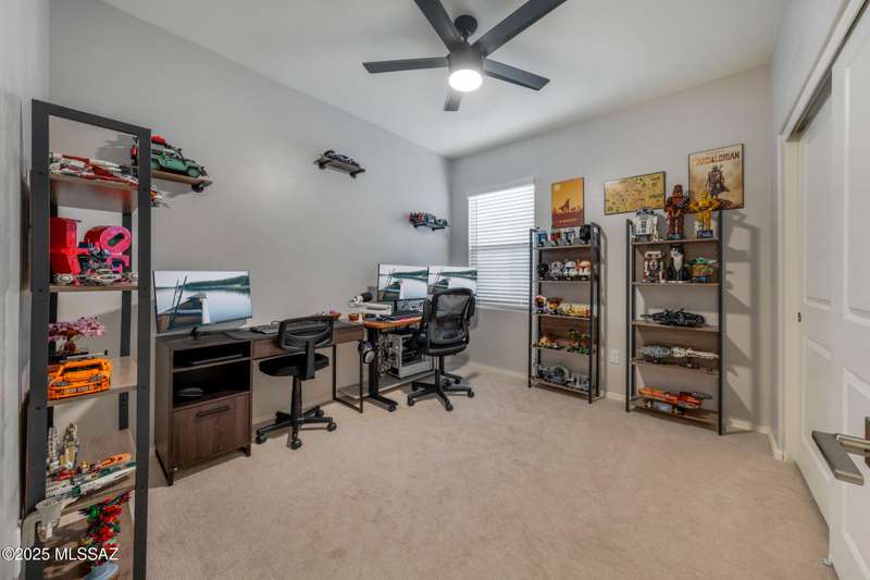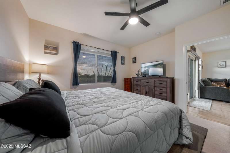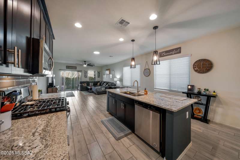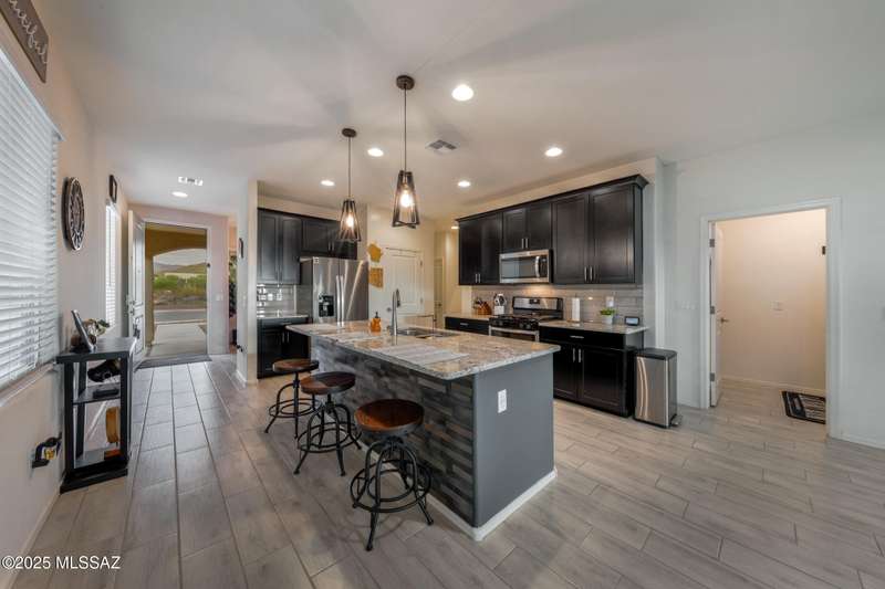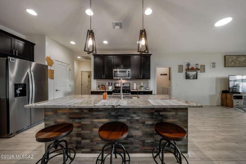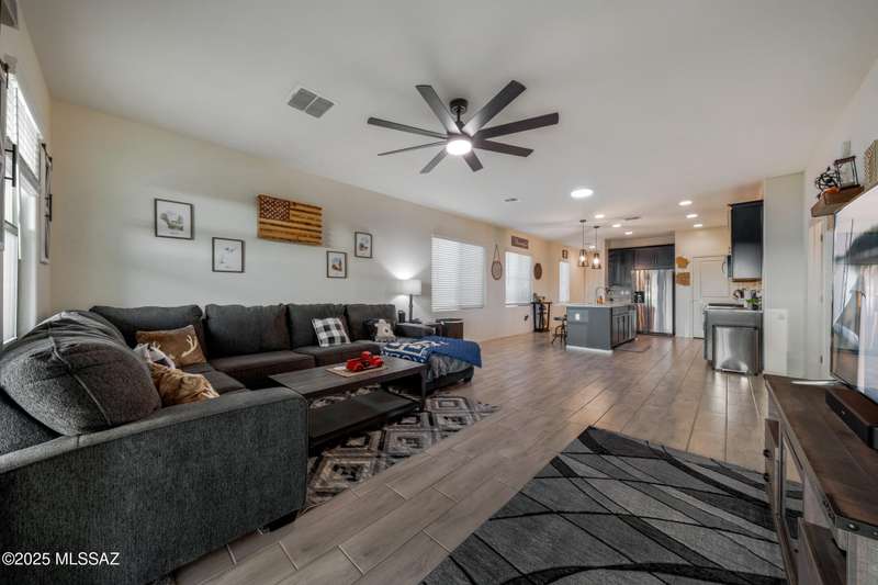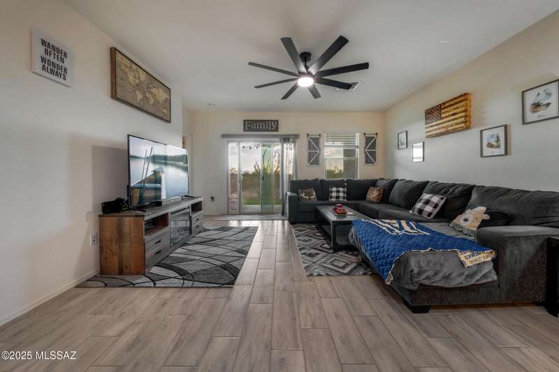 Breathtaking golf course and mountain views set the stage for this 2020-built home, offering modern comfort without the wait. The open split-bedroom floorplan is designed for both everyday living and entertaining, with a spacious family room flowing into the dining area and a contemporary kitchen featuring granite countertops and a breakfast bar island. Relax on the back patio with no neighbors behind you and enjoy the views.Fresh white walls, neutral carpet, and tile plank flooring provide a versatile backdrop for your personal style. The primary suite includes a walk-in closet, while additional highlights include a formal living room, laundry room off the kitchen, and an epoxy-coated garage floor.Tesla solar panels complete this exceptional home. Your next chapter starts here!