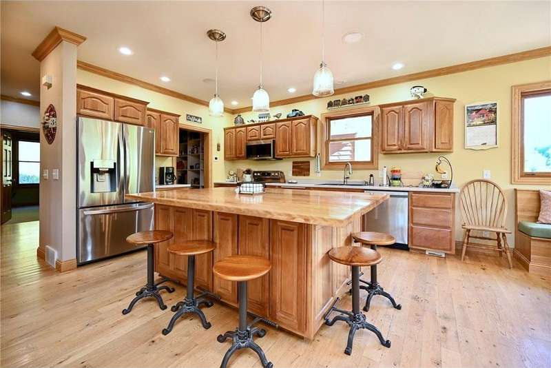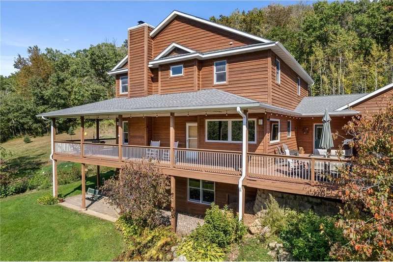 Wow! Beautiful Cedar House on the Hill with stunning views and amazing sunsets. Custom built 5 bedroom, 4 bath home on 9+ acres of serenity and only 10-12 minutes from Winona. Extremely well thought out open floor plan with amenities galore! Not limited to: lower level in-floor heat, surround sound speakers throughout (inside and out), 9-foot ceilings, 10' wrap around porch on four sides of the home, cherry cabinets, custom trim, crown molding, 4" rustic red oak floors, center island w/reclaimed Lake Superior birch, HEPA allergen filtration, humidifier and in ground sprinklers. All bedrooms are generously sized with great storage. A very large family room completes the lower level. A 17.6 kWh solar array connected to MiEnergy significantly reduces energy costs all year. The 3-car garage includes a 100 amp circuit to support a level 2 EV charger. The yard is surrounded with an underground electric dog fence. All this plus a 60x30 heated garage/shed to use as you wish! (Presently a pickleball/basketball court).