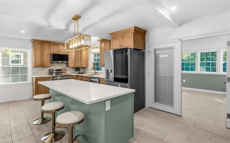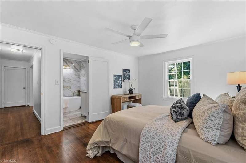 Discover timeless elegance and modern comfort in this fully renovated Emerywood gem. This 5-bed, 3.5-bath home offers over 3,400 sq ft of reimagined living space blending 1950s character with thoughtful modern updates. Original hardwoods fill the main level, where natural light highlights spacious living and dining areas. The designer kitchen features quartz countertops, gold fixtures, a sage-green island, natural wood cabinetry, and a coffee and wine bar opening to a bright four-season sunroom. The main-level primary suite includes a soaking tub, tiled shower, and double vanity. Upstairs offers three bedrooms, a full bath, and a versatile loft, while the finished basement adds a fifth bedroom, wet bar, full bath, and flexible living space perfect for guests or entertaining.