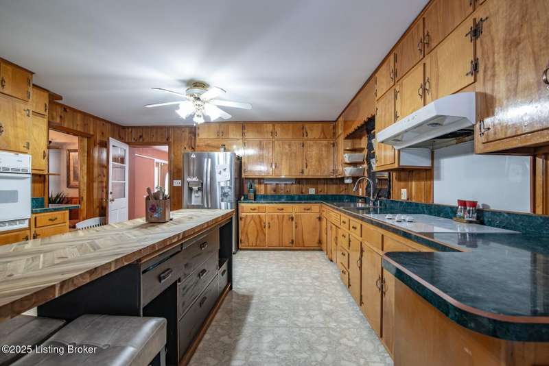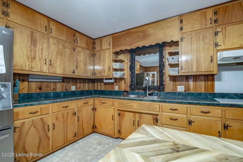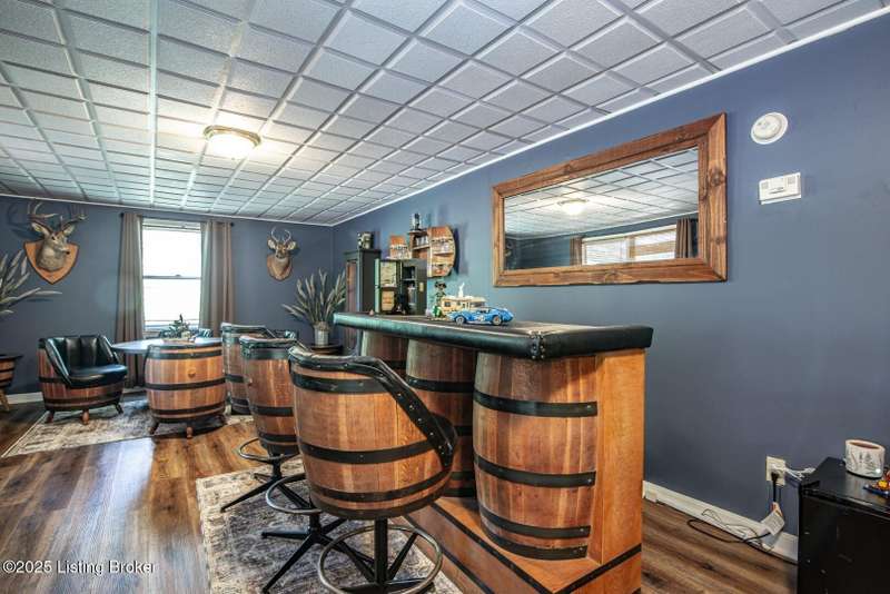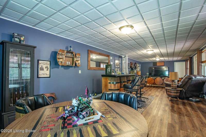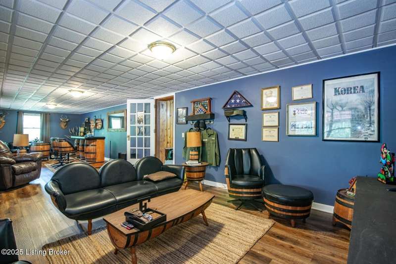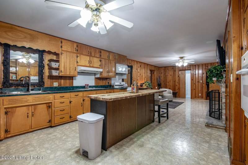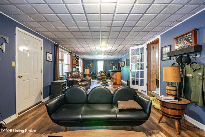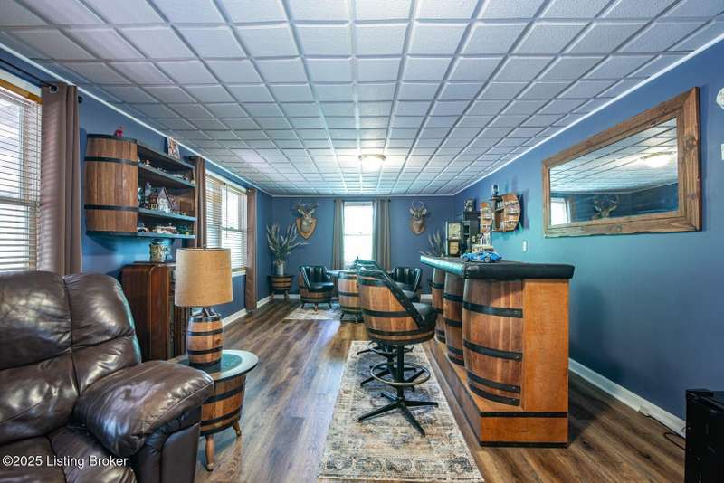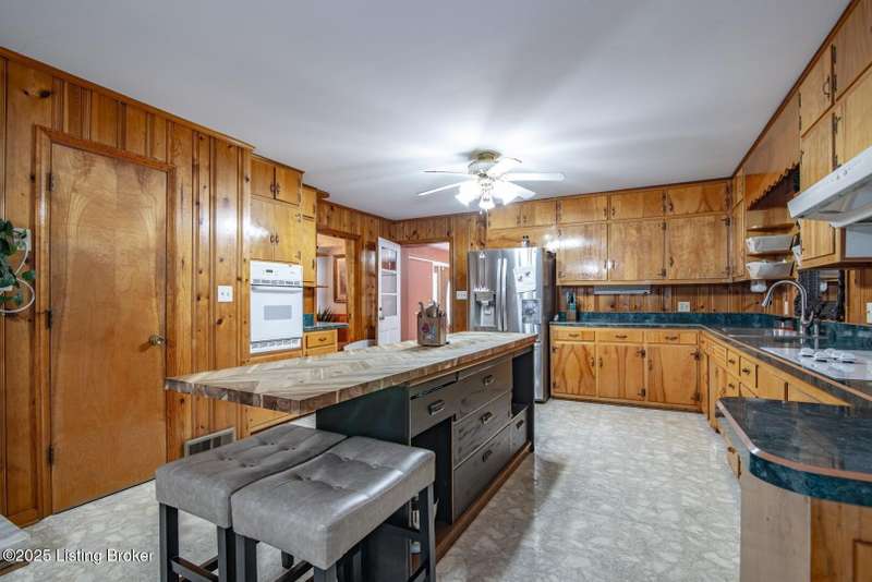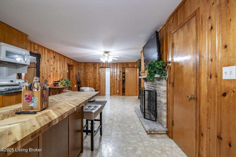 As you pull into the circular driveway with board fencing, you will love the stylish and updated landscaping that adds both functionality and curb appeal! This exceptional six-bedroom, three-bathroom home is where spacious living meets a thoughtful design in a park-like setting. This impressive home offers an abundance of square footage with five generous family gathering areas, ensuring everyone has their perfect space to relax and connect. The heart of the home features an oversized kitchen complete with a full appliance package and a charming fireplace that makes meal preparation feel like a cozy gathering. You'll discover beautiful hardwood flooring throughout select rooms, adding warmth and character to the living spaces. The main level conveniently houses two bedrooms, while additional bedrooms provide flexible options for family, guests, or home offices. Three fireplaces throughout the home create inviting focal points in the kitchen, living room, and recreation room, perfect for those cooler Kentucky evenings. The finished walkout basement also offers additional family space for movie night or family gatherings. Step outside to enjoy the covered front porch and expansive covered deck overlooking your private backyard retreat. Car enthusiasts will appreciate the impressive garage space accommodating up to 6 vehicles, complemented by large storage areas for all your belongings. This home is a must see!