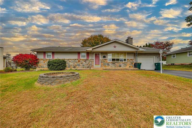Charming stone-facade ranch home featuring three bedrooms and 1.5 baths. This property offers a full basement partially finished and ready for extra living space or storage. Enjoy a generous yard with a fenced-in section, perfect for pets or outdoor activities. Inside, the living room showcases a beautiful fireplace, and the kitchen features attractive wood cabinetry. Additional highlights include a heated garage and a spacious driveway. Conveniently located close to shopping, restaurants, and other amenities, this home combines comfort and practicality in a great location.