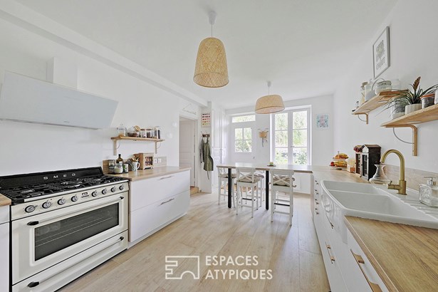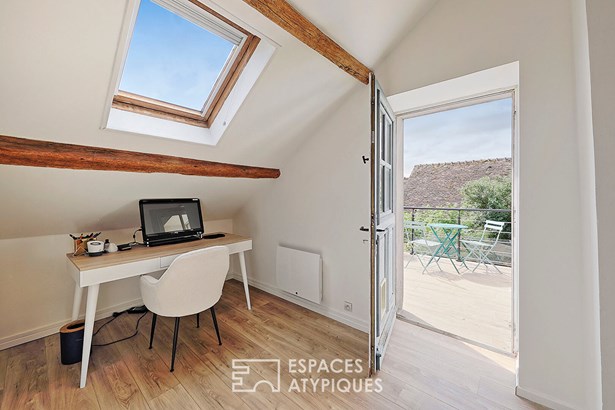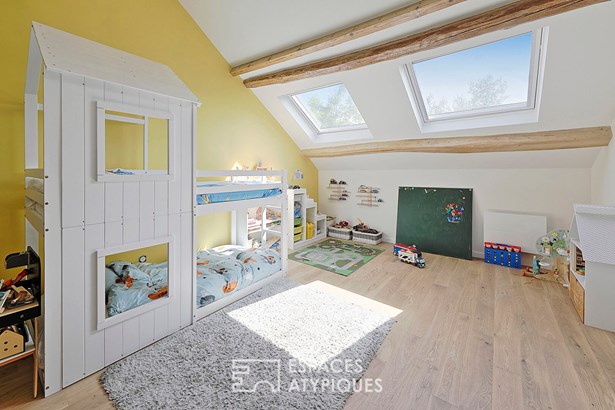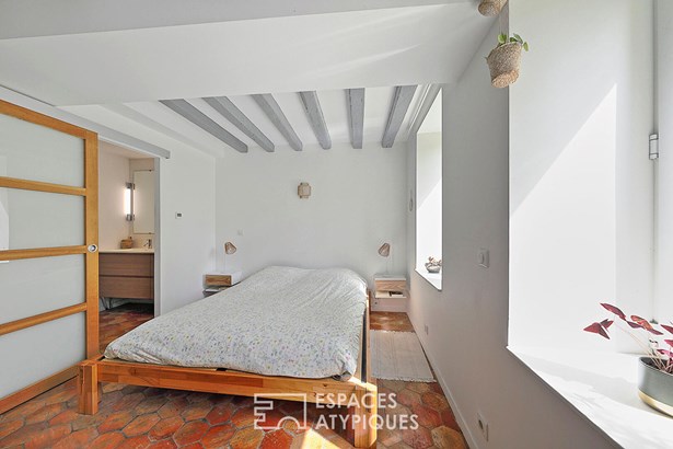 Just 13 km from Nemours and 8 km from Larchant, nestled in a picture-postcard village, this country house of approximately 208 sqm boldly blends old-world charm and a contemporary touch, in a 967 sqm green setting. From the entrance, the terracotta floor tiles set the tone. Here, every detail tells a story. The hallway leads to a guest toilet, dressing room, and two bedrooms, one with a shower room, the other with a water point and separate toilet. A surprising landing room bathed in light thanks to its bay windows leads to a vaulted cellar, a laundry room, and a clever storage space. It's when you step into the living room that the magic happens. The volumes rise, the exposed beams highlight the architecture, the mineral floor contrasts with the softness of the sofa, and light floods in from all sides. A daily vacation feeling, amplified by the Danish wood-burning stove that stands like a work of art. In summer, the terrace opens up to you, a natural extension to the garden, hidden from view. A minimalist staircase leads to a suspended mezzanine, a hybrid space to be arranged according to your desires, and to a generous attic bedroom. In the extension, the kitchen asserts itself as a living space in its own right. Sleek, bright, designed for entertaining as much as for simmering, it combines authenticity and functionality with its range cooker, open shelves, and Scandinavian style. Just next door, a living room with an open fireplace completes the warm atmosphere. A bathroom and separate toilet structure this level. A discreet staircase leads you to the upper sleeping area, composed of three bedrooms, one of which has a private terrace, perfect for summer reading or solitary breakfasts. Outside, the charm continues with two vaulted cellars, two workshops and a landscaped garden designed as a refuge. Intimate, wooded, serene. ENERGY CLASS: E / CLIMATE CLASS: B Estimated average annual energy expenditure for standard use, based on 2021 energy prices: between EUR3,080 and EUR4,230 Contact: Cedric DASSONVILLE - 06 71 38 50 22 RSAC: 948 248 091 MELUN