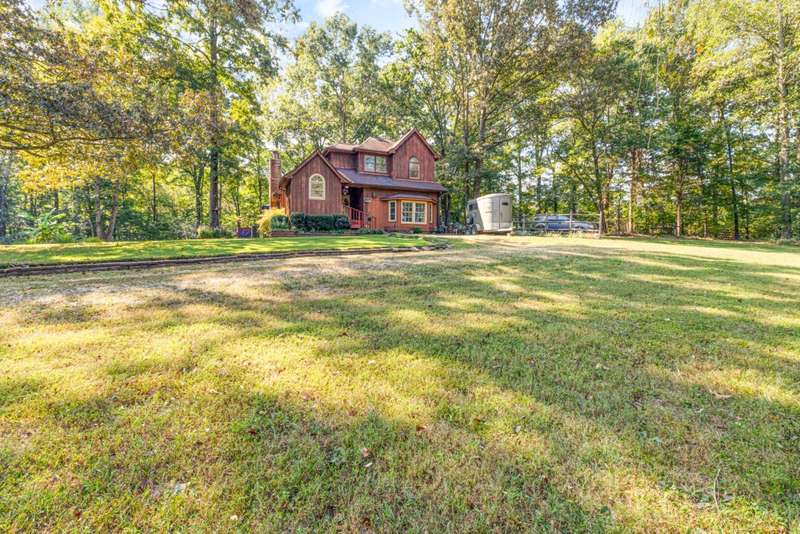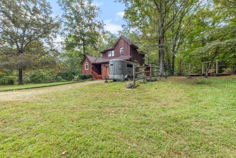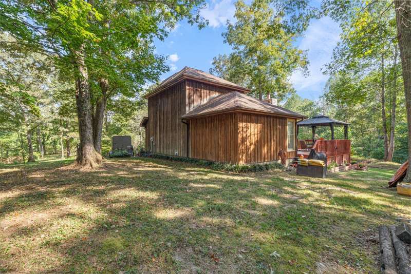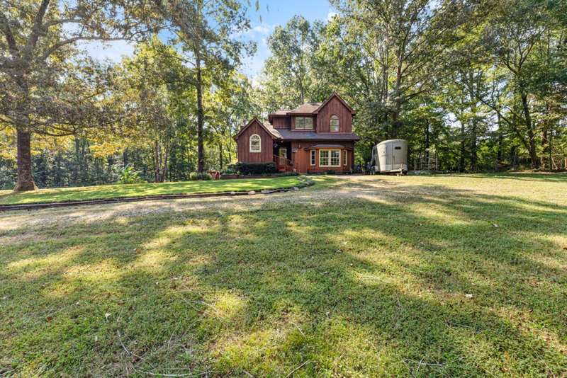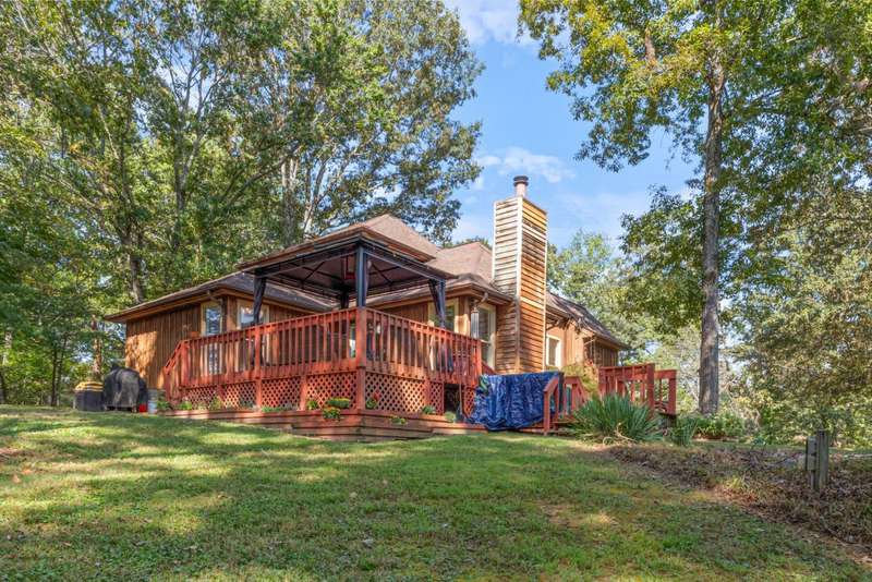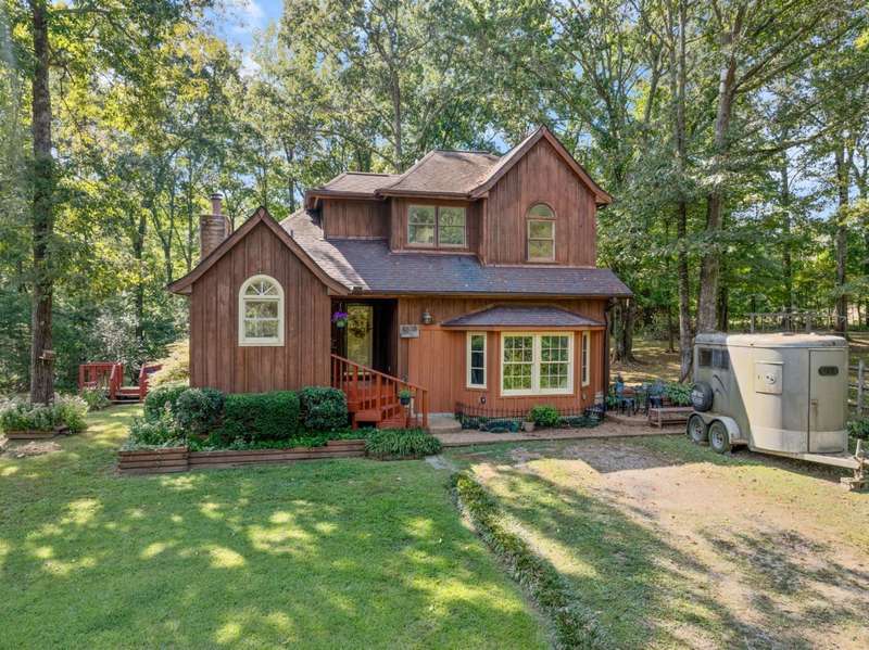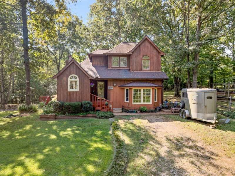 Escape to your own private retreat with this unique home nestled on 6 partially wooded acres. Surrounded by mature trees, a creek along the back of the property and detailed landscaping, this property offers a serene setting while still being conveniently close to shopping, dining, and everyday essentials.Step inside to discover thoughtful updates, including new flooring, an upgraded kitchen, and refreshed bedroom & Bathroom spaces that blend modern comfort with rustic charm. The home's expansive back deck is shaded by a canopy, perfect for outdoor gatherings, relaxing evenings, or enjoying the peaceful natural surroundings.If you're looking for privacy, acreage, and a home with character and potential, this property is a MUST SEE! With its blend of seclusion and convenience, it's a rare find you won't want to miss!HVAC-Heat Pump Brand New March 2025 with a 10-year warranty. Water heater-Brand New April 2025All appliances- Brand New Feb 2025Upstairs bedrooms just painted Aug. 2025Primary BR/BA Updated in February 2025The garage was recently transformed into a large family room with a laundry room as well. It is still under construction but will be amazing once it is complete.
