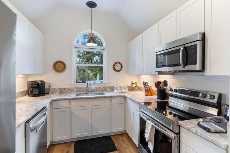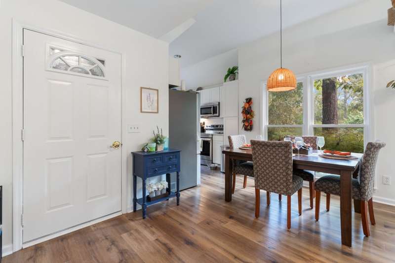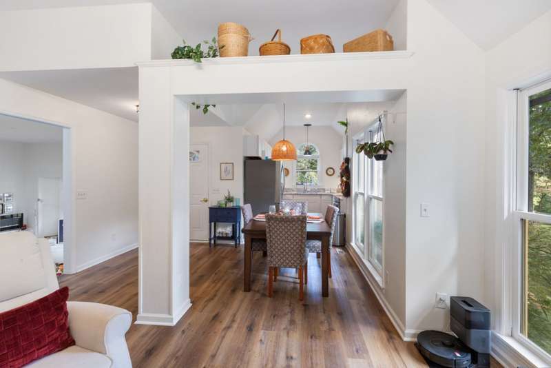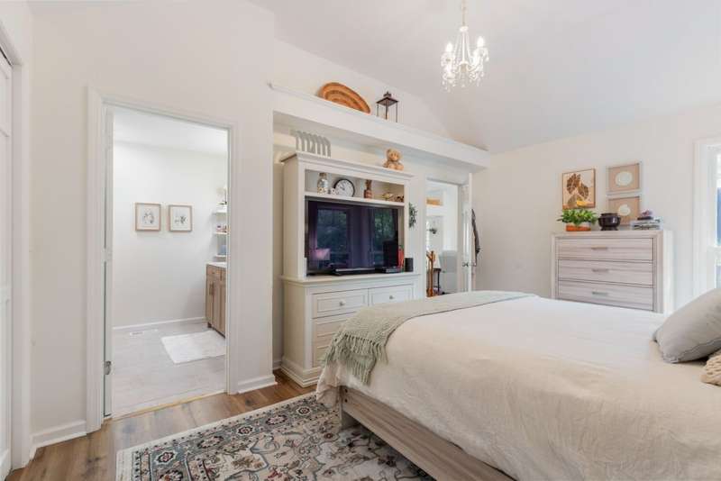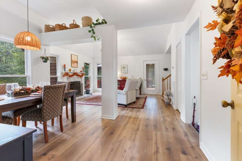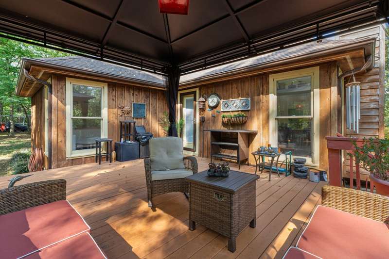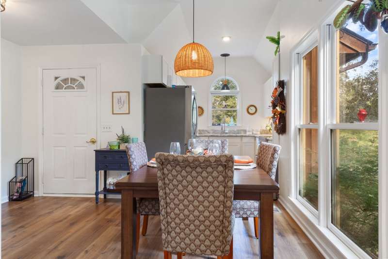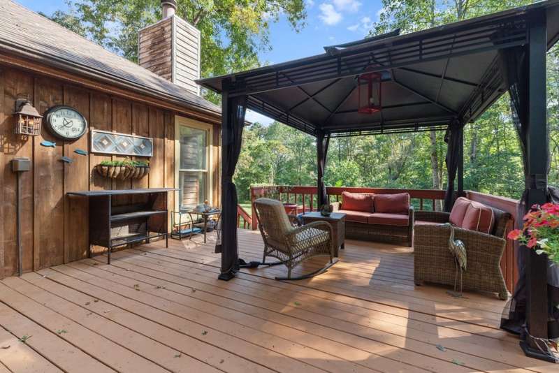 Escape to your own private retreat with this unique home nestled on 6 partially wooded acres. Surrounded by mature trees, a creek along the back of the property and detailed landscaping, this property offers a serene setting while still being conveniently close to shopping, dining, and everyday essentials.Step inside to discover thoughtful updates, including new flooring, an upgraded kitchen, and refreshed bedroom & Bathroom spaces that blend modern comfort with rustic charm. The home's expansive back deck is shaded by a canopy, perfect for outdoor gatherings, relaxing evenings, or enjoying the peaceful natural surroundings.If you're looking for privacy, acreage, and a home with character and potential, this property is a MUST SEE! With its blend of seclusion and convenience, it's a rare find you won't want to miss!HVAC-Heat Pump Brand New March 2025 with a 10-year warranty. Water heater-Brand New April 2025All appliances- Brand New Feb 2025Upstairs bedrooms just painted Aug. 2025Primary BR/BA Updated in February 2025The garage was recently transformed into a large family room with a laundry room as well. It is still under construction but will be amazing once it is complete.